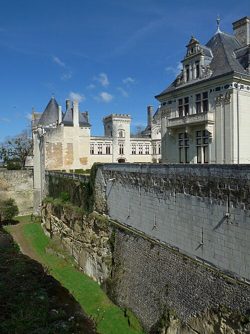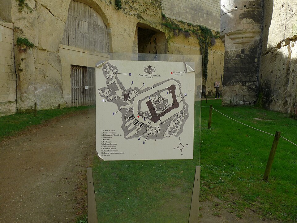 Le château de Brézé, situé sur la commune du même nom en Maine-et-Loire, trouve son origine dans un château fort mentionné en 1063. Les terres appartiennent aux seigneurs de Brézé depuis le XIe siècle. Le premier château fut détruit et fortifié à nouveau vers 1448-1449 pour Gilles de Maillé-Brézé, qui fit creuser des fossés. Il fut reconstruit au XVIe siècle pour Arthur de Maillé-Brézé, mais peu d'éléments de cette époque subsistent, l'édifice ayant été largement remanié aux XVIIIe et surtout au XIXe siècle. Le corps de logis a été doublé entre 1820 et 1824 ; une lucarne du logement nord-est porte la date de 1694, tandis que le logement nord et le colombier datent du XVIIe siècle. La chapelle Sainte-Catherine, déjà citée au XIIIe siècle dans le donjon et détruite, fut reconstruite au nord-ouest au cours de la première moitié du XVIe siècle et érigée en église paroissiale en 1585 avant d'être de nouveau détruite. Elle fut relevée en 1730 par l'entrepreneur Alexandre Cailleau, puis reconstruite une fois encore en 1855. Le presbytère, mentionné en 1553, a été reconstruit à la fin du XVIIe siècle, remanié de 1728 à 1732 et agrandi au XXe siècle pour accueillir une école privée de filles tenue par des religieuses de Saint-Joseph de Saumur. Le château a fait l'objet d'importants travaux à partir de 1856, achevés en 1896, et René Hodé a entièrement remodelé l'aile latérale et l'aile d'entrée dans un style néo-gothique vers 1855-1864. La date de 1682 apposée sur l'aile d'entrée rappelle l'érection du domaine en marquisat, et les communs, l'ouvrage d'entrée et l'orangerie ont également été remaniés au XIXe siècle. Les dépendances comprennent de vastes communs, des écuries, un fournil, un cellier et des pièces troglodytiques du XVIe siècle, également transformés au XIXe siècle et donnant sur des douves aujourd'hui asséchées. Sous le château et dans les fossés s'étend un réseau troglodytique d'environ quatre kilomètres, comprenant des pièces de la vie quotidienne telles qu'une boulangerie, une glacière, une magnanerie et des écuries, ainsi que des aménagements militaires comme un pont-levis et un chemin de ronde. La partie la plus ancienne du réseau, dite roche de Brézé, est antérieure à 1063 et se situe à neuf mètres sous la cour, avec une configuration en trèfle autour d'un puits de lumière conçue comme refuge. Les fossés, creusés en plusieurs étapes, atteignent aujourd'hui 18 mètres de profondeur; les pierres extraites ont servi à la construction du château et un chemin de ronde souterrain, avec échauguette, ceinture ces fossés. Le domaine a connu une succession de propriétaires : après des transmissions familiales, il fut élevé en marquisat en 1615, transmis par mariage aux Bourbon-Condé puis occupé par des troupes royales en 1653, échangé en 1682 à Thomas de Dreux qui reçut confirmation du titre en 1685, puis transformé au XIXe siècle par les Dreux-Brézé et rendu néo-gothique sous l'impulsion de René Hodé. Par mariage en 1959, la propriété est passée à la famille Colbert du Cannet, qui en est actuellement propriétaire. Le château de Brézé est classé au titre des monuments historiques depuis le 6 mars 1979.