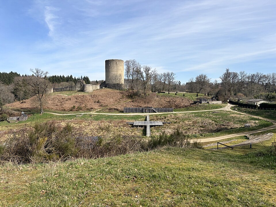 Ancien château de Bridiers, La Souterraine (Creuse), est une ruine de château-fort médiéval dont la pièce maîtresse visible est un donjon circulaire élevé au XIIIe siècle. Situé aux marches du Limousin, au carrefour d'anciennes voies gauloises et romaines, le site a connu de nombreuses opérations militaires : il fut pris par Henri II d'Angleterre en 1177 et par la bande du Captal de Buch en 1356. Le château dépendait à l'origine du comté de Poitiers ; une châtellenie est mentionnée dès le milieu du Xe siècle et la seigneurie accéda au rang de vicomté au XIIe siècle, devenant l'une des cinq grandes vicomtés du Limousin. Une première tour, érigée vers la fin du XIIe siècle et substituée aux mottes de Las Tours, s'écroula en 1202 selon les Chroniques de Bernard Itier ; le donjon actuel fut reconstruit par la suite aux XIIIe et XIVe siècles. L'ensemble primitif avait la forme d'un pentagone : quatre tours rondes flanquaient les angles saillants des courtines autour du donjon. Des vestiges subsistent aujourd'hui : contours de l'enceinte, un pan de muraille et le donjon intact en gros œuvre. Le donjon comporte quatre étages ; l'entrée se faisait au premier étage par une porte à arc brisé accessible par un pont-levis reposant sur un escalier isolé dans la cour. Du premier au troisième étage, les pièces communiquaient par un escalier à vis logé dans l'épaisseur des murs, et un escalier droit, lui aussi ménagé dans la maçonnerie, reliait le rez-de-chaussée au premier étage. Une petite tour voisine conservait vers 1860 des traces de peinture murale, vestige de l'emplacement de la chapelle. L'enceinte a été édifiée en plusieurs campagnes, l'appareil et l'épaisseur des murs variant selon les périodes. Après un incendie en 1655, Henry Pot fit refaire les parties hautes du donjon selon un marché de maçonnerie; aux XVIIIe siècle, la salle du premier étage a été surbaissée et divers marchés citent l'existence d'une maison et de deux granges dans la basse-cour, aujourd'hui disparues. Des descriptions du XIXe siècle signalent encore une toiture et une plate-forme avec parapet, mais l'édifice, inoccupé près de deux siècles, a subi de nombreuses dégradations : effondrement des hauts de tour, de voûtes et planchers, arrachement de marches et démolition du portail de la basse-cour à la fin du XIXe siècle. Classée au titre des monuments historiques par arrêté du 24 septembre 1968, la propriété a été rachetée par la commune et fait l'objet de travaux de dégagement et de restauration. Depuis 1994, un chantier d'insertion assure le dégagement de l'enceinte, des fouilles dans la basse-cour (fours, écuries, grange) et des reprises en maçonnerie des parties basses ; les premiers travaux de consolidation de la tour ont commencé au printemps 1997, la tour étant mise hors d'eau depuis 1984. Une campagne de restauration, conduite sous la direction des Monuments historiques, vise la mise en sécurité de l'ouvrage et son ouverture au public ; en 2019 le chantier restait en cours. Un jardin médiéval, conçu par Jean-Philippe Béguin avec les membres du chantier d'insertion et entretenu depuis 2008 par les services municipaux, agrémente le parterre du château ; à partir de 1999, un troupeau de chèvres du Rove participe à l'entretien du site. Le site est ouvert au public toute l'année, accessible par la route ou par une promenade depuis l'étang du Cheix ; l'accès au domaine est gratuit, la montée à la tour est gérée par la municipalité et payante, la tour n'étant pas adaptée aux personnes à mobilité réduite. Chaque 14 juillet le site accueille un spectacle pyromusical; une grande fresque historique annuelle met en scène plus de vingt-cinq tableaux, environ cinq cents bénévoles et acteurs, quelque 2 500 costumes et des décors à l'échelle du château pour près de 2 000 places en gradins, et des expositions artistiques sont présentées en juillet et août. Des toilettes sèches sont implantées près du jardin médiéval.