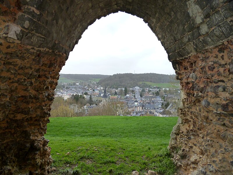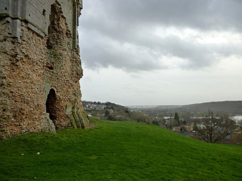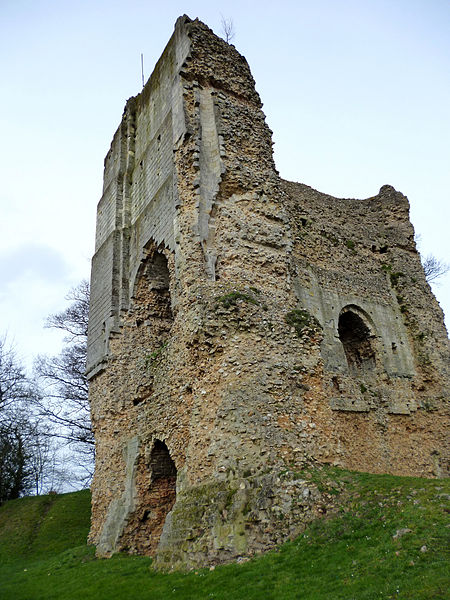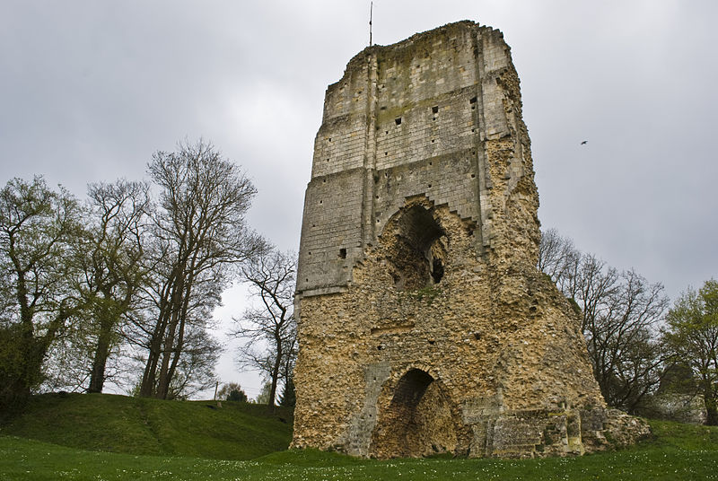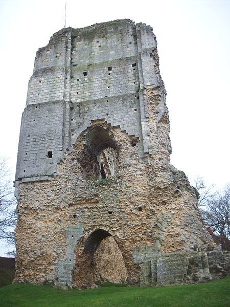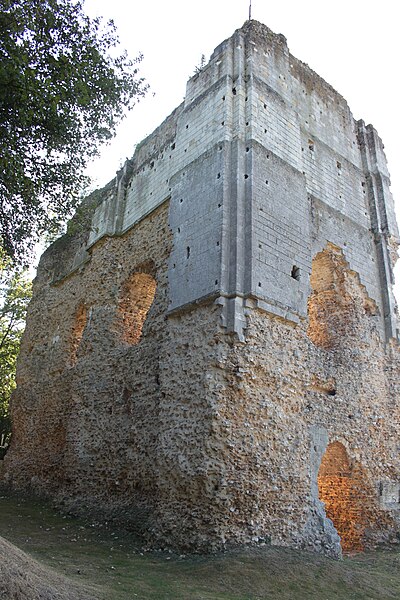 Le château de Brionne, ancienne forteresse du comté éponyme, est un château fort construit à la fin du XIe ou au début du XIIe siècle, aujourd'hui en ruines dont le dernier vestige est un donjon partiellement détruit. Installé sur le territoire de la commune de Brionne, dans le nord-ouest du département de l'Eure en Normandie, il dominait la vallée de la Risle et contrôlait la voie Rouen–Alençon qui franchit la vallée en ce point. Des traces laissent penser qu'un fort existait à cet emplacement dès l'époque romaine, en raison de l'importance du carrefour entre Lisieux, Pont-Audemer, Rouen et Évreux. Le château primitif, mentionné en 1047, se trouvait sur une île de la Risle sous la ville actuelle et fut partiellement détruit en 1735 pour la construction de moulins. Les sources médiévales indiquent que la seigneurie de Brionne passa entre plusieurs membres de la famille de Brionne et des Beaumont, avec des épisodes de siège et de prise, et que le donjon quadrangulaire actuel a probablement été élevé par Robert Ier de Meulan. Le château fut assiégé à plusieurs reprises, notamment en 1047, vers 1090, au printemps 1124 par Henri Ier Beauclerc, puis pris par Philippe Auguste en 1194 et en partie ruiné par les Anglais en 1421. Les fortifications furent ensuite démantelées à la suite de l'ordonnance royale de 1626 visant le rasement de nombreuses fortifications non frontalières. Les ruines furent acquises le 27 mai 1869 par Arthur Join-Lambert, conseiller général, puis données à la ville de Brionne le même jour. Des travaux de consolidation ont été menés par la ville entre 1994 et 1996, accompagnés de recherches architecturales et d'analyses dendrochronologiques qui, en raison du mauvais état des pièces de bois prélevées, n'ont pas permis d'apporter de résultats déterminants. Le donjon roman, renforcé par des contreforts plats, est implanté sur une motte isolée du plateau par un fossé ; sa base a un plan presque carré d'environ 20 × 19,70 mètres, une élévation conservée de 17 mètres et des murs d'environ 4 mètres d'épaisseur, plus massifs aux angles et sous les contreforts. La façade nord, la mieux conservée, révèle trois niveaux : un niveau inférieur accessible par une porte percée dans le mur ouest, un étage principal dont le plancher reposait sur des solives appuyées sur trois sommiers et éclairé par deux grandes baies donnant sur une salle d'une hauteur estimée à 4,20 mètres, puis des combles couverts d'un toit en bâtière dont l'un des versants laisse l'empreinte sur le mur nord-ouest et dont la pente a été évaluée à 10 %. L'intérieur montre des phases de réaménagement : à l'origine, la construction utilisait des moellons noyés dans le mortier renforcés par des longines de bois, puis, à la fin du XIIe siècle, le donjon semble avoir reçu un double parement en pierres de taille à l'intérieur et à l'extérieur ainsi qu'un glacis en escalier. La porte ouest paraît postérieure à la construction primitive, les donjons romans étant généralement aveugles à l'origine. Le premier étage résulte vraisemblablement de la fusion de deux niveaux antérieurs, comme l'indiquent les traces de deux voûtes comblées superposées dans le mur ouest ; la voûte inférieure correspondait à un espace équipé d'une cheminée dont l'un des piédroits, surmonté d'un chapiteau sculpté, subsiste. Des passages étroits, aujourd'hui obstrués, prenaient origine sur la face interne du mur nord à droite de chaque fenêtre et s'ouvraient par deux baies ébrasées à l'extérieur ; leur fonction reste incertaine. Un couloir partant d'une des fenêtres aboutit à un espace non identifié dans l'angle nord-ouest, et des réaménagements sommitaux ont modifié la distribution intérieure en comblant certains locaux, en installant des hourds et en condamnant une cheminée et son conduit. Arcisse de Caumont a signalé la présence de trous carrés dans les façades extérieures destinés à recevoir des poutres saillantes qui supportaient un balcon en bois périphérique, et il a noté des pièces de bois noyées dans le blocage du mur nord dont la fonction était de relier les murs par de grandes traverses pour limiter les dislocations. Les ruines du château sont accessibles librement toute l'année et le donjon est inscrit au titre des monuments historiques depuis l'arrêté du 12 février 1925 ; le donjon et la partie de la côte qui l'entoure sont également classés au titre des sites protégés par l'arrêté du 20 avril 1925.