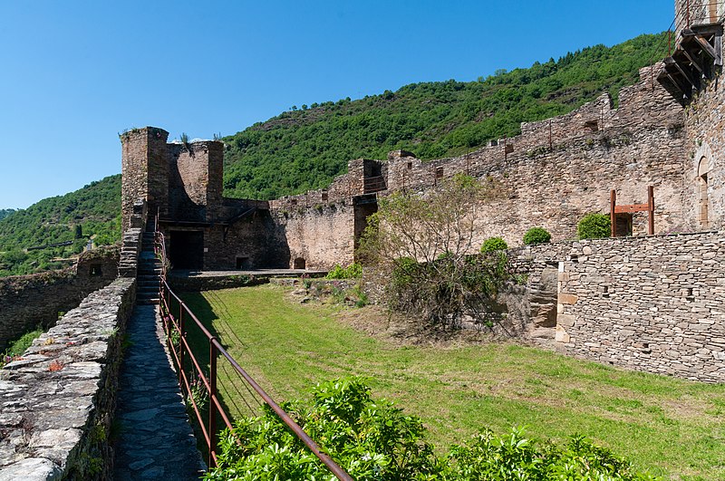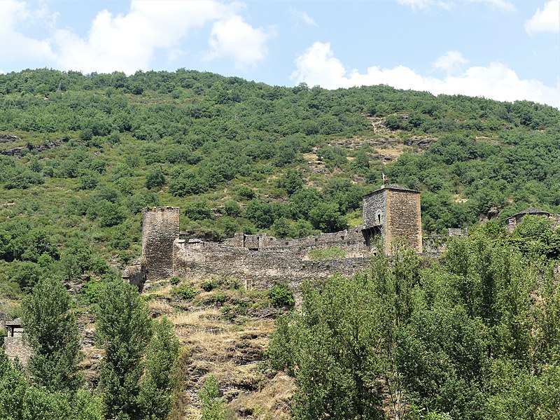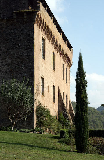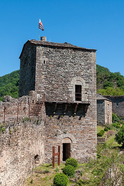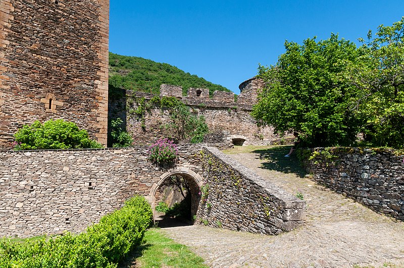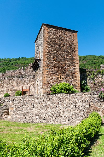 Parmi les tours, la tour du Prisonnier, la tour de la Princesse et la tour Picarde — dont il ne subsiste que les fondations et qui, avec 45 mètres, fut la plus haute du Rouergue — ainsi que la tour à gorge ouverte défendant la pointe nord‑ouest méritent une mention particulière. Le logis seigneurial, de plan carré, occupe la pointe sud‑est de l’éperon ; côté Tarn il est pourvu de mâchicoulis. Des éléments de confort ont été introduits à la Renaissance, l’escalier d’honneur date du XVIIe siècle et de larges ouvertures y sont percées au XVIIIe siècle. Le jardin aménagé du château associe simples et rosiers anciens.
