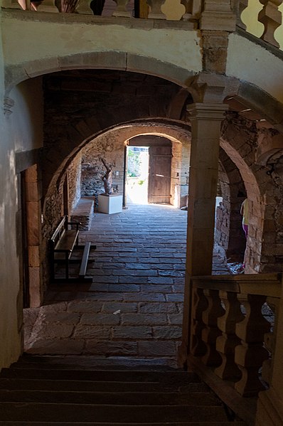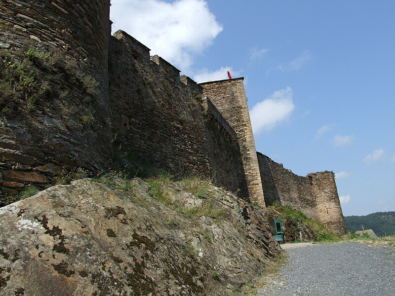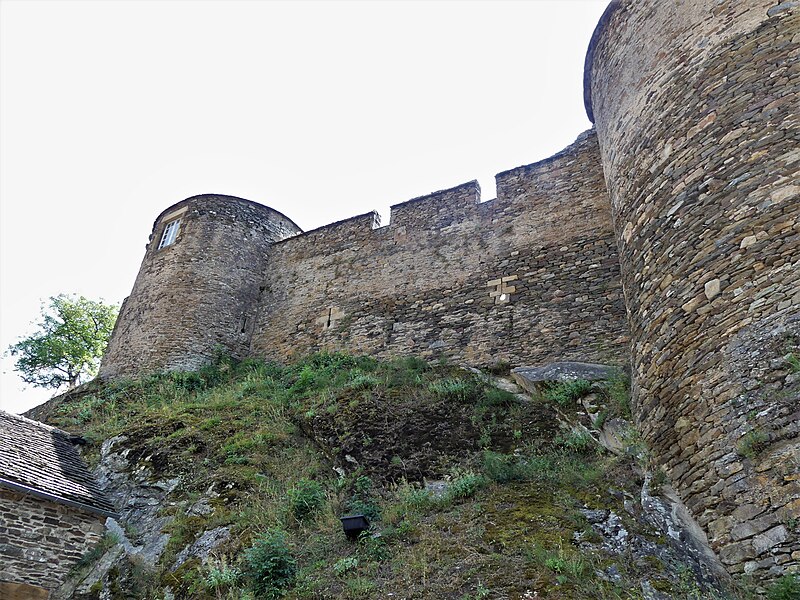 Protégé au titre des monuments historiques, il est inscrit en 1937 puis son statut est modifié par un classement en 1943. L’enceinte est complète et les tours restent largement visibles ; le chemin de ronde repose sur des arcs portés par des corbeaux. Les remparts occupent la plate‑forme qui domine le village ; la muraille côté village, flanquée de tours (on en comptait six), s’ouvre par une porte donnant sur un passage voûté creusé dans le roc, puis une petite montée mène à la cour intérieure. Les courtines datent du XVe siècle.