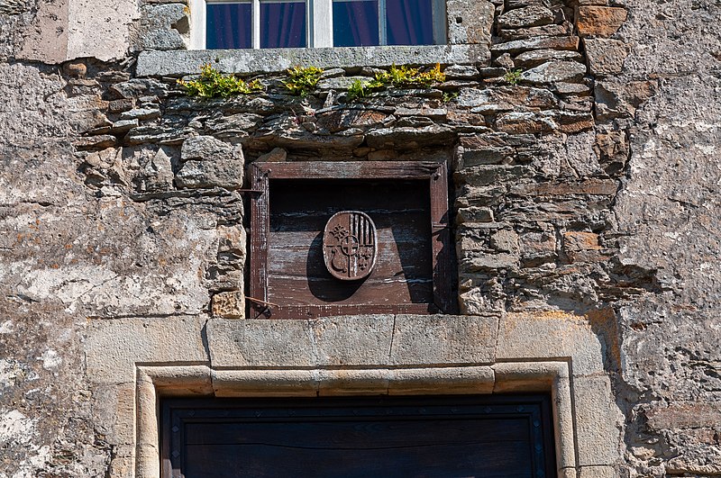 Les armoiries liées au lieu comprennent notamment celles du Rouergue (de gueules à un léopard lionné d'or), des Arpajon (de gueules à la harpe d'or) et des Grandsaignes (d'azur, au bras d'argent posé en fasce arraché de gueules), ainsi que des blasons de familles historiquement associées au site.