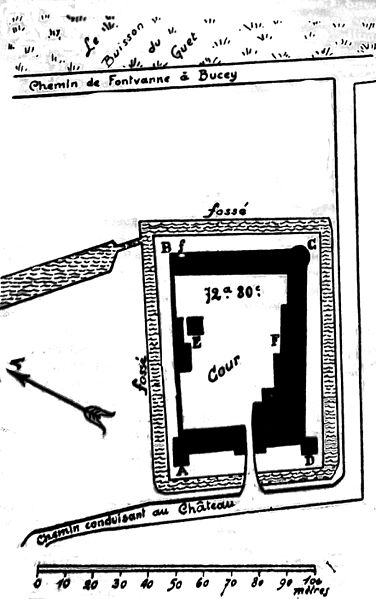 Situé dans la commune de Bucey-en-Othe (Aube), le château se présente comme un quadrilatère ceint de fossés partiellement en eau. Construit au dernier quart du XVIe siècle, il reprend le type de manoir courant en Champagne entre la fin du XVIe et le début du XVIIe siècle. Un premier château se situait à l'est de l'église. Un pavillon central en saillie servait d'entrée, tandis que deux tours carrées cantonnent les extrémités. Les portes piétonne et charretière ont été bouchées pour permettre l'extension du logis. La façade sur cour a été profondément altérée par des travaux aux XVIIIe et XIXe siècles. La cour est entourée de bâtiments de communs — étables, granges et un pigeonnier — qui encadrent le logis. Les façades et les toitures du logis et des bâtiments entourant la cour, ainsi que le fossé avec son arrivée d'eau, sont inscrits au titre des monuments historiques depuis le 12 janvier 2005.