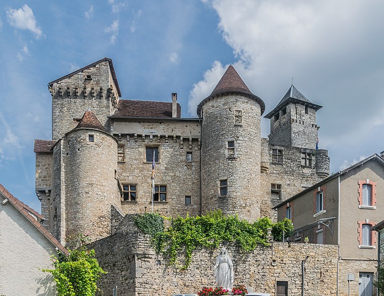 Château, sauf parties classées (cad. A 4, 8) : inscription par arrêté du 27 février 1991 ; Façades et toitures du château ; tour ronde et son escalier ; cour intérieure et murs qui la délimitent ; salle voûtée et peinte du second étage (cad. A 4, 8, 9, 1088) : classement par arrêté du 4 mars 1994