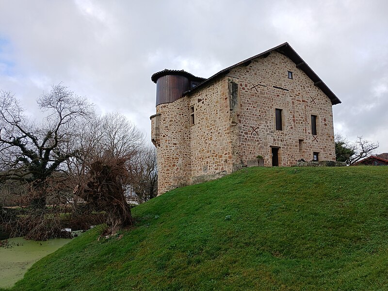 L'ancien château de Camou s'élève sur une motte féodale dont le fossé est partiellement conservé. Les sources divergent sur ses origines : il s'agit d'une maison-forte du XVIIe siècle édifiée à l'emplacement d'un château plus ancien (XIIe ou XIVe selon les sources), lui-même fondé sur une motte attribuée au XIe siècle. Le site a connu des remaniements et des agrandissements à la fin du XVe siècle et semble avoir été incendié en 1523 par les troupes de Charles Quint commandées par Philibert de Chalon. La famille de Camou s'éteint au début du XVIIe siècle et, par mariage, la seigneurie passe en 1635 à Pierre de Gassion ; le domaine devient un marquisat entre 1660 et 1741. En mauvais état à la Révolution, l'édifice est mis sous séquestre en 1791-1792 selon les sources puis acheté par la famille d'Abbadie d'Ithorrots qui l'utilise comme ferme. Le cadastre de 1826 montre un bâtiment encore préservé, mais vers 1860 la moitié orientale est démolie et la partie restante sert de grenier. La partie subsistante fait l'objet de travaux de rénovation dans les années 1980 et 1990 ; elle est vendue pour un franc symbolique à la commune d'Aïcirits-Camou-Suhast en 1983, inscrite aux monuments historiques par arrêté du 8 octobre 1993 avec la motte, le fossé et les vestiges de l'ancienne basse-cour, puis rouverte au public après restauration en 2001. L'édifice actuel présente des traces d'arrachement là où la moitié orientale a été détruite et des fondations révèlent l'existence d'une tour d'escalier ronde. Le mur est, d'épaisseur d'environ 1,5 m, est attribué au XIVe siècle et comporte une meurtrière orientée vers l'intérieur du bâtiment. Le château compte trois niveaux, dont un niveau de combles qui a servi de grenier ; les étages sont desservis par une tour d'escalier ronde au sud‑ouest, pourvue de latrines accolées. La partie supérieure de cette tourelle, effondrée, a été reconstituée en bois et un escalier en bois y a été installé. Le style garde des éléments de la Renaissance, visibles notamment dans des fenêtres à meneaux, et subsistent de petites meurtrières à ouverture horizontale. Le château est entouré d'éléments dépendants, dont une ancienne borde et l'église de l'Ascension, toutes deux datées du XIVe siècle. Aujourd'hui, le rez-de-chaussée abrite le musée de la vie rurale et agricole, nommé salle Jean Elgart, qui présente une collection d'outils anciens et une histoire du métayage. L'escalier en colimaçon de la tourelle conduit à l'étage où sont exposés l'historique des seigneurs de Camou (de 1060 à 1635) et celui de la famille de Gassion (de 1635 à 1791), ainsi qu'une collection de maquettes fonctionnelles réalisées par Louis Choury d'après des notes et croquis de Léonard de Vinci et de Francesco di Giorgio Martini.