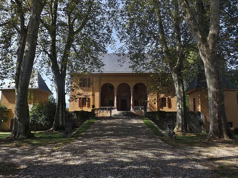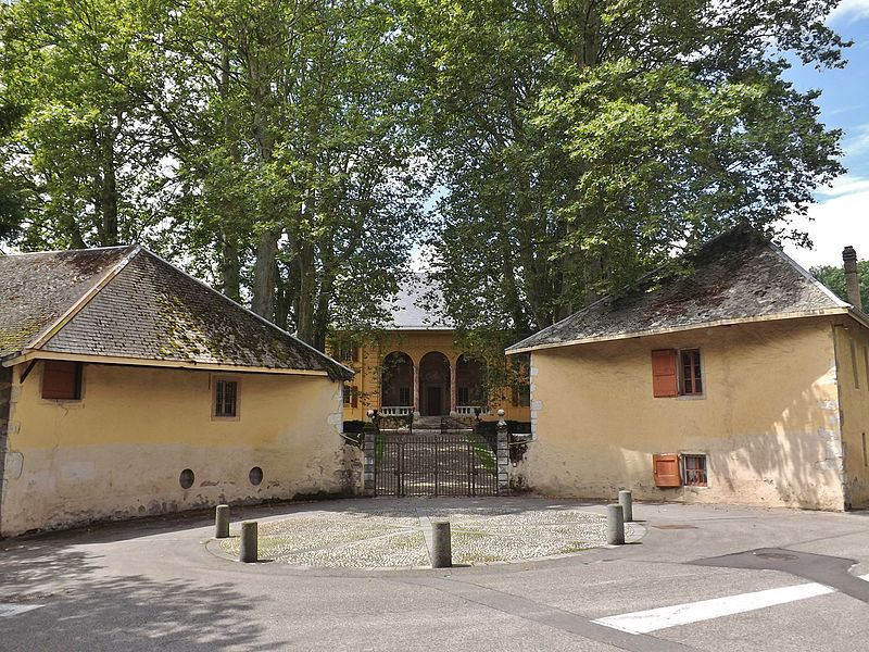 La maison a des origines plus anciennes que ne le suggèrent ses décors : elle fut bâtie au XVIe siècle par le juriste Bernadino Becchi, originaire du village de Caramagna dans le Piémont. La propriété passa ensuite à la famille des Bertrand de la Pérouse puis à Frédéric de Bellegarde en 1783 ; c’est à cette époque que seraient intervenus des artistes piémontais, inconnus, pour la décoration du grand salon à la fin du XVIIIe siècle et pour les façades au début du XIXe siècle. En 1812, Joseph Gillet, ancien militaire, prend possession du château ; il le loue en 1820 à la marquise de La Pierre, une Anglaise mariée à un Chambérien, et à madame Birch. Le poète Alphonse de Lamartine rencontra en 1819 Marianne Elisa Birch et l’épousa l’année suivante au château ; le grand salon, orné de stucs, reste associé au contrat de mariage signé le 25 mai 1820.
