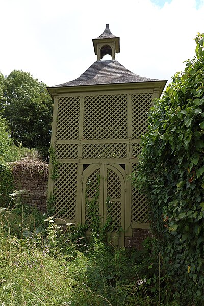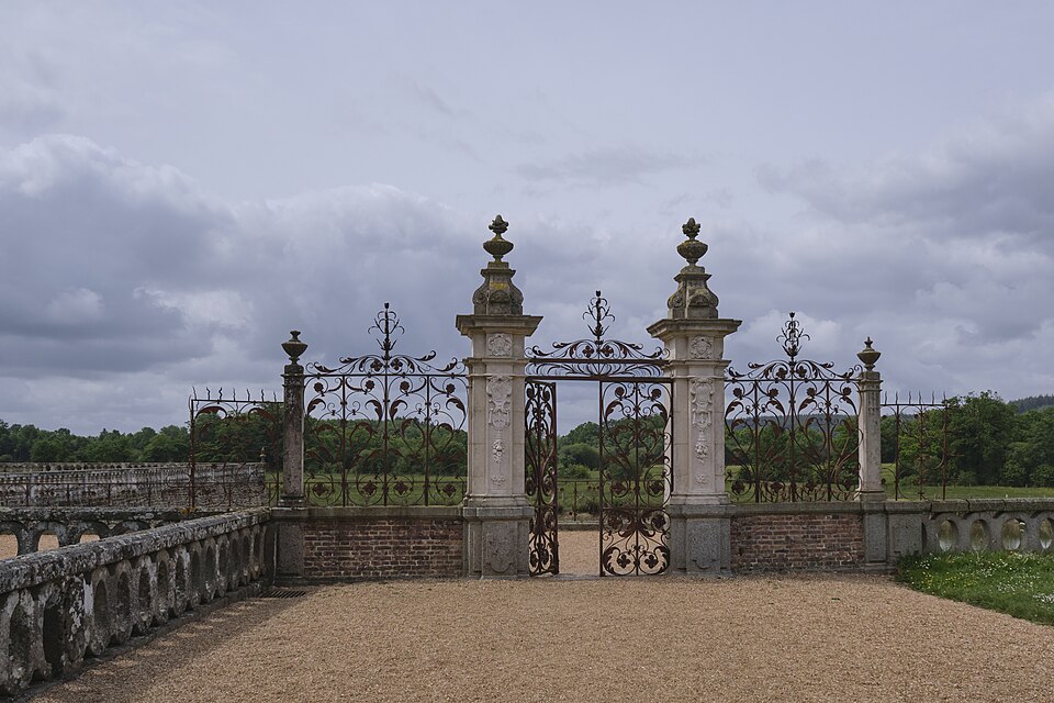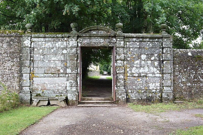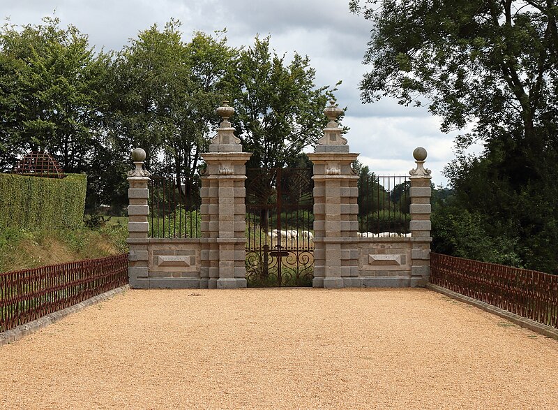 Le parc clos d’environ dix hectares a été largement remanié au fil des siècles : il comprend une terrasse, une roseraie, des bosquets, une prairie sur l’emplacement de l’ancien marais, un verger conservatoire et un jardin de l’oisellerie du XVIIIe siècle où ont été reconstruites des volières. Des grilles et portes en fer forgé, réalisées par les forges de Carrouges, séparent les compartiments du jardin et témoignent du savoir‑faire local. Le parc et les éléments de clôture figurent dans l’inventaire lié au classement aux monuments historiques.
