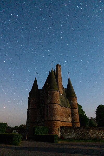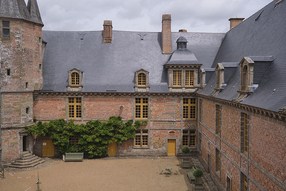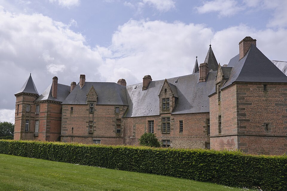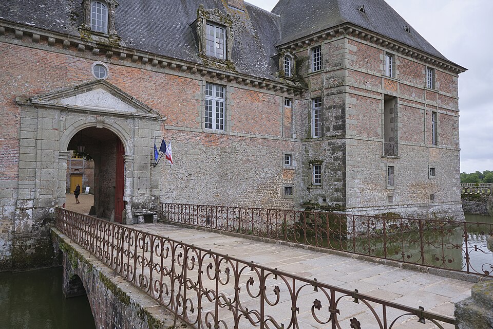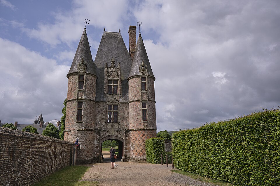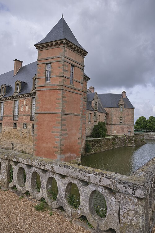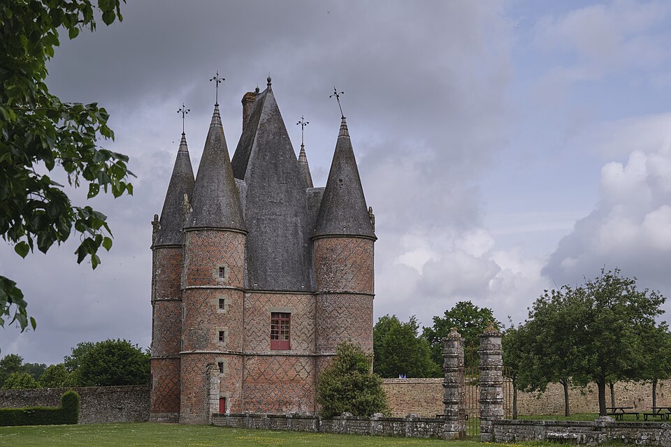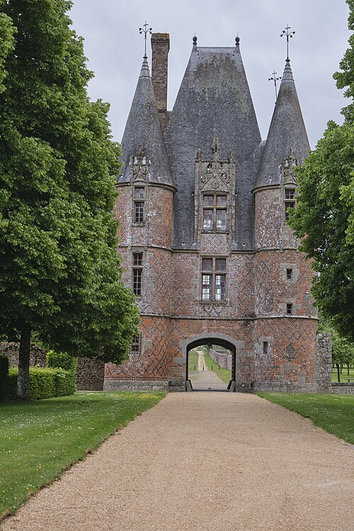 Le château de Carrouges, situé dans la commune de Carrouges (Orne, Normandie), est une place forte médiévale entourée de douves et d’un parc. Le site, probablement occupé depuis l’Antiquité et attesté pour la première fois en 1136, contrôlait autrefois la frontière entre le duché de Normandie et le comté du Maine. L’implantation actuelle, construite dans la plaine au milieu d’étangs autrefois marécageux, résulte de reconstructions et d’aménagements successifs du XIVe au XVIIe siècle. Le donjon carré du nord‑ouest, qui conserve des éléments du XIIIe siècle, et la façade nord datent du XVe siècle ; de larges parties du logis et des aménagements intérieurs relèvent du XVIe et du XVIIe siècle. Le château a été complété et transformé par plusieurs familles seigneuriales : les Carrouges, puis les Blosset, enfin les Le Veneur de Tillières, qui en furent les propriétaires pendant cinq siècles. Parmi les modifications notables, Jean Blosset fit édifier l’aile dite « des Blosset » et une chanoinerie, tandis que Jean Le Veneur fit bâtir le châtelet d’entrée de style Louis XII. Plusieurs travaux d’embellissement et d’agrandissement se succédèrent jusqu’au XVIIIe siècle ; le domaine a été cédé à l’État en 1936 et est désormais géré par le Centre des monuments nationaux. Classé au titre des monuments historiques, le château a servi de dépôt d’œuvres pendant la Seconde Guerre mondiale et a été restauré après 1944 ; il est aujourd’hui ouvert au public et accueille des manifestations culturelles.
