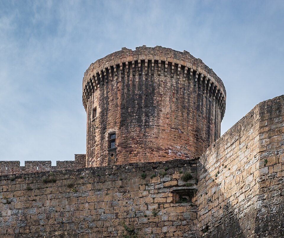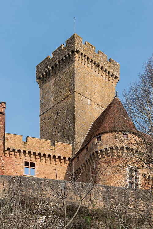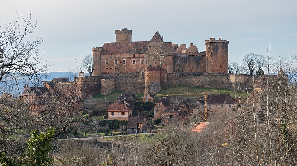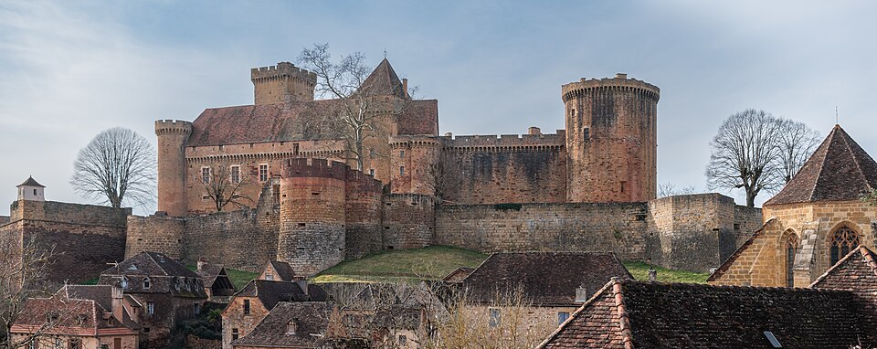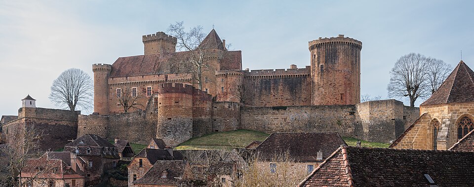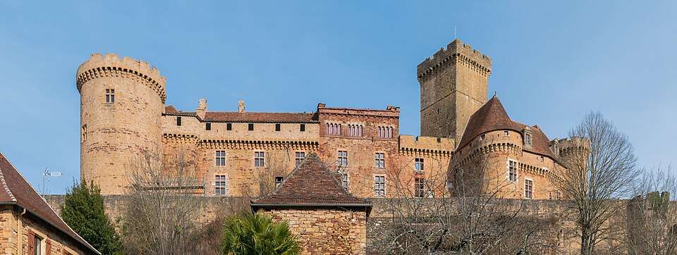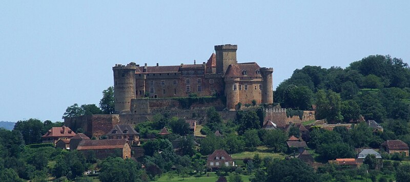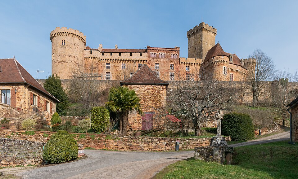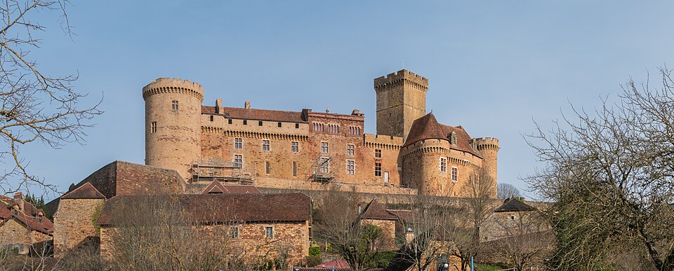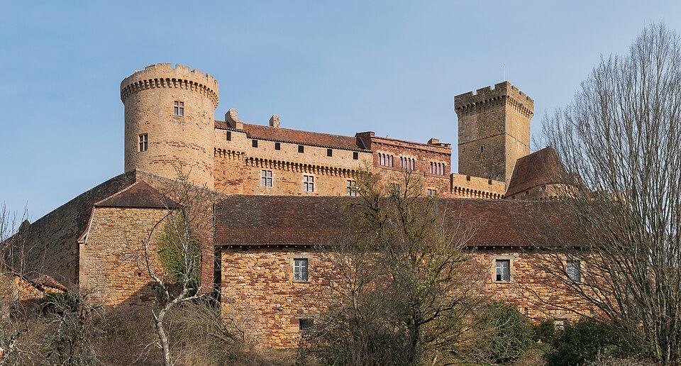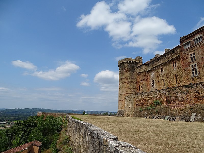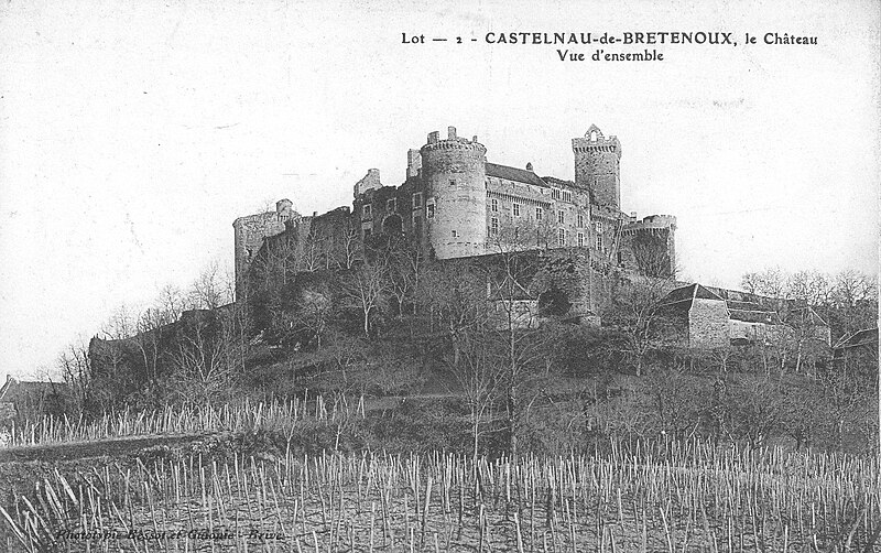Perché sur une colline au-dessus de la vallée de la Dordogne, le château de Castelnau-de-Bretenoux domine le bourg castral établi à ses pieds depuis le XIIIe siècle. Son origine relève d'un ancien castrum rebaptisé au début du XIIe siècle par des seigneurs appelés Castelnau plutôt que d'une fondation ex nihilo d'un « castelnau ». La forteresse s'est construite et transformée sur plusieurs siècles, du XIIe au XVIIe siècle, avec des campagnes importantes au XIIIe, au XVe et au début du XVIe siècle. Le plan triangulaire du site se caractérise par une place forte cantonnée de tours rondes et protégée par une enceinte continue, des courtines et des bâtiments organisés autour d’une cour d’honneur triangulaire. Le donjon carré d’angle et la tour dite de l’Auditoire, attribuée aux XIIe–XIIIe siècles, figurent parmi les plus anciens éléments conservés, tandis que la tour maîtresse est datée du troisième quart du XIIIe siècle. Des maçonneries du front nord et des ouvertures de la chapelle laissent supposer des élévations antérieures au milieu du XIIe siècle. Le château a subi un siège et une prise par Henri II Plantagenêt en 1159, puis a fait l'objet de remaniements défensifs et résidentiels au fil des conflits et des progrès militaires, notamment des adaptations à l’artillerie aux XVe–XVIe siècles. La chapelle castrale, richement décorée à l'origine, a été aménagée à la fin du Moyen Âge et porte des clefs de voûte aux armes d’un évêque de Cahors, tandis que d’autres corps de logis ont été rehaussés ou doublés aux XVIIe et XVIe siècles. La baronnie passa par plusieurs branches de la maison de Castelnau puis, en 1530, aux Clermont-Lodève, qui entreprirent des travaux d’embellissement au XVIIe siècle. Abandonné progressivement après la mort du dernier propriétaire direct au début du XVIIIe siècle, le château connut un long déclin et subit des dommages importants au XIXe siècle, dont un incendie en 1851 qui détruisit une grande partie de l’aile sud‑ouest. À partir des années 1840 plusieurs projets de restauration et de réaffectation furent proposés, certains à l’initiative de Prosper Mérimée, sans aboutir immédiatement. Classé monument historique en 1862, il changea de mains à de nombreuses reprises au cours du XIXe siècle avant d’être acheté en 1896 par le chanteur Jean Mouliérat, qui consacra trente ans à sa restauration et à l’ameublement des appartements. Jean Mouliérat fit don du château à l’État peu avant sa mort en 1932 ; le Centre des monuments nationaux en assure aujourd’hui la conservation et l’ouverture au public. Les interventions successives ont fait du château un témoignage complexe de l’architecture militaire et résidentielle médiévale et moderne, où se lisent à la fois les traces d’ouvrages défensifs et d’aménagements de réception.