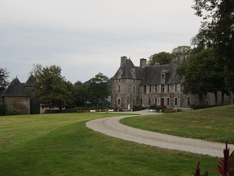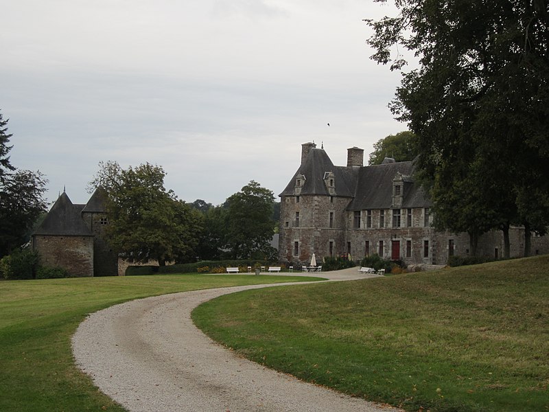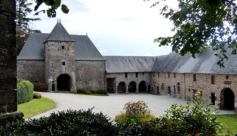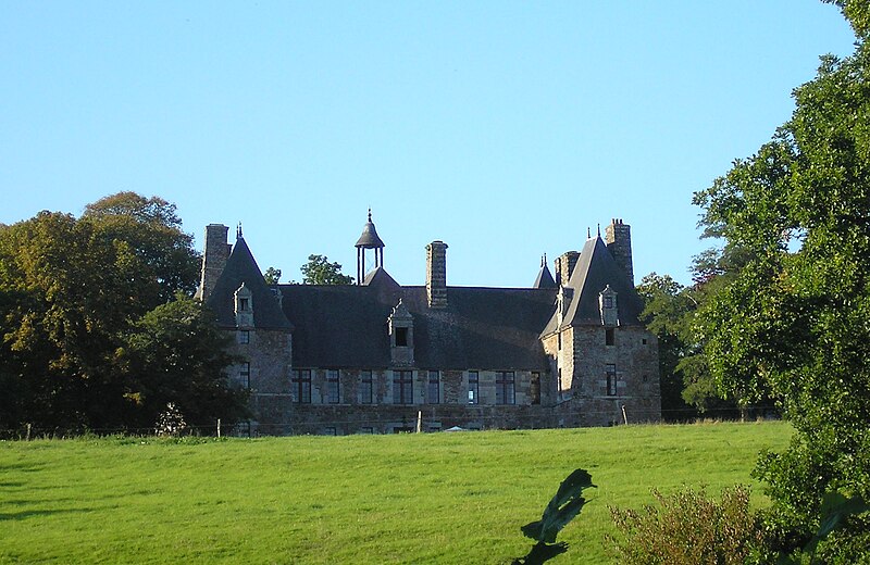 Le château de Cerisy, demeure de la première moitié du XVIIe siècle, se dresse sur la commune de Cerisy-la-Salle (Manche) au sommet d’un escarpement dominant la vallée de la Soulles ; il est aujourd’hui Centre culturel international et protégé au titre des monuments historiques. Des linteaux datés de 1613 (ou 1617) et 1625 attestent la période de construction, attribuée à Jean Richier. Le site occupe une terrasse bordée au nord par un escarpement qui descend jusqu’au ruisseau du Robec et, au sud, par un dénivelé offrant une vue sur le vallon voisin. La seigneurie de Cerisy, possédée dès le XIe siècle par les Pirou, a connu au fil des siècles un morcellement en « grande » et « petite seigneurie », cette dernière entrant dans la famille Richier au début du XVe siècle par mariage. Le château actuel, élevé près d’un ancien manoir du XVe siècle partiellement conservé sous forme d’un mur d’enceinte et de la base d’une échauguette, reflète le plan bastionné des manoirs de la fin du XVIe siècle. Jean Richier, propriétaire et huguenot, fit édifier la demeure après les guerres de religion ; le château fut le siège d’une paroisse protestante locale et Jean Richier instaura en 1640 un marché hebdomadaire et deux foires annuelles. La famille Richier conserva la seigneurie jusqu’à la Révolution ; le dernier seigneur avant les troubles révolutionnaires fut Gédéon Jean François Richier, dont l’émigration entraîna la confiscation et la vente des biens. Le château fut vendu comme bien national en 1794 à Pierre-Joseph Hocquet, puis acquis au début du XIXe siècle par François Duhérissier de Gerville, maire de la commune de 1810 à 1815 ; en 1819 il passa à Joseph-Louis-Sébastien Savary, lui-même maire de 1831 à 1854, et resta ensuite dans la famille Savary avant d’entrer, au XXe siècle, dans la descendance de Marie-Amélie Desjardins. Pendant la Seconde Guerre mondiale, les Allemands y établirent leur Kommandantur et un hôpital après le débarquement ; le village fut détruit en juillet 1944 mais le château échappa à l’incendie, bien qu’il ait été gravement endommagé et rendu partiellement inhabitable. Restauré pendant vingt-cinq ans par Marie-Amélie Desjardins et sa fille Anne Heurgon-Desjardins, le château accueille depuis 1952 le Centre culturel international, prolongeant l’esprit des Décades de Pontigny ; de nombreuses rencontres culturelles y ont réuni des personnalités intellectuelles et littéraires. Architectoniquement, le corps de logis central en grès rouge et granit s’élève sur un rez-de-chaussée et un étage ; il est flanqué de quatre pavillons d’angle à plan légèrement losangé, protégé sur trois côtés par des douves sèches, et complété au centre par un cinquième pavillon abritant l’escalier principal, surmonté d’un clocheton. La façade nord et les ponts datent de 1756 ; la sobriété décorative se concentre sur les lucarnes, les bandeaux horizontaux et la polychromie des matériaux, les nombreuses fenêtres ayant été ajoutées aux XIXe et XIXe siècles. À l’intérieur, l’escalier monumental, les cheminées en granit, la bibliothèque — ancienne salle basse avec plafond peint de style Louis XIII — et des salons dotés de boiseries illustrent les qualités intérieures de l’édifice. Le domaine comprend une ferme contemporaine du château, aménagée en salle de réception et disposée en L, ainsi que des dépendances postérieures telles que la charretterie à trois arcades, les écuries, l’orangerie et les serres ; un platane bicentenaire domine un étang issu d’anciens viviers. Au titre des monuments historiques, les dépendances (sauf celles classées) ont été inscrites par arrêté du 31 mai 1946, et le château avec ses décors peints, ses terrasses, ses fossés et ponts, les vestiges de l’ancien château, la barbacane et la ferme (à l’exclusion des écuries nord-est) ont été classés par arrêté du 4 juillet 1995. Depuis 1974, la propriété appartient à la Société civile du château de Cerisy-la-Salle.