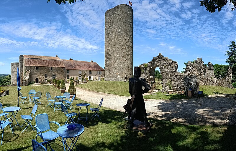 Le château de Châlus-Chabrol, érigé au milieu du XIe siècle sur d'anciennes fortifications, était à l'origine un puissant château-fort ceint d'une double enceinte. De profondes transformations y furent effectuées au XIIIe siècle sous Géraud de Maulmont et, à la fin du XVIIe siècle, sous Magdeleine de Bermondet, veuve du comte de Bourbon. Installé sur un promontoire rocheux en rive droite de la Tardoire, il domine le bourg de Châlus ; en face se dresse le château plus récent de Châlus-Maulmont, construit par Géraud de Maulmont. Sa situation de frontière entre Périgord et Limousin explique son rôle stratégique : une chaîne de quinze châteaux protégeait l'accès sud de Limoges entre ces régions. Selon la tradition rapportée par les frères de Sainte-Marthe, les seigneurs de Limoges — vicomtes et évêques — voulurent contrôler la route de Limoges au Périgord ; Ithier Chabot (ou Chalas) est cité comme évêque élu en 1052. Le détour de la voie pour éviter les terres des seigneurs de Lastours favorisa le développement d'un bourg castral, la Villehaute, et l'essor de foires, renforcé par la fondation voisine de l'abbaye de l'Abeille par l'abbaye Saint-Augustin-lès-Limoges. Lors du siège de 1199 mené par Mercadier, Richard Cœur de Lion fut atteint d'un carreau d'arbalète tiré depuis le donjon par le chevalier Pierre Basile et mourut ensuite des suites de sa blessure. À cette époque, la place, possession d'Aimar V de Limoges, abritait trente-huit personnes réfugiées dans le donjon ; les assaillants tentèrent notamment de saper la tour. En 1592 la forteresse passa aux mains des catholiques après un siège et des tirs d'artillerie menés par le gouverneur du Limousin et le comte de Bourbon de Busset, tandis que le capitaine Labesse la défendait pour les protestants. Démantelé pendant la Révolution, le château fit l'objet de restaurations au XIXe siècle : le comte de Châlus y installa des religieuses de l'Instruction de l'Enfant-Jésus en 1854 et fit consolider la tour en 1861. Au XXe siècle et au début du XXIe, il changea de propriétaires et fit l'objet de nouvelles restaurations, notamment après son acquisition par Bertrand Heyraud en 1995 ; des cérémonies du huitième centenaire de la blessure de Richard s'y déroulèrent en 1999. L'ensemble comprend un corps de logis ancien, une tour d'angle attenante et un donjon datant de la fondation, ainsi que les vestiges d'une chapelle castrale des Xe–XIe siècles devenue église paroissiale, une chapelle du XVe siècle, un puits et un corps de logis du XVIIe siècle. Le donjon, seul élément conservé du XIe siècle avec la tour engagée dans le corps de logis, s'élève au centre de la cour ; sa porte d'accès unique se situe à sept mètres au-dessus du sol. Le rez-de-chaussée du bâtiment du XIIIe siècle est organisé en deux salles rectangulaires qui ne formaient à l'origine qu'un seul espace et qui ouvrent sur la salle polygonale de la tour. Les étages supérieurs de la tour furent arasés en 1861 et transformés en terrasse ; le sous-sol comporte une vaste salle voûtée surmontée d'une coupole en moellons et le quatrième étage s'est effondré en 1870. Dans la chapelle castrale, Richard exigea que ses entrailles y soient ensevelies ; un faux gisant en ciment placé devant les vestiges rappelle cette sépulture. Le site bénéficie d'une protection aux monuments historiques : le donjon et la tour d'angle sont classés, les façades et toitures de l'ancien corps de logis attenant à la tour sont classées, les façades et toitures du corps de logis du XVIIe siècle sont inscrites, et le site lui‑même est inscrit au titre des monuments historiques. La seigneurie passa des premiers constructeurs — Bernard Chabrol agissant pour les vicomtes de Limoges — à la famille de Maulmont, puis entra dans les successions liées aux rois de France, aux familles Sully et d'Albret, fut apportée en dot à César Borgia puis, en 1535, à Philippe de Bourbon Busset, et resta dans la branche des Bourbon Busset jusqu'en 1995. Après plusieurs ventes successives, le château appartient à des propriétaires privés au XXIe siècle, la dernière acquisition mentionnée datant du 5 mars 2019. Le monument a par ailleurs inspiré la littérature : il figure dans le roman Celui qui revenait de loin de la série Les Conquérants de l'Impossible de Philippe Ebly.