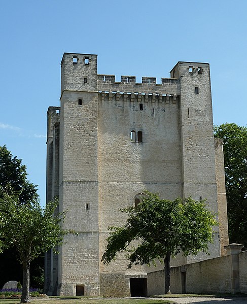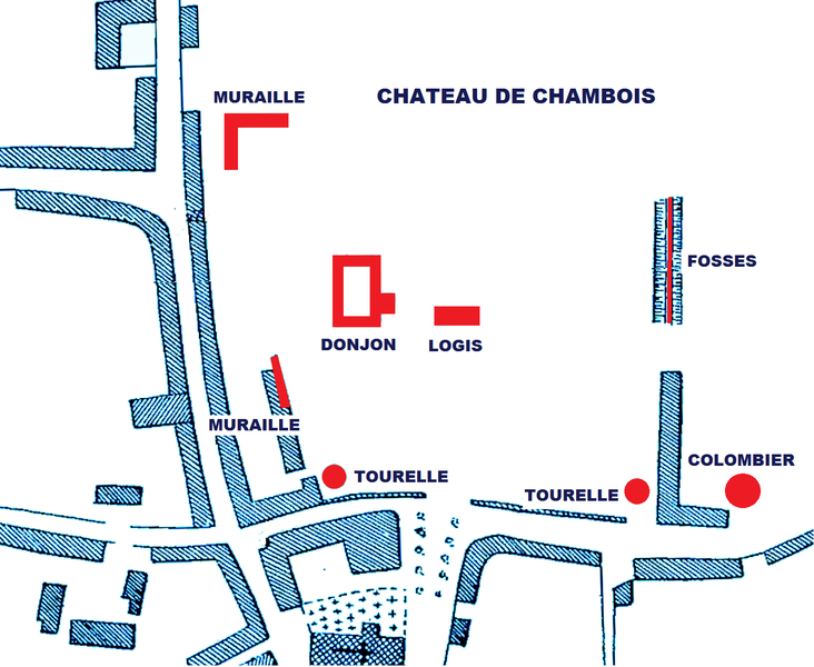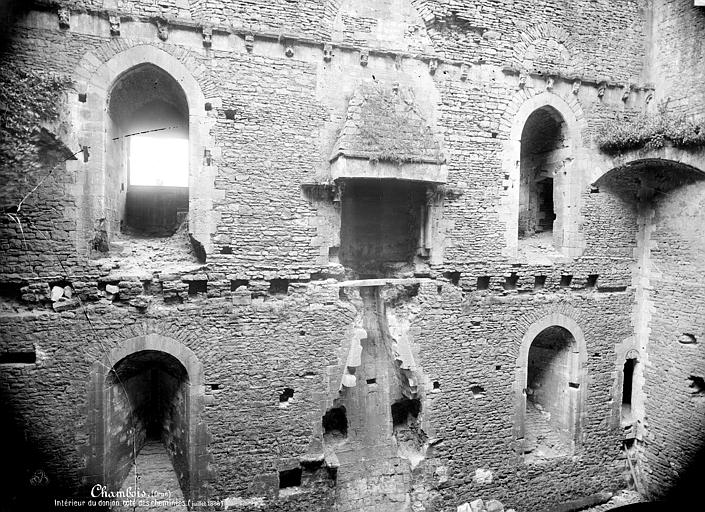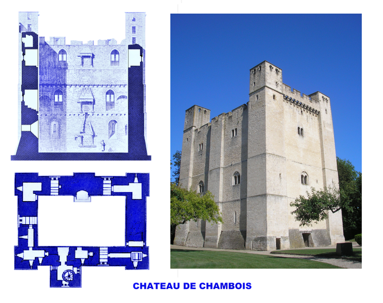 Le château fort de Chambois, ancien édifice du XIIe siècle, conserve principalement un donjon carré à tourelles d'angles de type normand et se situe sur l'ancienne commune de Chambois, aujourd'hui dans la commune nouvelle de Gouffern en Auge, dans l'Orne, en Normandie. Il contrôlait la route reliant Exmes et Falaise le long de la vallée supérieure de la Dives. Dès 924, le comté du Hiémois fut organisé en centenies et Chambois devint une châtellenie administrée par un vicaire. En 1024, Richard II de Normandie concéda la châtellenie à Drogon de Vexin; un éventuel château antérieur n'a pas laissé de traces archéologiques. Chambois fut confisqué en 1113 par Henri Ier et transmis par sa fille Mathilde à Henri II. Le donjon est attribué à Guillaume de Mandeville et, d'après des datations dendrochronologiques, a été construit entre 1160 et 1190. En 1204, Philippe Auguste réunit la Normandie au domaine royal et donna Chambois à son maréchal Henri Clément; par la suite le fief passa aux familles de Chambly puis des Tilly. En 1363 Charles le Mauvais s'empara du château puis le restitua en 1364 après sa défaite à Cocherel, période durant laquelle les fortifications furent renforcées et une garnison semble s'y être installée, comme le suggèrent de nombreux graffitis dans le donjon. Henri V le prit en 1417 et le dota à Henry FitzHugh, avant sa reprise par Dunois en 1449 lors du recouvrement de la Normandie. En 1556 les troupes protestantes de Montgomery assiégèrent et occupèrent le site avant d'être expulsées par le duc d'Étampes. Des troubles en 1649 provoquèrent déprédations; au XVIIIe siècle l'ancien logis fut démoli et remplacé par un château moderne, l'enceinte détruite en 1750 et des pavillons érigés après la vente du domaine en 1771. Pendant la Révolution le propriétaire Deneuve empêcha la démolition du donjon, qui servit ensuite de refuge lors des incursions de Chouans vers 1795-1799; vers 1830 le domaine fut morcelé et le château démoli. Le site occupe un coteau à l'est de la Dive, à proximité de l'église, et l'enceinte, jadis en pierre et cernée par le bourg, laisse encore des vestiges de murailles, des tourelles et un fossé comblé transformé en jardin. À l'est du donjon se trouvaient un logis construit en 1575 et détruit vers 1740, et un colombier semble se situer au sud-est à l'extérieur de l'enceinte. Le donjon roman a un plan rectangulaire de 21,40 × 15,40 mètres, une hauteur totale de 25,70 mètres et des murs épais d'environ 3 mètres à la base, construits en blocage avec parement en pierre de taille. Il est flanqué aux angles de tourelles carrées habitées qui, à chaque niveau, abritent de petites salles; la tourelle nord-est contenait un oratoire, leur base comporte un probable cachot et la partie supérieure servait de colombier. La terrasse, accessible par un escalier à vis aménagé dans le contrefort sud-est, était originellement crénelée; à la fin du XIVe siècle on ajouta un étage, un chemin de ronde avec parapet, mâchicoulis, créneaux et meurtrières, et l'on surmonta les contreforts d'échauguettes crénelées. La particularité du donjon est son chemin de ronde supérieur qui relie les échauguettes et une petite tour, formant une défense indépendante de la grande salle du commandant. Le donjon intègre au-dessus du rez-de-chaussée des murs évidés pour y loger couloirs, salles et latrines, procédé déjà employé dans plusieurs donjons du règne d'Henri II Plantagenêt. L'accès principal se situait au nord-ouest, à six mètres de hauteur, protégé par une saillie en encorbellement et probablement desservi par une passerelle amovible; la porte ouvrait sur un vestibule éclairé par une baie géminée puis sur la grande salle, la aula. Les trois niveaux étaient séparés par des planchers de bois et desservis par un escalier en vis qui remplace l'escalier d'origine; des corbeaux intérieurs sculptés permettent de restituer le solivage et attestent du caractère ostentatoire de la grande salle, seule pièce décorée. Le rez-de-chaussée, percé de fines ouvertures, servait au stockage et peut avoir accueilli une cuisine, comme l'indique la présence d'une cheminée peu commune pour ce niveau; une porte au nord-ouest porte un linteau orné d'un décor floral. Le second niveau comprend la grande salle éclairée par de larges baies géminées et pourvue d'une cheminée dont le manteau repose sur colonnettes et est décoré de moulures en losanges surmontées d'animaux; la salle supérieure, occupée par la chambre, est percée de fenêtres doubles rectangulaires et abrite une cheminée plus simple. Le donjon est classé au titre des monuments historiques par arrêté du 22 juin 1921.