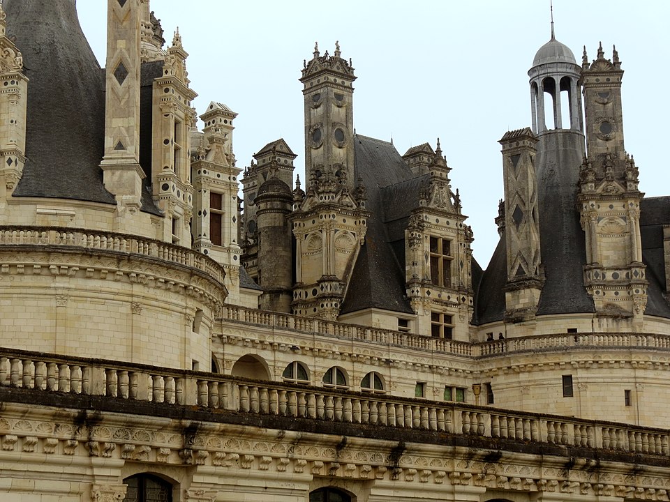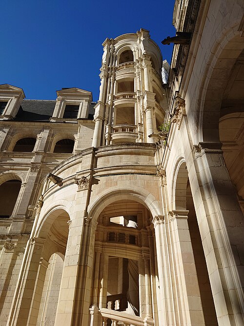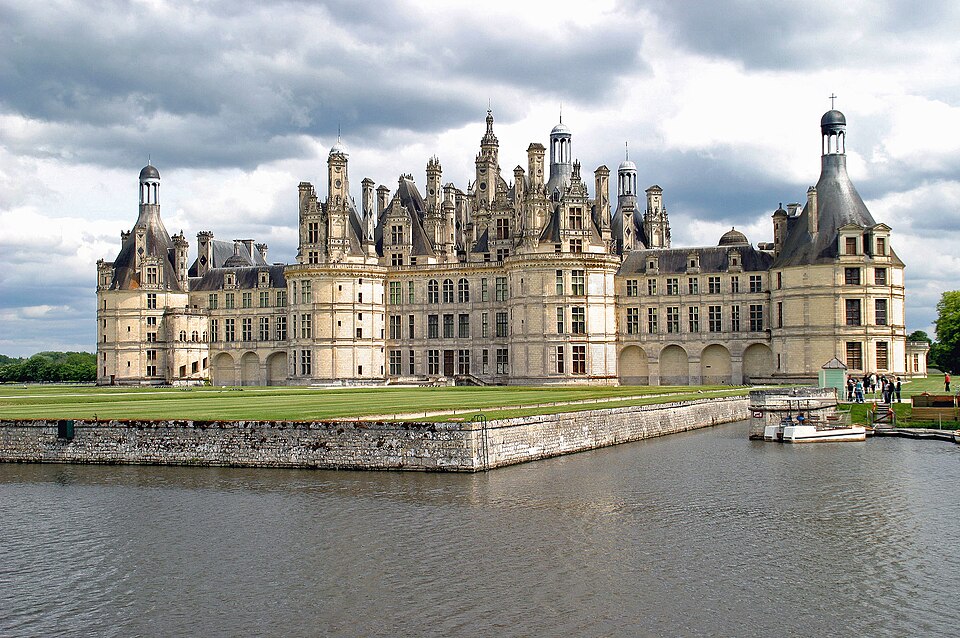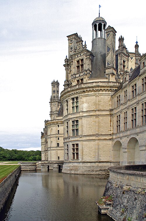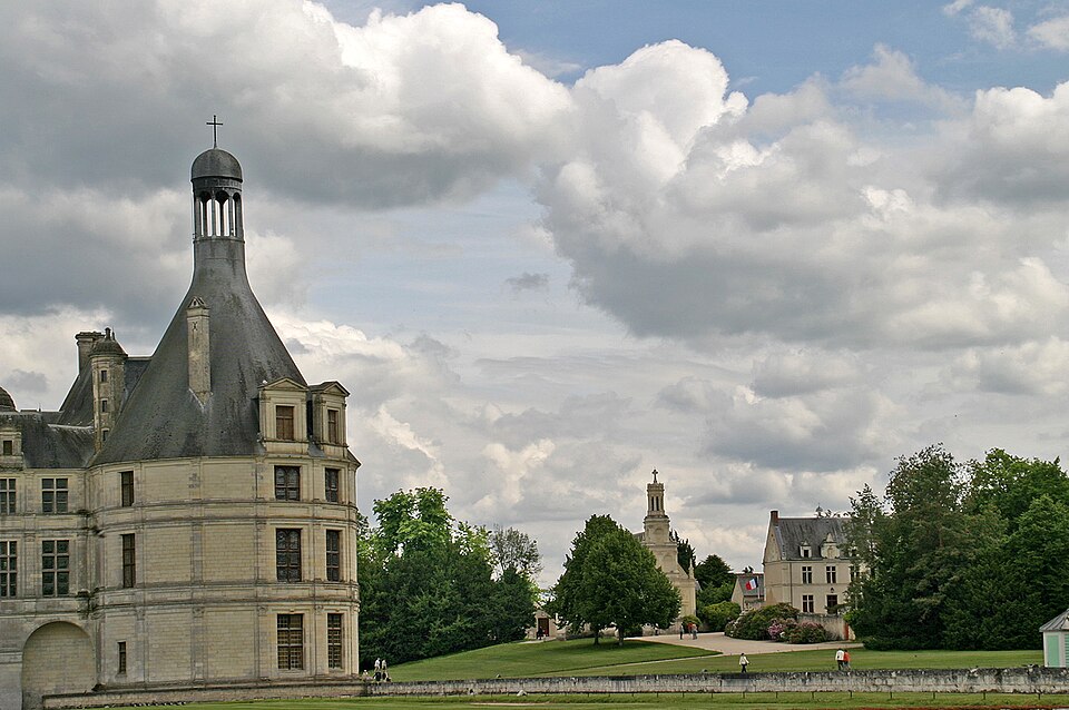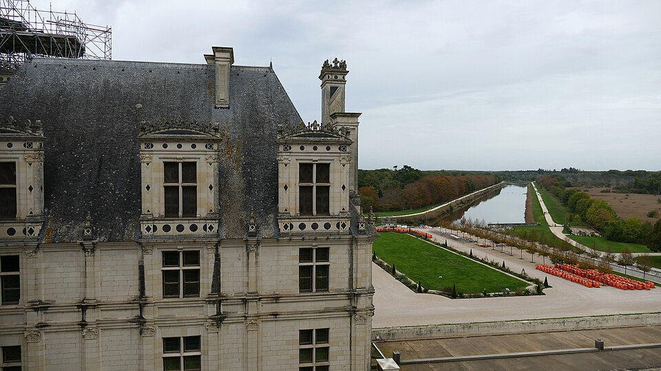 Le domaine de Chambord tient son origine de la décision de François Ier, prise à partir de 1519, de remplacer l’ancienne forteresse des comtes de Blois par un château destiné à la chasse. Les limites actuelles du domaine, fixées par Gaston d’Orléans, propriétaire de 1626 à 1660, en font le seul domaine royal conservé dans sa délimitation du XVIIe siècle. Le parc, clos par un mur de 32 kilomètres, couvre 5 433 hectares et comporte six entrées, ce qui en fait le plus vaste parc forestier clos d’Europe. Les travaux de construction se déroulent principalement entre 1519 et 1547, avec des interruptions, et plusieurs maîtres maçons se succèdent tandis que Pierre Nepveu assure une longue supervision du chantier. Le projet primitif prévoyait un donjon carré flanqué de quatre tours ; il évolue ensuite par l’adjonction de deux ailes et d’une enceinte. La paternité du plan initial reste incertaine, mais la participation probable de Léonard de Vinci et la collaboration de Dominique de Cortone sont souvent évoquées, notamment pour l’escalier à double révolution. Les étapes importantes mentionnées comprennent l’achèvement du donjon au milieu des années 1530, l’élévation des ailes et la construction de galeries, la mort de François Ier en 1547 interrompant les travaux. En décembre 1539, le château accueille l’empereur Charles Quint, moment marquant de la mise en valeur du chantier. Après des périodes d’abandon et des travaux de consolidation au XVIe siècle, Gaston d’Orléans entreprend des restaurations et des aménagements du parc au début du XVIIe siècle. Sous Louis XIV, Jules Hardouin‑Mansart intervient dans les années 1680 pour restaurer et achever des parties hautes, voûter la chapelle, établir des combles brisés et organiser l’esplanade et les communs. Le château sert ensuite de résidence intermittente et de demeure de gouverneurs ; il subit pillages et dégradations pendant la Révolution mais échappe à la destruction. Au XIXe siècle, le domaine est acquis en 1821 pour être offert au comte de Chambord, qui finance des campagnes de travaux, réorganise le parc et ouvre le château au public. L’État achète le domaine en 1930 ; au XXe siècle Chambord sert de refuge pour les œuvres des musées nationaux pendant la Seconde Guerre mondiale et fait l’objet de vastes campagnes de restauration après-guerre. Ces restaurations ont notamment reconstruit des combles, restauré la tour de la chapelle, le logis de François Ier et les offices, et repris des aménagements du parc comme le creusement du canal. Le domaine bénéficie de protections nationales et internationales : inscription au patrimoine mondial de l’UNESCO en 1981 et classement au sein de la vallée du Val de Loire et de réseaux de protection. L’architecture de Chambord mêle références médiévales — enceinte et grosses tours — et motifs de la Renaissance ; la silhouette du château, ses terrasses hérissées de cheminées et sa ornementation en font un chef-d’œuvre reconnu. Le plan centré du donjon repose sur une croix grecque organisée autour d’un escalier central à double révolution ; l’ensemble comprend cinq niveaux habitables, des appartements et une terrasse couronnée d’une tour-lanterne. Le bâtiment présente des dimensions et éléments remarquables : 156 mètres de façade, 56 mètres de hauteur, 426 pièces, 77 escaliers, 282 cheminées et environ 800 chapiteaux sculptés. La pierre principale utilisée, le tuffeau, nécessite des interventions régulières, et des carrières voisines fournissent des pierres de remplacement adaptées. Au XXIe siècle, des épisodes récents incluent l’inondation de 2016 liée à la crue du Cosson, la restitution des jardins à la française entre 2016 et 2017 rendue possible par un mécénat privé, et l’exposition commémorant les 500 ans du château en 2019. Le domaine accueille aujourd’hui expositions, spectacles et manifestations, reste l’un des monuments les plus visités de France et fait l’objet d’une gestion et d’un entretien continus pour préserver son caractère exceptionnel.