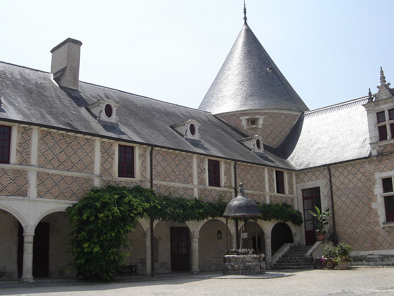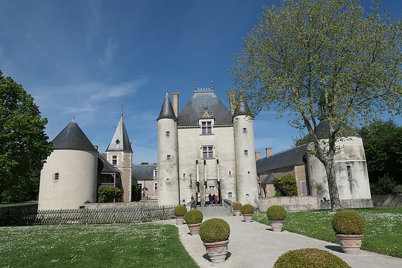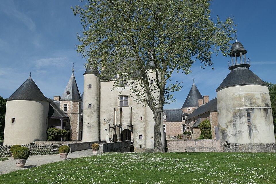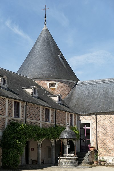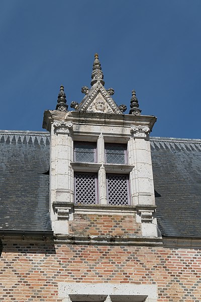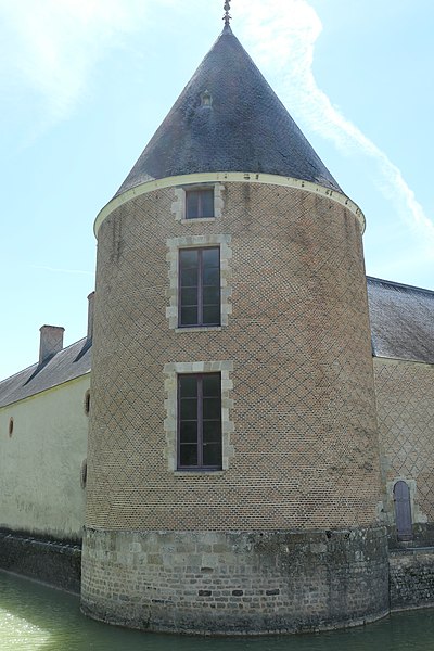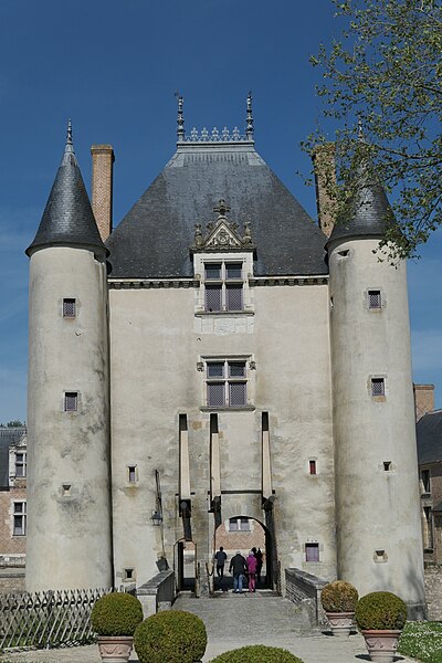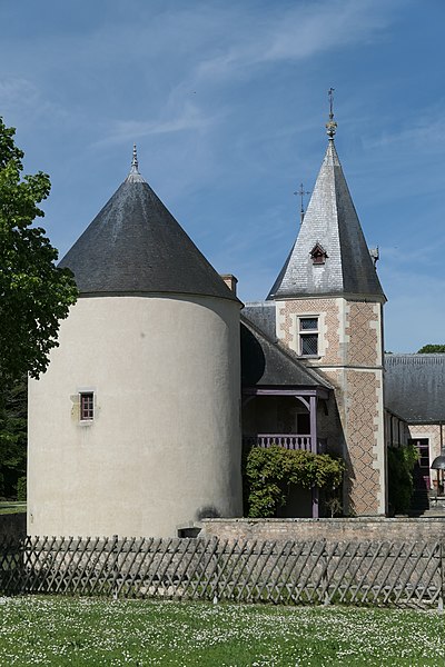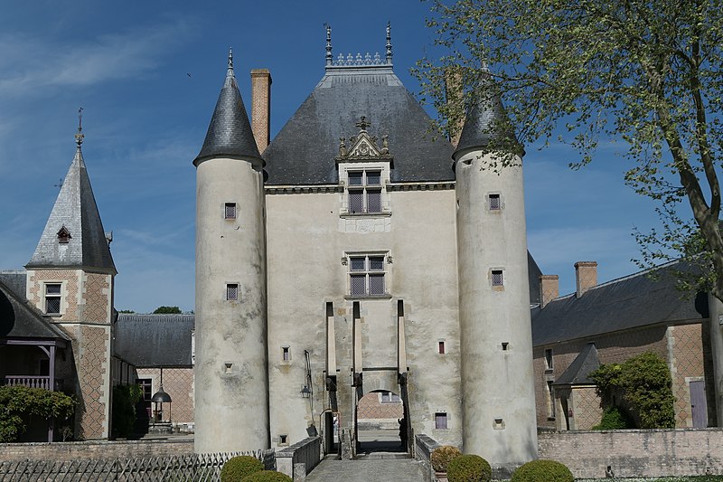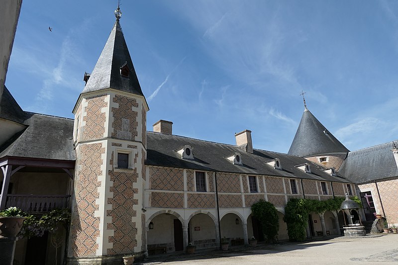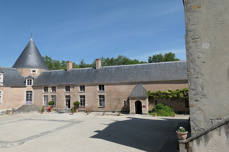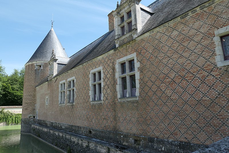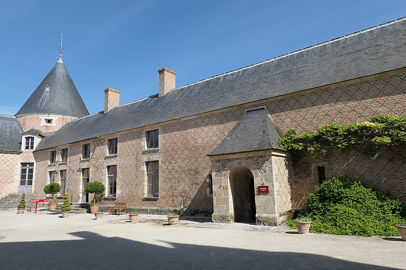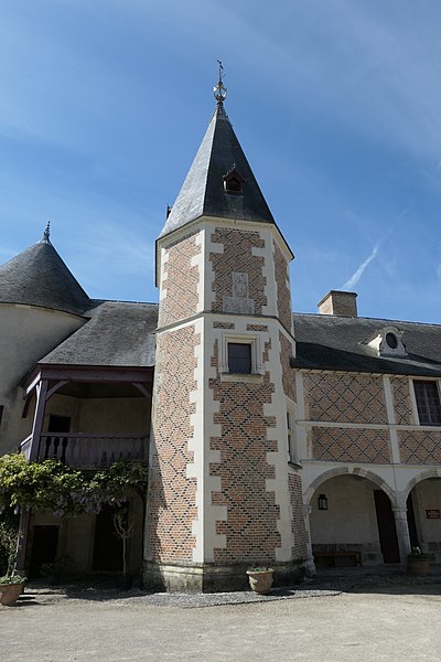 Les élévations en calcaire de Beauce enduit et en briques, la maille de briques rouges et noires et les toitures d'ardoise illustrent les matériaux et les techniques régionales. La cour d'honneur, fermée sur trois côtés, conserve un puits à coupole et une galerie de style Renaissance ; l'élévation inscrite aux alentours des années 1530 a été remaniée aux XVIIe et XVIIIe siècles sans en altérer profondément le caractère.