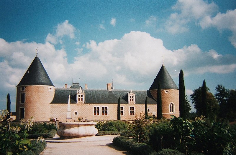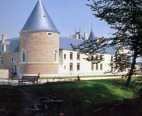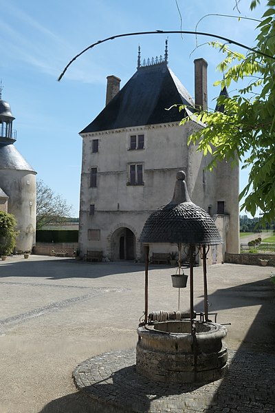 L'aile ouest, en retour d'équerre, rassemble une série de pièces de réception desservies par un couloir ; ses lambris et cheminées semblent dater du milieu du XVIIIe siècle. Un escalier en pierre, équipé d'une rampe en fer forgé de la fin du XVIIIe siècle, relie l'aile ouest à l'étage de l'aile sud et donne également accès à la tribune de la chapelle. Celle‑ci est couverte de voûtes gothiques construites selon la méthode traditionnelle, avec arcs diagonaux à liernes et tiercerons, et a conservé des peintures murales uniques. Lors de la restauration de 1991, des textes peints ont été dégagés : le Décalogue de la Bible de Genève de 1588, le Credo et le Notre‑Père ; les armoiries des familles du Lac et de Châtillon‑Coligny ornent le Décalogue, éléments probablement ajoutés par Lancelot II pour témoigner des alliances familiales à l'époque des guerres de Religion.