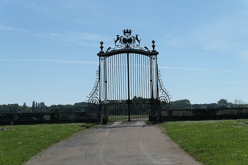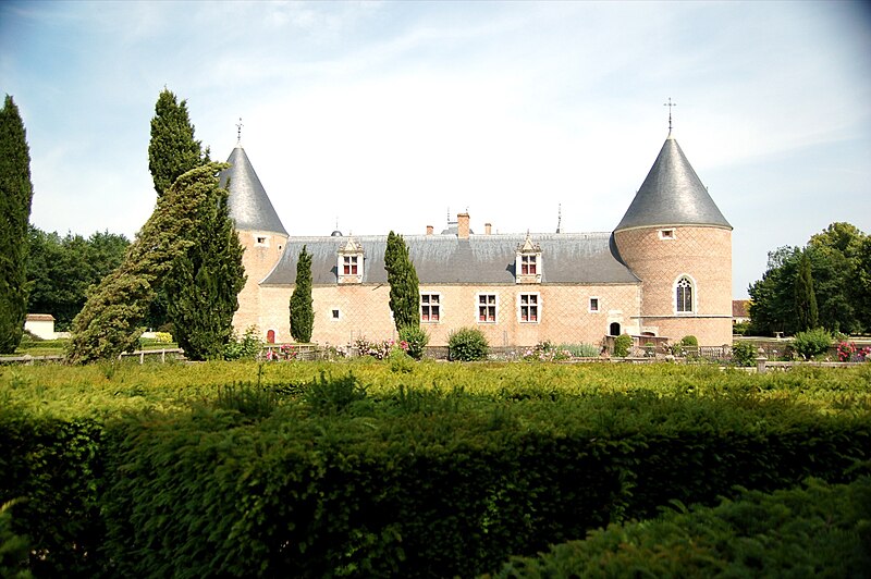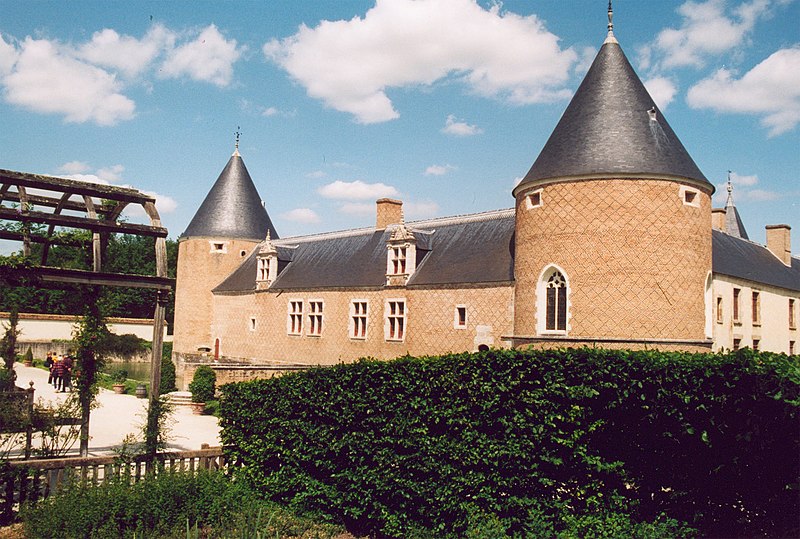 Sur le plan des jardins, du début du XVIe siècle à la fin de l'Ancien Régime les espaces cultivés restaient limités au quadrilatère devant la façade occidentale et encadrés par un réseau de canaux. Un plan d'aménagement plus vaste et d'inspiration classique a été conçu en 1789, avec au sud un étang aménagé en miroir d'eau à forme cintrée dite « à oreilles » ; les terrains au nord furent partiellement réorganisés la même période. Les jardins furent transformés à l'anglaise au XIXe siècle puis pratiquement abandonnés vers 1920 ; lors de la restauration du château, Jacques Moulin a recréé des jardins inspirés de la Renaissance française et un parc traversé par une rivière a été aménagé au sud. À l'intérieur de l'enceinte, l'ancienne halle de Bellegarde, XVIIe siècle, a été démontée, restaurée puis réinstallée et inaugurée dans le cadre d'une exposition en 2009.