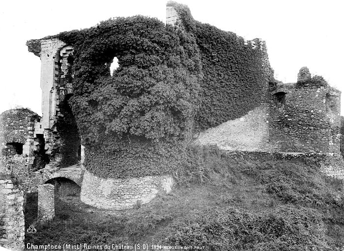 Le château de Champtocé, situé à Champtocé-sur-Loire sur la rive droite de la Loire en Anjou (Maine-et-Loire), est connu pour avoir été l'un des lieux de résidence de Gilles de Rais. Il est inscrit au titre des monuments historiques en 1926. Le site s'élève sur un promontoire de schiste dominant la Romme, qui alimente la boire de Champtocé. Mentionné vers l'an 1000 sous le nom de Cantosciaco dans le cartulaire de la Trinité de Vendôme, il aurait pu appartenir aux comtes d'Anjou afin de contrôler le trafic fluvial. Foulques Nerra y inféoda un certain Orry, mais le dépouilla ensuite et remit la terre, au début du XIe siècle, à une famille de chevaliers qui prit le nom de Champtocé ; le premier membre connu est Hugues de Champtocé. Le site est qualifié de castellum entre 1075 et 1084, preuve de son caractère fortifié. Vers 1100, le fief passa à la maison de Craon par le mariage de Tiphaine de Champtocé et d'Ingrandes avec Maurice Ier de Craon. En 1212, Amauri de Craon s'engagea auprès de Philippe Auguste à remettre la forteresse durant le conflit entre Capétiens et Plantagenêt. La renommée du château tient en partie à Gilles de Rais, né vers 1405 de Marie de Craon et de Guy de Laval ; compagnon de Jeanne d'Arc, il devint maréchal de France en 1429, vendit Ingrandes et Champtocé au duc de Bretagne Jean V en 1437 et fut exécuté à Nantes en octobre 1440. Aux XIIIe–XVe siècles, Champtocé fut la première place forte de l'Anjou sur la rive droite de la Loire, première ligne de défense contre le duché de Bretagne et un péage important ; c'est au XIIIe siècle que la forteresse prit sa forme actuelle. À la fin du Moyen Âge, Ingrandes et Champtocé passèrent sous l'autorité de la maison de Montfort-Bretagne avec Jean V, puis leur possession fut disputée par les rois Valois ; un accord de 1486 attribua finalement ces terres à François d'Avaugour, dont la lignée conserva la seigneurie jusqu'entre 1699 et 1704. En 1704, Ingrandes et Champtocé furent vendus à Madeleine-Diane de Bautru de Serrant, qui céda ces biens angevins à la famille Walsh en 1749. Les vestiges visibles aujourd'hui comprennent un châtelet d'entrée orienté vers le village, formé de deux portes, l'une charretière et l'autre piétonne, accessible par un pont dormant doublé d'un pont-levis et défendu par des canonnières et une herse. L'enceinte comportait autrefois onze tours ; une seule, éventrée, subsiste et s'élève face à la route. À l'est, une poterne munie d'assommoirs permettait l'accès à des salles souterraines. À l'intérieur de la cour, seul un puits est signalé ; l'aménagement du reste de l'enceinte demeure inconnu en l'absence d'études archéologiques.