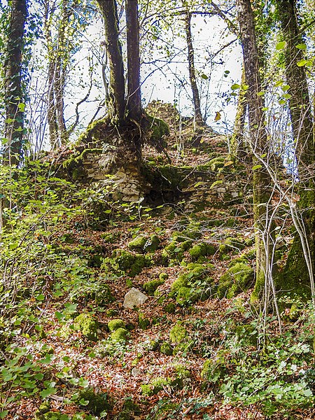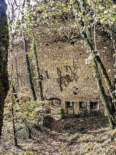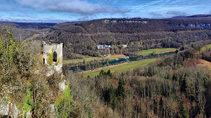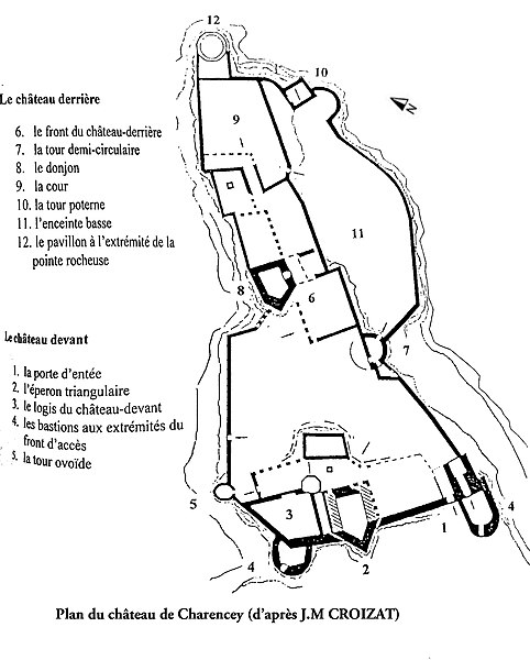 Le château de Charencey est un château fort du Moyen Âge dont les vestiges se dressent sur la commune de Chenecey-Buillon, dans le Doubs, en Bourgogne-Franche-Comté. Le bourg portait initialement le nom de Charencey et se situait à proximité du hameau actuel des Granges Mathieu. Les ruines sont inscrites au titre des monuments historiques depuis le 8 avril 1991. Le site occupe plus de trois hectares et s'étend sur un éperon rocheux orienté vers l'est, en rive gauche de la Loue, qu'il domine de plus de 120 mètres. Cité au XIIe siècle, il était divisé en deux parties, le châtel-devant, tenu par la famille d'Andelot, et le châtel-derrière, tenu par la famille d'Arguel. En 1408, Jean III de Chalon-Arlay fit procéder à de puissantes adaptations pour résister aux armes à feu. Pendant la guerre de Dix Ans, un conseil de guerre s'y tint en mai 1636 et les Français l'assiégèrent sans succès en juin 1636. Les ruines témoignent des premiers dispositifs bastionnés du comté de Bourgogne et présentent plus de vingt-cinq bouches à feu ainsi que trois fronts de défense successifs. Au début du XXe siècle subsistaient de nombreux vestiges aujourd'hui partiellement disparus, notamment le second donjon. Protégé par des parois calcaires abruptes sur trois côtés, le château n'était défendu que par la face ouest, qui comprenait une courtine avec un éperon central flanquée de deux tours. La grosse tour carrée au sud et la tour ronde plus petite au nord, ainsi que la muraille, étaient équipées de mâchicoulis. Un fossé défensif et une première muraille complétaient la ligne extérieure, tandis qu'un second rempart préservait la partie résidentielle avec les appartements, le donjon, la chapelle et la cour d'honneur. L'accès à la place d'armes se faisait par un passage voûté percé de meurtrières et fermé par une herse de fer. À l'extrémité est, une tour ronde aux fenêtres ogivales ouvrait une vue panoramique sur la vallée de la Loue. Les vestiges visibles comprennent notamment la salle basse de la tour carrée sud-est, la ligne défensive de la tour bastionnée, l'accès et le bastion nord-est ainsi que le passage vers l'extrémité est et l'intérieur de la tour ronde.