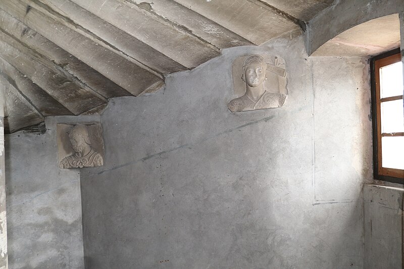 Tourelle d'escalier et sa décoration murale (cad. AK 452) : classement par arrêté du 28 novembre 1969 ; Façades et toitures (cad. AK 452) : inscription par arrêté du 1er décembre 1969