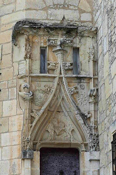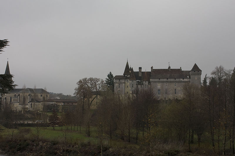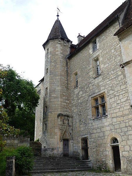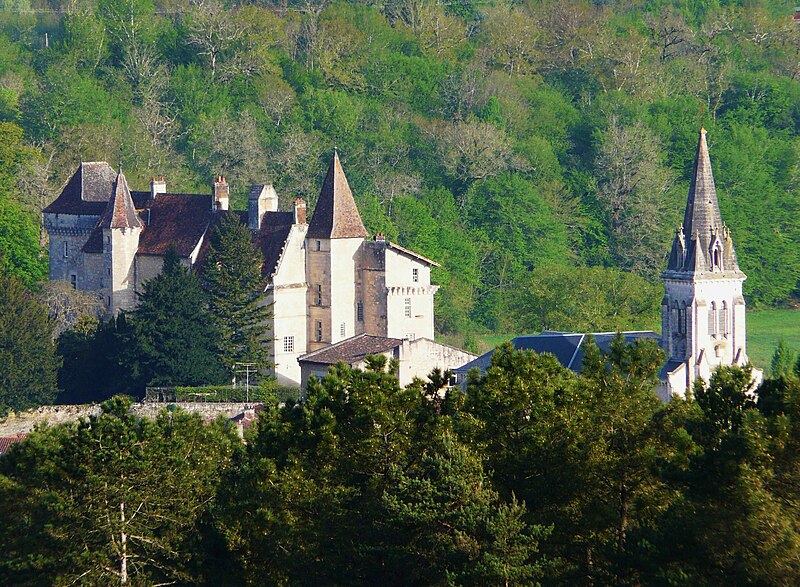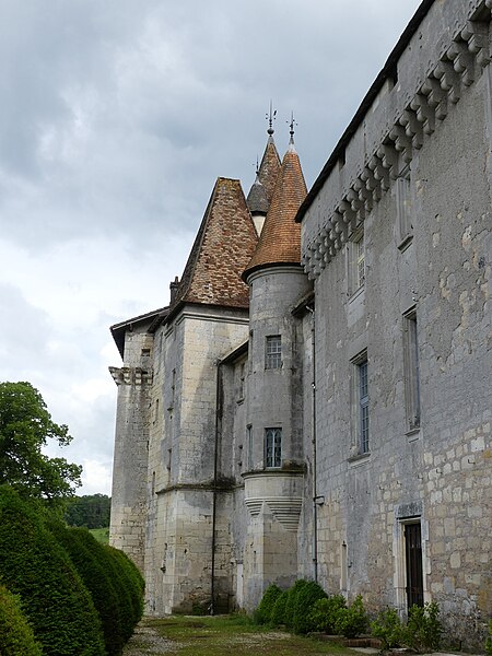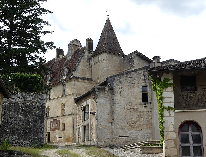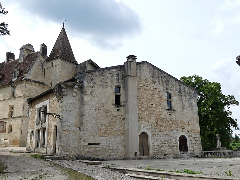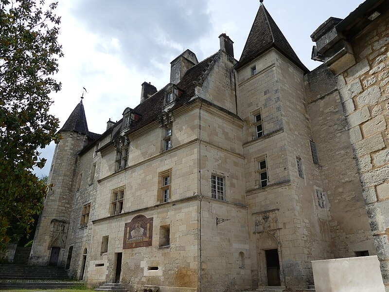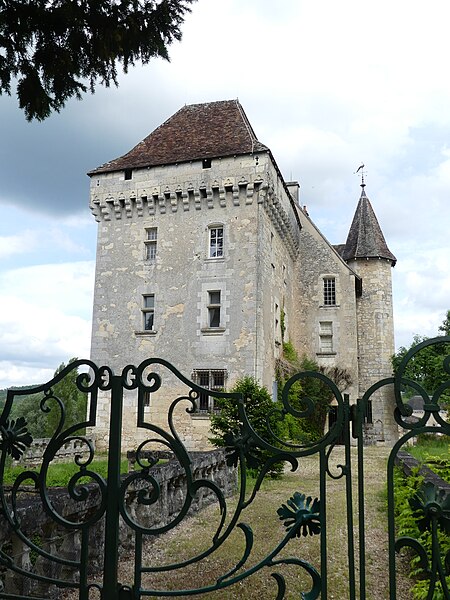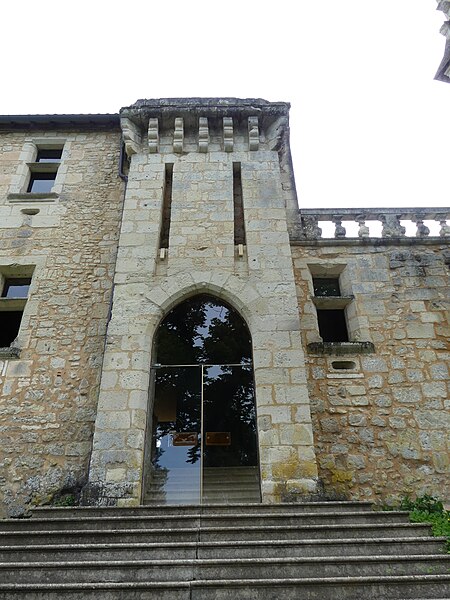 Implanté sur un éperon rocheux, il commandait autrefois les vallons de la Beauronne et du Mesplier, ce dernier alimentant les douves. Plusieurs défenses ont disparu, notamment un fossé taillé dans le roc à l'ouest qui isolait le château, un donjon et des murs côté sud ; au nord, les douves pouvaient être agrandies par inondation. L'édifice actuel s'organise en plusieurs logis parallèles et asymétriques orientés est‑ouest, accolés les uns aux autres et flanqués à l'ouest d'un pavillon, complétés par plusieurs tours. Côté sud, deux tourelles octogonales dépassent la toiture, l'une abritant un escalier à vis, et plusieurs tours renferment des escaliers ; leurs portes d'accès, datées du XVe siècle, sont sculptées et ornées de statuettes, de niches et de pinacles dont certains ont été martelés. Plusieurs parties sont couronnées de mâchicoulis et de créneaux, la plupart des fenêtres sud présentent des meneaux et l'ensemble est couvert de toitures pentues en tuiles. Parmi les décors originaux subsistent les armoiries de Guy de Castelnau sur le logis qu'il fit construire et un plafond peint aux armes de Monseigneur Guillaume Le Boux dans un oratoire logé dans une tourelle à encorbellement.