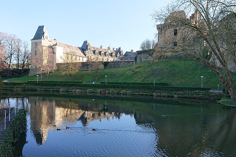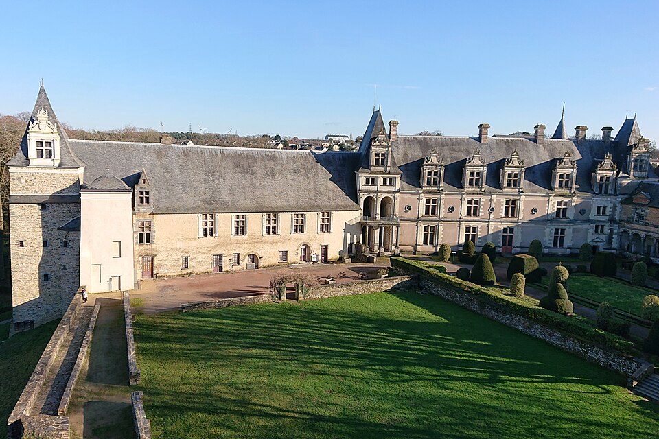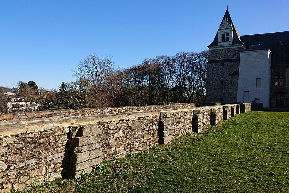 Le château de Châteaubriant, mentionné pour la première fois entre 1030 et 1042, a été fondé au XIe siècle et s’est élevé dès l’origine comme un point fort des marches de Bretagne. Conçu initialement autour d’un donjon, il a été agrandi et renforcé durant le Moyen Âge pour défendre le duché face aux fiefs voisins, notamment l’Anjou. Au fil des siècles, de larges campagnes de construction et de transformation ont façonné l’ensemble : enceintes, tours à archères, châtelet, chapelle et logis ont été édifiés ou remaniés du XIIIe au XVe siècle. La baronnie, élevée au XIIe siècle, passa successivement aux familles de Dinan, de Montfort-Laval, puis aux Laval, aux Montmorency et enfin aux Condé, traduisant l’importance politique et seigneuriale du lieu. En 1488, le château fut assiégé et partiellement démantelé lors de l’intervention du roi Charles VIII, événement qui marqua un tournant ; ses fonctions militaires déclinaient progressivement au profit d’une vocation plus résidentielle. Dans la première moitié du XVIe siècle, après des réparations et des aménagements pour le confort, un « Château‑Neuf » de style Renaissance fut construit dans la basse‑cour, comprenant logis, galeries et jardins. Jean de Laval engagea d’importants travaux entre 1524 et le début des années 1530, auxquels s’ajoutèrent des réalisations attribuées ensuite à Anne de Montmorency dans les années 1540. Les progrès de l’artillerie entraînèrent aussi l’adaptation des défenses : bastion, demi‑lunes et casemates vinrent compléter les anciens dispositifs. Durant les guerres de Religion, le château connut plusieurs sièges et démantèlements partiels, qui aggravèrent son déclin comme résidence princière. Après la Révolution, la propriété changea de mains à plusieurs reprises ; transformé en caserne et en divers services, il fut progressivement utilisé par les administrations locales. Racheté par le département en 1853, le monument accueillit longtemps tribunaux, administrations et services publics, tandis que des campagnes de restauration ponctuelles se déroulèrent aux XIXe et XXe siècles. Réquisitionné pendant la Seconde Guerre mondiale, le château subit en 1944 des destructions notamment sur une aile des logis Renaissance ; des réparations furent ensuite conduites au titre des dommages de guerre. À partir des années 1950, puis de façon plus soutenue depuis les années 1970, des fouilles et des restaurations ont permis de consolider le donjon, de rendre accessibles la chapelle et certains cheminements et d’ouvrir des espaces au public. La fermeture du tribunal en 2009 et le départ des services de sous‑préfecture en 2012 ont achevé la transformation du site en équipement patrimonial entièrement consacré au tourisme et à la médiation. Aujourd’hui propriété du conseil départemental, le château conserve un ensemble médiéval et Renaissance largement lisible et fait l’objet d’un accueil et d’actions culturelles destinés à valoriser son histoire et son architecture.