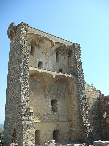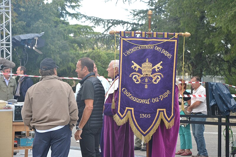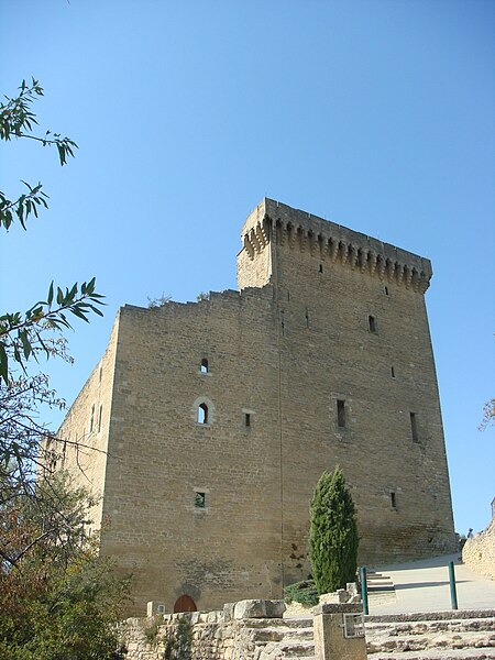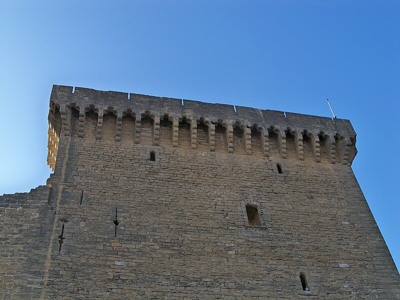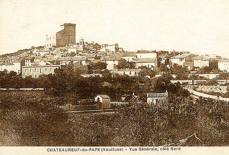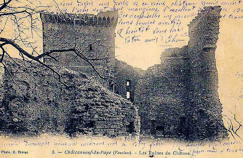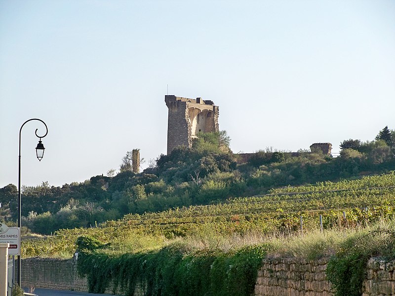 Le château de Châteauneuf-du-Pape domine le village et son vignoble depuis près de huit cents ans et son histoire est étroitement liée à la présence pontificale à Avignon. Un castrum d'origine romaine, probablement détruit lors des grandes invasions, est mentionné en 913 sous le nom de castellum de Leri lorsque Louis l'Aveugle le céda à l'évêque d'Avignon Foulques. En 1077, Rostaing inféoda le fief à Pierre d'Albaron, qui fit construire un donjon ; tout au long du Moyen Âge le vieux château joua le rôle de poste de surveillance et de péage sur le Rhône et passa entre les mains de diverses familles alliées des Albaron. Agrandi au XIIe siècle et rénové au XIIIe, le site fut appelé château de l'Hers ; la légende d'une installation templière à la fin du XIIe siècle a été remise en cause par des historiens du XXe siècle. La mention d'un Castro Novo en 1094 donne naissance au nom de Châteauneuf ; une construction du comte de Toulouse datée de 1146 est identifiée dans un acte de 1283 comme la vieille tour. En 1157 le tènement échut à Godefredus Lauger, évêque d'Avignon, et une charte de Frédéric Barberousse signale alors la présence de vignes. À l'installation de la papauté à Avignon, Châteauneuf reçut un statut particulier : ses hautes et basses justices relevèrent de l'évêque d'Avignon et non du recteur du Comtat. Clément V séjourna brièvement en 1314 ; après l'élection de Jacques d'Euze sous le nom de Jean XXII, d'importants travaux furent entrepris. Jean XXII consacra 3 000 florins à la restauration du vieux château et, dès 1317, lança la construction d'un château neuf achevé en 1333, tandis que la cité fut ceinte de remparts en 1318. Par sa taille et sa position le nouvel édifice avait essentiellement une fonction défensive ; ses successeurs pontifes y séjournèrent peu, sauf en cas d'épidémie ou de déplacements temporaires de la cour. Clément VII fit, entre 1385 et 1387, des travaux d'entretien et replantera le vignoble ; Benoît XIII s'y installa et fit effectuer quelques restaurations en 1396. Après le retour de la papauté à Rome, le château fut progressivement négligé par les évêques d'Avignon et tomba en déshérence, puis reprit une importance stratégique pendant les guerres de religion : en 1562 Jean-Perrin Parpaille tenta de le prendre mais fut repoussé, les huguenots s'en emparèrent en juillet 1562 et le baron des Adrets incendia une partie du château en mars 1563. Après ces événements il ne resta que le donjon et un grand pan de mur ; des réparations eurent lieu en 1578 et des capitaines perpétuels furent nommés à la fin du XVIe et au XVIIe siècle. Des ordonnances archiépiscopales protégèrent le vignoble et Hyacinthe Libelli fit réaménager et embellir le château en 1681. Au XVIIIe siècle le bâtiment fut loué et les vins de la région suscitèrent des débats gustatifs liés à la présence de vignes de muscat sur le terroir. Après la Révolution, le domaine fut vendu aux enchères en 1798 puis morcelé, entraînant le démontage et le pillage de nombreuses pierres. Au XIXe siècle le rez-de-chaussée du donjon servit de stockage sous condition d'ouverture aux visiteurs ; en 1892 la ruine fut rétrocédée à l'État et classée monument historique. Pendant la Seconde Guerre mondiale la garnison allemande utilisa le donjon comme dépôt d'armes et poste d'observation ; lors de leur retraite le 20 août 1944 des explosions détruisirent la partie nord du château. Seuls subsistèrent une face sud du donjon et le cellier ; la façade ouest, bien que déjà ruinée, laisse encore voir la disposition en trois étages. Une plaque rappelle la mort, en juin 1944, d'un jeune résistant des Francs-Tireurs Provençaux près du château. En 1960 la municipalité aménagea le cellier pontifical en salle de réception qui a conservé ses proportions d'origine et accueille notamment les cérémonies d'intronisation de l'Échansonnerie des papes ainsi que plusieurs manifestations liées au vin. Le château comprenait trois étages, un important corps de logis flanqué de quatre tours, trois grandes salles au rez-de-chaussée dont le cellier pontifical, une grande salle d'apparat au premier étage et des appartements privés au second. L'architecture relève du gothique rhodanien, synthèse entre l'art gothique septentrional et le roman méridional, datée de la période 1319-1326 et marquée par une nef unique couverte de voûtes sur croisées d'ogives. Introduit par des lapidaires du Languedoc, ce style privilégie l'unité de volume, le dépouillement mural, des fûts lisses et chapiteaux simplifiés, ainsi que des baies étroites adaptées au mistral et à la lumière. Les maîtres d'œuvre successifs furent Hugues de Patras, puis Raymond d'Ébrard à partir de 1319 ; en juillet 1322 Guillaume Coste prit la direction pour achever le gros œuvre et la mise en place de la charpente, commencée en 1333, fut dirigée par Pierre Gautier qui se procura du bois en Ligurie. Des campagnes de fouilles ont livré un important ensemble de carreaux vernissés provenant des ateliers de l'Uzège, proches par leur décor et leurs teintes des sols du palais des papes d'Avignon, et les registres de la Révérende Chambre apostolique mentionnent d'importantes commandes de carreaux au début du XIVe siècle. Ces découvertes, complétées par des recherches sur le terrain et des collectes auprès des habitants, ont permis de reconstituer l'homogénéité des pavements produits pour le pontificat de Jean XXII. L'enclos pontifical qui entourait la résidence d'été de Jean XXII, composé de vignes et d'oliviers et couvrant plusieurs hectares, est resté cultivé ; certaines parcelles, dont le Clos des Papes, appartiennent à des familles présentes à Châteauneuf depuis plusieurs générations.