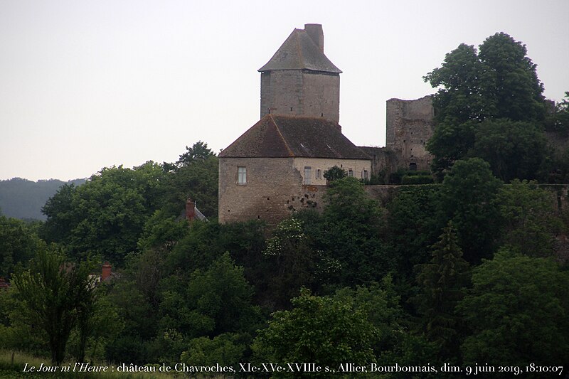 Le château de Chavroches, en ruines, se dresse sur une colline escarpée de la commune de Chavroches (Allier, Auvergne-Rhône-Alpes), dominant la rive droite de la Besbre. Il occupe une plateforme autrefois entourée de murailles, dont il ne subsiste qu'une faible portion. La masse principale comprend un imposant donjon de plan rectangulaire et un bâtiment oblong transformé en habitation. L'enceinte reste perceptible par une courtine et deux tours ruinées, qui paraissent dater du XIVe ou du XVe siècle. À l'opposé de l'enceinte, le logis est adossé aux courtines. Une des particularités du donjon est qu'un de ses quatre angles est « rentrant », formé de trois pans en W. La poterne d'entrée se présente sous la forme d'une tour rectangulaire percée d'une porte en plein cintre dont l'archivolte est décorée de motifs floraux ; elle constitue l'un des rares témoins d'architecture militaire de la fin du XIIe ou du début du XIIIe siècle. Le château était déjà en ruines en 1572, composé alors de sa tour carrée servant de donjon et de plusieurs autres tours. Il fut l'ancien siège d'une des châtellenies les plus prospères du Bourbonnais. L'édifice est inscrit au titre des monuments historiques depuis le 9 décembre 1929.