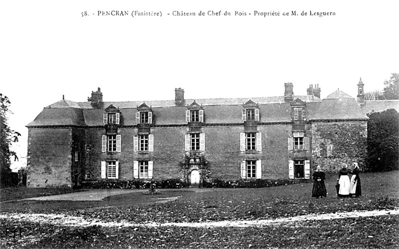 Rien ne semble subsister du manoir primitif, construit au XVe siècle par Jean Guérault, et l'évolution du château de Chef-du-Bois reste assez mal connue, marquée par d'importants remaniements. Le château paraît avoir été reconstruit au XVIIe siècle selon un plan en U. À la fin du XVIIe siècle, le marquis de Kerlozrec fit appel à l'architecte brestois Le Petit, élève de Mansart et de Le Nôtre, pour agrandir l'édifice ; ses projets, jugés trop ambitieux et trop coûteux, ne furent que partiellement exécutés. On procéda à la démolition de l'aile est, le toit du logis fut transformé en toit à la Mansart et l'on entreprit peut‑être l'aménagement du jardin, dont subsiste un bassin. La chapelle prévue fut ajoutée en 1777. L'ensemble actuel, assez hétéroclite et ne ressemblant que lointainement ni au château initial ni au projet de l'architecte, conserve toutefois une architecture de belle qualité.