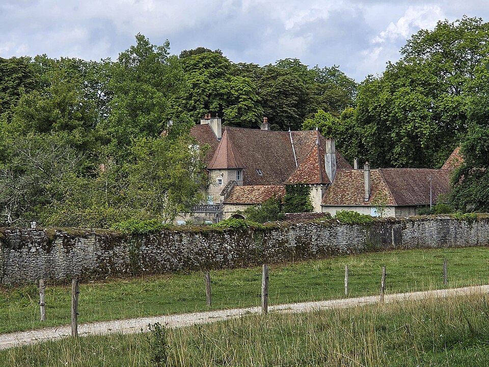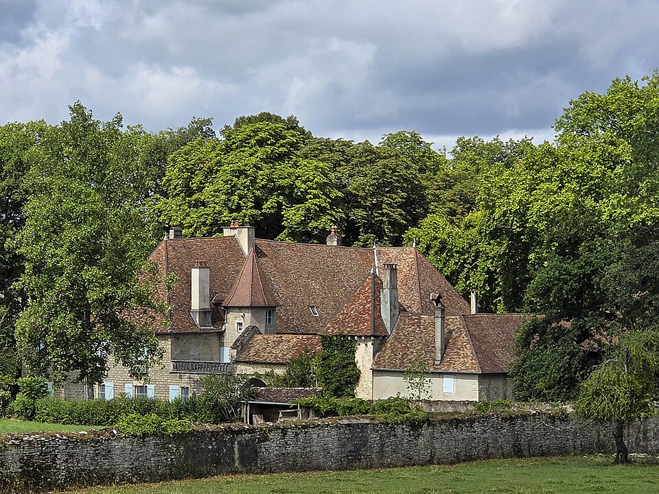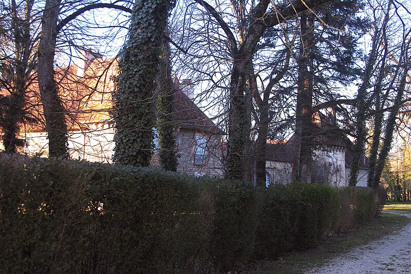 Sols, y compris les vestiges archéologiques, des parcelles 14 à 18 et du ruisseau qui les traverse ; portail d'entrée dans la propriété ; grilles du côté Ouest de la cour et pont sur le fossé ; puits dans la cour ; façades, avec leurs grilles en fer forgé, et toitures de tous les bâtiments du château, murs des quatre tours carrées, tour d'escalier ; dans le corps de logis : au rez-de-chaussée, cuisine voûtée, mur Sud de la salle à manger attenante, chambre de la tour Sud et grand salon qui donne à l'Est avec leurs lambris et leur cheminée ; à l'étage : chambre aux tapisseries qui donne à l'Est avec ses lambris et sa cheminée (cad. 1962 AD 14 à 18) : inscription par arrêté du 24 octobre 1988