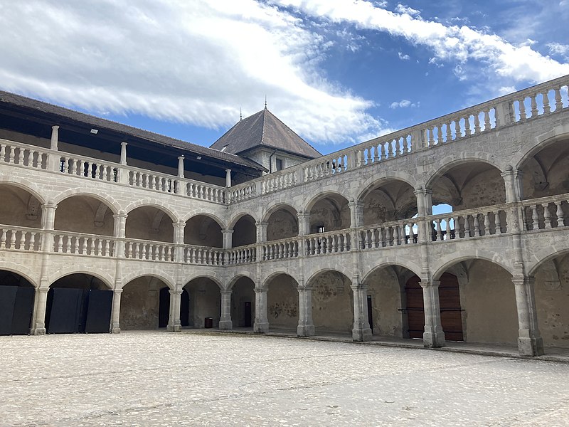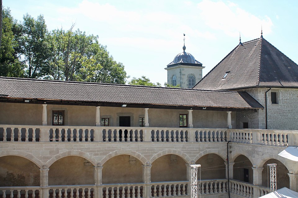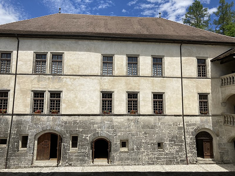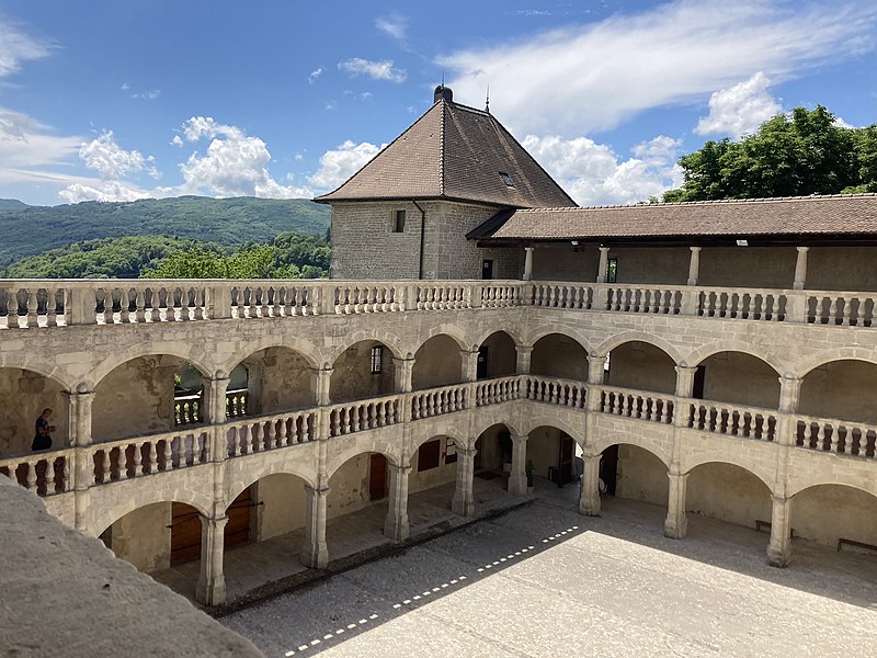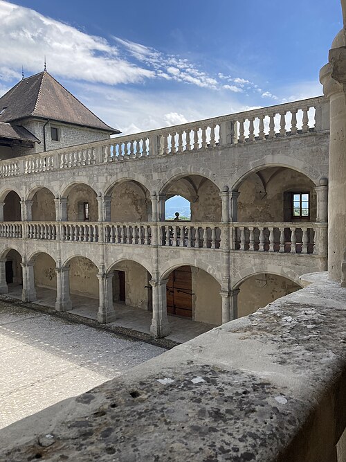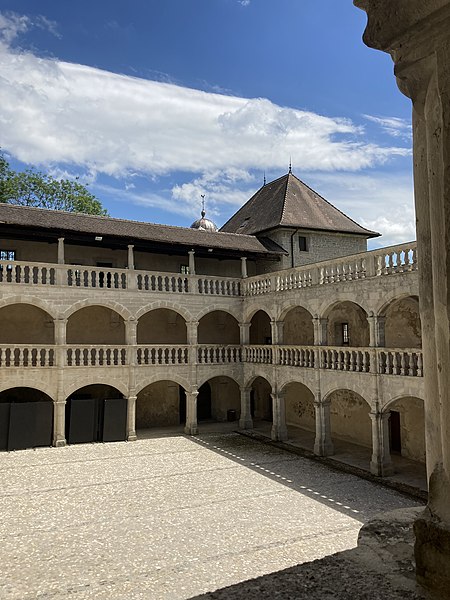 Le château de Clermont, dit aussi château de Regard, est un édifice de style Renaissance du XVIe siècle situé sur la commune de Clermont, en Haute-Savoie (Auvergne-Rhône-Alpes). Il ne doit pas être confondu avec l'ancien château comtal, aujourd'hui disparu, perché plus haut. Implanté sur le versant du crêt molassique appelé le Molard ou mont Saint-Jean occidental, le château occupe le plain-château situé sous l'ancien château comtal, le premier château médiéval ayant été édifié sur l'ancienne route de Chambéry à Genève. Après l'acquisition du comté de Genève par la maison de Savoie en 1401, la famille Regard devint châtelaine de Clermont. Le duc Emmanuel-Philibert autorisa le 2 novembre 1576 Mgr Gallois de Regard, évêque de Bagnorea et camérier du pape Paul IV, à faire ériger un nouveau château destiné à servir de résidence d'été. La construction, commencée en 1578 sur le versant occidental en réutilisant des pierres du vieux château, fut achevée à la mort de Gallois de Regard en 1582 à Annecy. C'est dans la chapelle du château que Gallois de Regard donna en 1578 la tonsure au futur saint François de Sales. Le château passa ensuite à un neveu de Gallois de Regard, ancêtre des branches Regard de Vans, de Morgenex, de Disonche et de Villeneuve. Parmi ses descendants, Alexandre-Gaspard de Regard, ambassadeur de Savoie à Londres en 1650 et seigneur de Clermont, reçut avec faste le duc Charles-Emmanuel II. En 1670 les terres de Clermont furent érigées en comté au profit de François-Joseph de Regard, maître d'hôtel de la duchesse Marie-Jeanne-Baptiste et officier de cavalerie. Au XVIIIe siècle, un autre François-Joseph de Regard, aide de camp du roi Charles-Emmanuel III, participa à la réorganisation de l'armée sarde sur le modèle prussien. Plus tard, Ferdinand de Regard, héros du Risorgimento, fut blessé à Goito en 1848 et tué à Novare en 1849. La famille Regard conserva le château jusqu'en 1860, lors du décès de la comtesse de Regard de Vars, dernière du nom. Le domaine passa ensuite au comte Tancrède de Fortis; en 1921 sa fille le vendit aux fermiers occupants, la famille Cottin, puis il fut occupé par la famille Gay. Mis en vente en 1963, le château a été acquis en 1966 par le département de la Haute-Savoie. Mgr Gallois de Regard a fait édifier le château en réutilisant des éléments médiévaux de la maison paternelle, qui se trouvait alors dans le plain-château en contrebas de l'ancien château comtal. L'architecture, inspirée de modèles de la Renaissance italienne, comprend un grand corps de logis principal orienté à l'ouest, éclairé par de grandes fenêtres sans meneaux ni traverses, et trois côtés bordés de galeries à arcades à arcs surbaissés et balustres qui ferment une cour. Deux gros pavillons rectangulaires en saillie encadrent la galerie ouest, où s'ouvre, côté village, un portail monumental surmonté d'une fenêtre-balcon; des galeries intérieures surplombent l'entrée. Les parties accessibles comprennent au rez-de-chaussée une cave voûtée, des communs et des cuisines avec cheminée et passe-plat; à l'étage se trouvent une salle à manger, des appartements privés dotés d'une fenêtre et d'un fauteuil daté de 1621 ainsi qu'une chapelle. Du 1er avril au 31 octobre, le château accueille des expositions, des visites guidées thématiques et des concerts ou spectacles dans sa cour d'honneur. Les façades et toitures du château, ainsi que la cour avec ses galeries et sa porte, sont classées au titre des monuments historiques par arrêté du 21 avril 1950, tandis que l'ensemble des intérieurs bénéficie d'une inscription partielle par arrêté du 6 juillet 1988.