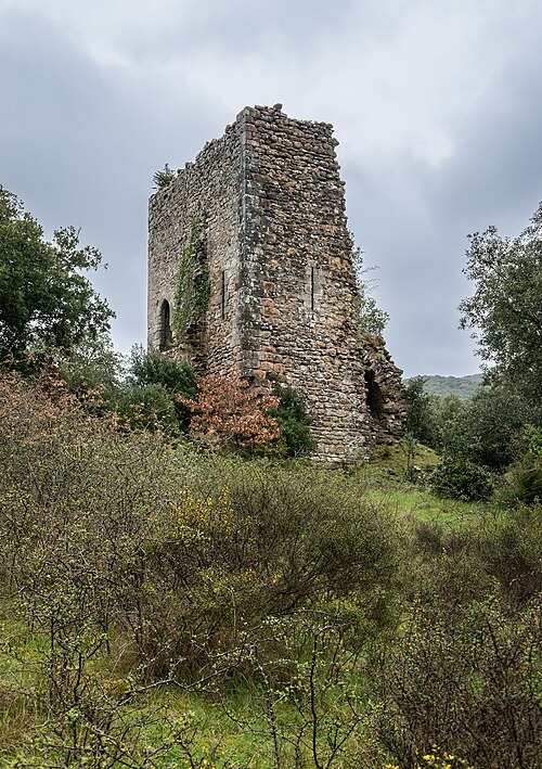 L'ancien château de Clermont-sur-Lauquet est situé dans la commune éponyme, dans l'Aude (France). Le "castrum" est mentionné en 1110 ; ce fort aurait été détruit au XIIIe siècle et il n'en subsisterait que le donjon. La tour, de plan barlong, conserve une porte basse à la base de sa paroi nord qui donne accès à une salle basse voûtée en berceau. La salle établie au‑dessus de cette voûte ne semble pas avoir été voûtée ; à sa hauteur s'ouvrent deux longues archères dont la partie basse présente un petit ébrasement triangulaire, habituel dans la seconde moitié du XIIe siècle. La paroi orientale a été ajourée par une fenêtre dont le linteau est sculpté de manière à simuler une arcature trilobée. La tour est restée à peu près intacte jusqu'à la fin du XIXe siècle, époque à laquelle elle a commencé à être démolie pour une raison inconnue. L'édifice a été inscrit au titre des monuments historiques en 1948.