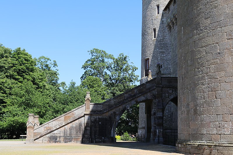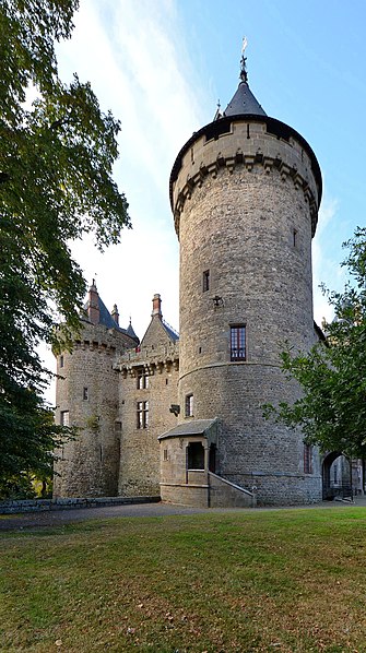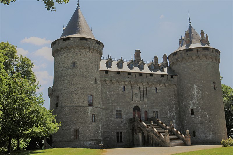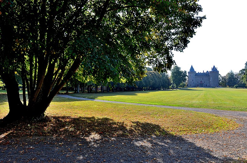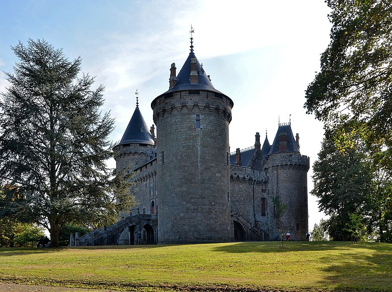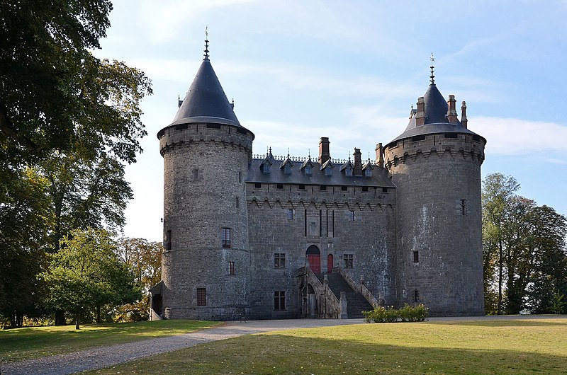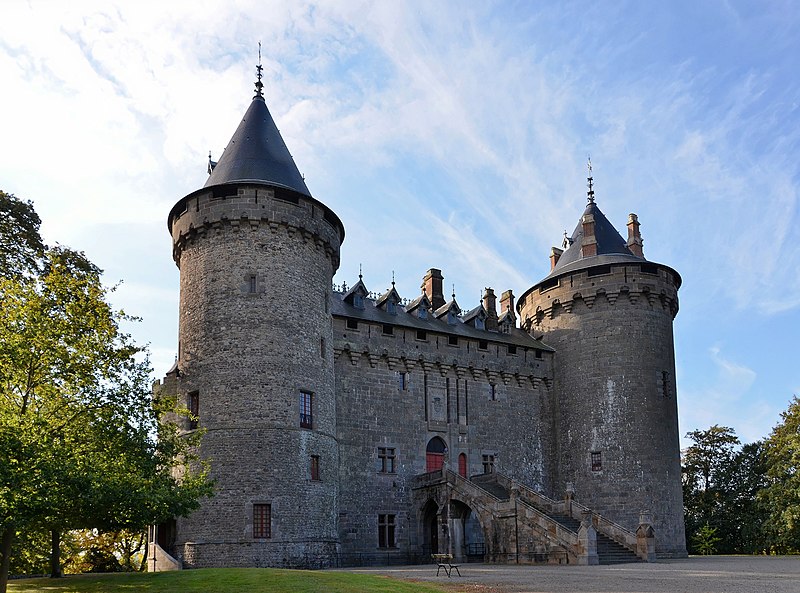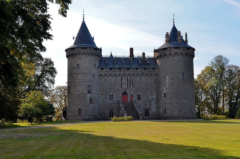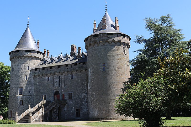 Le château de Combourg est une forteresse située à Combourg, en Ille‑et‑Vilaine, dominant un étang que François‑René de Chateaubriand qualifia de « Lac Tranquille ». Classé partiellement au titre des monuments historiques (façades et toitures, salle des gardes et vestibule depuis août 1966) et inscrit dans son ensemble depuis décembre 1926, il occupe un escarpement au nord‑ouest de l'étang, à mi‑distance de Rennes et de Saint‑Malo. Les origines du site remontent au début du XIe siècle : l'archevêque de Dol Guiguené fit édifier un premier château pour son frère Rivallon, premier seigneur de Combourg. Au fil des siècles la seigneurie passa entre diverses familles et la majeure partie des bâtiments actuelle date des XIVe et XVe siècles, la tour dite du Croisé ou donjon étant pour sa part datée de la première moitié du XIIIe siècle. Le corps de logis forme un quadrilatère de puissants bâtiments en granite appareillé, munis de créneaux et de mâchicoulis, et cantonné à ses angles de tours rondes à toitures coniques ; une cour rectangulaire s'ouvre au centre. Les mâchicoulis de la courtine nord et de la tour nord‑ouest présentent des encorbellements à quatre ressauts, ceux de la tour nord‑est en ont trois et supportent des linteaux ornés de trilobes simulés inscrits dans des arcatures brisées. L'intérieur a été largement réaménagé au XIXe siècle : la grande salle des gardes a été transformée en salons, une chapelle subsiste à l'entrée du vestibule d'honneur et un escalier monumental en bois a été créé lors des travaux. Après une longue période d'abandon et des dommages subis pendant la Révolution, la famille de Chateaubriand acquit le château en 1761 ; René‑Auguste de Chateaubriand y établit sa famille et son fils François‑René y passa une partie de sa jeunesse. Confisqué et pillé à la fin du XVIIIe siècle puis restitué en 1796 à Louis Geoffroy, le domaine demeura en quasi‑désert pendant près d'un siècle avant d'être restauré dans la seconde moitié du XIXe siècle par Geoffroy de Chateaubriand. Geoffroy confia les opérations à l'architecte Ernest Trihle, élève de Viollet‑le‑Duc, qui transforma l'édifice dans un esprit troubadour, fit créer un grand escalier et confia l'aménagement du parc aux frères Bühler. Ces interventions modifièrent certaines dispositions anciennes, remplacèrent la chapelle de la tour dite du Maure, la salle des gardes et la cour intérieure par des pièces de réception et une cour ornée de pierre blanche de style Renaissance. Malgré la disparition du fossé et du pont‑levis au profit d'un grand perron au nord, la disposition générale des bâtiments conserve l'organisation du XVe siècle, avec un plan polygonal cantonné de quatre tours. Le domaine est resté dans la famille par descendance et appartient aujourd'hui à des membres de la branche de La Tour du Pin Verclause. Le château fut utilisé comme hôpital militaire au cours de la Première Guerre mondiale, transformant des salons et la chapelle en salles pour blessés, comme l'atteste un témoignage de 1915. Les visiteurs illustres et les écrivains ont contribué à la renommée du lieu : Chateaubriand y a laissé des récits et souvenirs, et De Gaulle le visita en 1949. Le site et son parc présentent de nombreux éléments remarquables — blason des Chateaubriand, tours (Tour Sybil, Tour du Croisé, Tour du Maure), girouette, lac, calèches et arbres d'alignement — et conservent des objets et vestiges exposés sur place. Une découverte effectuée lors des restaurations, un chat momifié emmuré au XVIe siècle, est visible sous vitrine dans la chambre où Chateaubriand a séjourné enfant et a alimenté la légende locale du « chat fantôme ». Chateaubriand rapporte aussi des récits de fantômes et décrit la « chambre rouge », tandis que la tradition évoque la présence d'un seigneur à jambe de bois associé aux escaliers du château. Le monument a servi de décor pour le cinéma et la télévision, notamment pour Combourg, visage de pierre (1948), Culture drone, le château de Combourg (2013) et le téléfilm Sur la dalle (2024). Des études et inventaires patrimoniaux documentent l'histoire et l'architecture du site.