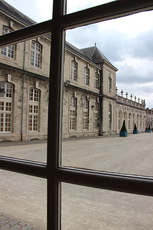 Le château de Commercy, situé sur une éminence dominant la Meuse, occupe l'emplacement d'un ancien château fort du XIIIe siècle. Partiellement reconstruit au XVe siècle pour Robert II, seigneur de Commercy, il conserve des soubassements médiévaux réemployés lors d'une transformation au début du XVIIe siècle par le cardinal de Retz, qui en fit sa résidence. En 1708, le comte Charles-Henri de Lorraine-Vaudémont acquit la principauté et fit élever, sur les vestiges médiévaux, un vaste château de style baroque réalisé par l'architecte Nicolas d'Orbay; les plans furent dressés par le bénédictin Léopold Durand, inspiré par Germain Boffrand, en préservant les bases des tours rondes anciennes. Le domaine passa ensuite à Léopold Ier puis à son fils François III ; après la concession de la Lorraine et du Barrois à Stanislas Leszczynski, la duchesse douairière Élisabeth-Charlotte d'Orléans administra la principauté et fit du château sa résidence jusqu'à sa mort en 1744. À la mort d'Élisabeth-Charlotte, le château revint à Stanislas, qui en fit une de ses résidences favorites et y reçut une cour plus détendue que celle de Lunéville ; Voltaire, la marquise du Châtelet et Jean‑François de Saint‑Lambert y séjournèrent, et la tradition attribue à Madeleine Paulmier, en 1755, l'origine du gâteau qui porte le nom de la madeleine de Commercy. Stanislas fit aménager des annexes comme le « château d'eau » au bord de la Meuse et la « fontaine royale » en forêt, mais à sa mort en 1766 la Lorraine et le Barrois furent annexés au royaume de France et le roi Louis XV ordonna l'abandon du château ; ses abords furent transformés en quartier de cavalerie de 1767 à 1927, les jardins et leurs fabriques disparurent et certaines dépendances furent détruites ou incendiées. Au XIXe siècle, le site fut encore coupé de ses anciens parterres par la construction du canal de la Marne au Rhin et de la ligne de chemin de fer Paris–Strasbourg, et il conserva des vestiges décoratifs le long de la Meuse. Inscrit aux monuments historiques en 1926, le château servit de caserne et d'intendance pendant la Seconde Guerre mondiale et fut gravement endommagé par un incendie le 31 août 1944. La commune de Commercy acheta les ruines à l'État en 1957 pour en assurer la restauration ; diverses parties furent classées monument historique en 1960 et les communs en 1972, et les travaux furent achevés en 1977. Restaurées, les façades côté ville encadrent aujourd'hui une place en forme de fer à cheval et le château abrite les services de la mairie, la bibliothèque municipale et diverses administrations. La cour d'honneur, fermée par une grille monumentale, est bordée par des communs bas disposés en hémicycle donnant sur la place du « Fer à Cheval » ; de grandes arcades, des terrasses à balustrades et des pots à feu animent cet ensemble transformé sous Stanislas par l'architecte Emmanuel Héré. En prolongement des communs, les deux ailes en retour d'équerre et le corps de logis principal, percés de fenêtres rectangulaires sur deux étages, encadrent un avant-corps central à quatre colonnes surmonté d'un fronton triangulaire. À l'arrière, la façade du corps de logis repose sur un fort soubassement en terrasse pour compenser la pente du terrain et s'ouvre par un escalier monumental à rampes multiples qui domine la Meuse en contrebas. Les propriétaires successifs vont du cardinal de Retz à Charles‑Henri de Lorraine‑Vaudémont, aux ducs de Lorraine, à Élisabeth‑Charlotte d'Orléans, à Stanislas Leszczynski, puis à l'État français jusqu'en 1957, date à laquelle la commune devient propriétaire. Parmi les personnalités liées au château figurent Françoise de Graffigny, qui visita Commercy en 1738 et en décrivit la vie dans ses lettres, ainsi que Voltaire, la marquise du Châtelet, Jean‑François de Saint‑Lambert et Madeleine Paulmier.