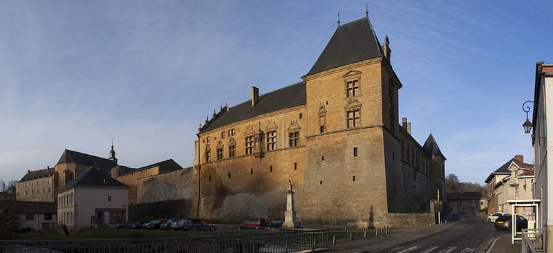 Bâti sur un promontoire rocheux, le château conserve des fondations et des assises médiévales massives, notamment aux façades nord et est ; l’ensemble a été rebâti en pierre de Jaumont à la Renaissance et se caractérise par des élévations percées de larges fenêtres ornées, surmontées de hauts toits d’ardoise. L’intérieur présente des éléments de la même période et des XVIIe–XVIIIe siècles : plafonds à caissons, cheminées monumentales — dont celle de la grande salle d’honneur décorée de bas-reliefs représentant Pyrame et Thisbé attribués aux aménagements de Martin de Custine — ainsi qu’une cour d’honneur classique en U avec bâtiments de plain-pied et fronton central armorié. Les transformations successives tiennent aux conflits qui ont affecté la région (guerres médiévales, guerre de Trente Ans et les deux guerres mondiales, qui endommagèrent notamment les écuries).
