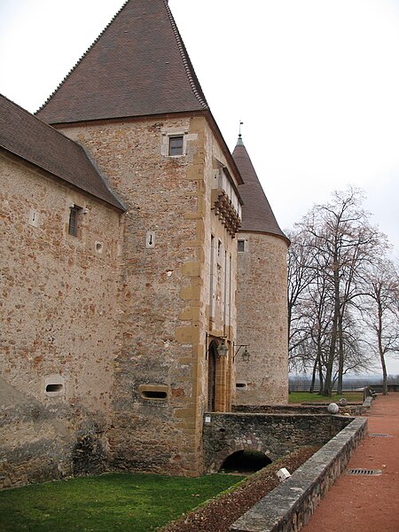 L’édifice primitif du XIe siècle a été adapté au fil des siècles : au XVe siècle il fut reconstruit pour la défense et la surveillance des environs, puis au XVIe siècle transformé en gentilhommière. La maison forte présentait une enceinte quadrangulaire flanquée de tours rondes aux angles ; l’accès se faisait par une tour‑porte carrée à mâchicoulis, qui servait de tour maîtresse et était précédée d’un pont‑levis double à flèches et à chaînes jeté au‑dessus des fossés. Au premier étage de la tour‑porte se trouve une chapelle castrale de style gothique, éclairée par des fenêtres ayant conservé des fragments de vitraux de la Renaissance, et le portail est surmonté des armoiries de la famille de La Magdeleine‑Ragny. L’intérieur comprend une cour bordée d’une galerie de circulation de style Renaissance qui relie à l’abri deux logis ; on y trouve un puits ouvragé, des cuisines, des oubliettes, des caves voûtées en plein cintre et un grand cuvier du XVIIe siècle contenant vingt‑trois foudres de chêne. L’un des corps de logis, appuyé contre une courtine, est desservi par un escalier à vis logé dans une tourelle polygonale. Le parc, d’un peu plus de 3,5 hectares et entouré de vignes, comprend des jardins à la française et des arbres centenaires qui contribuent au caractère du site. Propriété privée ouverte à la visite, le château présente notamment un donjon côté sud, une tour hexagonale, une cour intérieure côté ouest, le puits, ainsi que les vestiges de l’ancien pont‑levis et des douves.