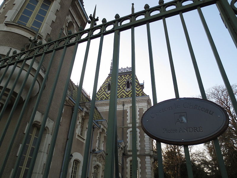 Le Château Corton C., anciennement château de Corton-André ou « château jaune », se situe à Aloxe-Corton, sur la route des Grands Crus de la côte de Beaune, dans le vignoble de Bourgogne. L'édifice actuel résulte de la transformation, réalisée entre 1895 et 1900, d'une maison du XVIIIe siècle pour en faire l'image de marque de l'activité viticole des propriétaires. De la maison du XVIIIe siècle ne subsiste que le mur pignon donnant sur la rue, auquel furent ajoutés une tourelle et une échauguette. Construit à la fin du XIXe siècle sur des caveaux du XVe siècle au pied de la colline de Corton, le château occupe le cœur d'un domaine de 150 hectares plantés de grands crus Corton (rouge) et Corton-Charlemagne (blanc), répartis sur les communes de Ladoix-Serrigny, Aloxe-Corton et Pernand-Vergelesses. Au VIIIe siècle, l'empereur Charlemagne possédait sur la colline de Corton une vigne d'environ 70 ouvrées (environ 3,5 hectares) qu'il fit don en 775 aux chanoines de la basilique Saint-Andoche de Saulieu ; cette vigne est à l'origine de l'appellation Corton-Charlemagne. Le domaine a été acquis par Pierre André au début du XXe siècle (les dates indiquées sont 1923 et 1927) ; il y développa une activité viticole et contribua à renouveler les méthodes de commercialisation des vins de Bourgogne, participant également à la création de la compagnie du Tastevin. Les descendants de Pierre André ont vendu le château et le domaine au groupe Ballande en 2002, puis la famille Frey a repris la propriété en 2015 et l'a renommée Château Corton C. Architectoniquement, le château se distingue par une toiture à longs pans en tuiles vernissées de Bourgogne et s'ouvre sur une grille ouvragée en fer forgé. Le corps principal est flanqué à l'ouest d'un pavillon rectangulaire en saillie et à l'est d'une tourelle munie d'une échauguette en encorbellement ; le bâtiment présente un rez-de-chaussée surélevé et un étage supplémentaire. Le pavillon ouest comprend une cave semi-enterrée, un rez-de-chaussée et trois niveaux supérieurs dont des combles, et la façade d'entrée est desservie par un escalier encadré de balustrades en pierre menant à une terrasse. Les bâtiments des communs reprennent la toiture en tuiles vernissées et abritent un sous-sol, un rez-de-chaussée et deux étages ; leurs portes charretières sont plein cintre à deux vantaux, et des escaliers en équerre conduisent au premier étage à un palier protégé par un auvent, sous lequel une porte donne accès au sous-sol. Les façades et toitures du château ainsi que les grilles entourant le parc sont inscrites aux monuments historiques par arrêté du 21 avril 2017. Le domaine viticole est spécialisé dans les vins de Bourgogne et propose environ quatre-vingt-dix appellations réparties en Côte-de-Beaune, Côte-de-Nuits, Mâconnais, Chablis et Beaujolais, parmi lesquelles figurent Aloxe-Corton, Corton, Corton-Charlemagne, Clos-Vougeot, Vosne-Romanée, Meursault, Ladoix et Savigny-lès-Beaune.