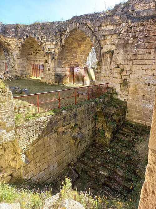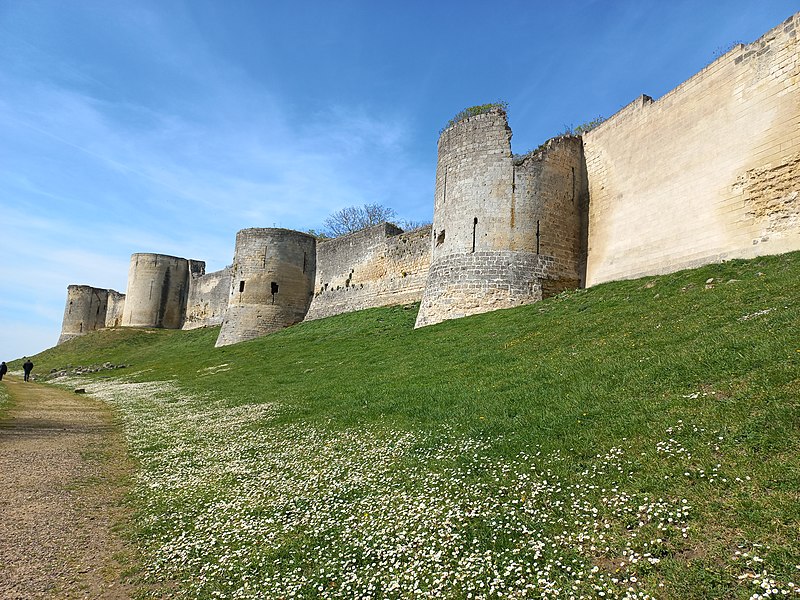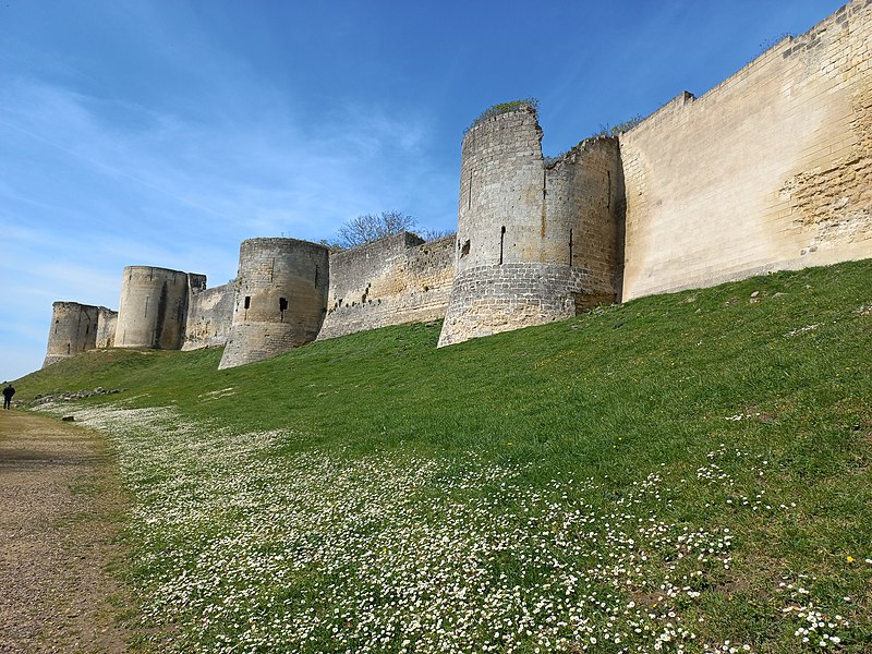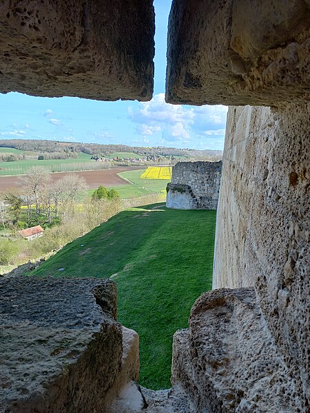 Le château de Coucy est un ancien château fort et résidence seigneuriale élevé à partir du XIIIe siècle ; ses ruines se dressent sur la commune de Coucy-le-Château-Auffrique, dans l'Aisne (Hauts-de-France). Les vestiges font l'objet d'un classement au titre des monuments historiques depuis la liste de 1862. Un premier château est mentionné dès le Xe siècle et la chapelle de la basse-cour remonte au XIIe siècle. Entre 1225 et 1250, Enguerrand III ordonne la construction du gros œuvre du château dont les ruines forment encore l'armature principale du monument. Viollet-le-Duc comparera plus tard le donjon de Coucy aux plus grosses tours connues, soulignant son caractère exceptionnel. À la fin du XIVe siècle, sous Enguerrand VII, l'édifice est restructuré et enrichi pour mieux répondre au confort princier, avec l'aménagement de vastes salles et d'un palais de style gothique. Entre 1400 et 1407, Louis d'Orléans fait réaménager le château, sous la direction de l'architecte Jean Aubelet, et les cuisines ducales sont construites au début du XVe siècle contre la courtine de la basse-cour. François Ier apporte à son tour des aménagements en 1532. Pendant la Fronde, des mines royales endommagent fortement le château en 1653, puis la forteresse sert de carrière après la Révolution. Un tremblement de terre fissure le donjon en 1692. Au XIXe siècle, le site passe entre des mains privées puis à l'État ; des travaux de consolidation sont entrepris, dont des interventions de Viollet-le-Duc destinées à sécuriser les visites. Occupée par les armées allemandes pendant la Première Guerre mondiale, la forteresse est gravement détruite lors du repli allemand et le donjon, en particulier, est dynamité le 27 mars 1917 ; les charges placées dans le donjon et les tours causent la ruine de ces élévations et la dispersion d'un important volume de pierres cerclées de barres métalliques. Aujourd'hui les ruines font l'objet de restaurations et de fouilles archéologiques, qui ont notamment mis au jour, entre 2018 et 2020, les cuisines ducales du début du XVe siècle ; le site est ouvert à la visite. Le château occupe l'extrémité d'un éperon calcaire dominant les vallées de l'Oise et de l'Ailette, séparé du bourg par un fossé d'environ 50 mètres de large. Bâti au début du XIIIe siècle, il comprenait trois enceintes successives : une vaste enceinte urbaine, la basse-cour et, en bout d'éperon, l'enceinte castrale dominée par le donjon ; l'ensemble couvrait quelque quatorze hectares. Après la porte de maître Odon, la basse-cour s'offre au visiteur, flanquée de tours rondes et traversée par la chapelle placée en travers du chemin entre ville et château. Le château proprement dit forme un trapèze irrégulier flanqué de quatre tours circulaires aux angles ; ces tours, d'environ 20 mètres de diamètre avec des murs de 5 mètres d'épaisseur et plus de 40 mètres de hauteur, comportaient chacune trois étages voûtés sur sous-sol, des archères et des hourds, et étaient équipées de cheminées et de latrines. Elles étaient reliées par une courtine presque aussi haute qu'elles, épaisse d'environ 3 mètres et étayée intérieurement par des contreforts liés par des arcs en tiers-point ; les logis s'appuyaient sur cette courtine autour d'une cour intérieure. Le donjon cylindrique, placé en saillie du côté de l'attaque, mesurait 31,25 mètres de diamètre, présentait un mur de base de 3,45 mètres d'épaisseur et s'élevait à 54 mètres de haut ; il était isolé par un profond fossé et accessible par un pont-levis, ce qui en faisait, jusqu'en 1917, l'un des plus imposants d'Occident. La salle des Preux, longue de 60 mètres sur 15, fut couverte sous Enguerrand III puis enrichie par Enguerrand VII ; elle doit son nom aux neuf statues de Preux qui l'ornaient et représentaient des figures bibliques et historiques telles que David, Judas Macchabée, Josué, César, Alexandre, Hector, Charlemagne, le roi Arthur et Godefroi de Bouillon. Le site comprenait également plusieurs tours (Jacquet, de l'Avoine, de l'Ouest, de l'Artillerie), le logis seigneurial, la chapelle seigneuriale, les cuisines, les caves et un puits profond de 64,50 mètres. Une promenade aménagée le long des remparts permet d'apprécier l'architecture et la topographie du lieu ; le site accueille par ailleurs animations médiévales, spectacles et chantiers de bénévoles consacrés à la taille de pierre, à la maçonnerie traditionnelle, à la forge et à la sculpture.