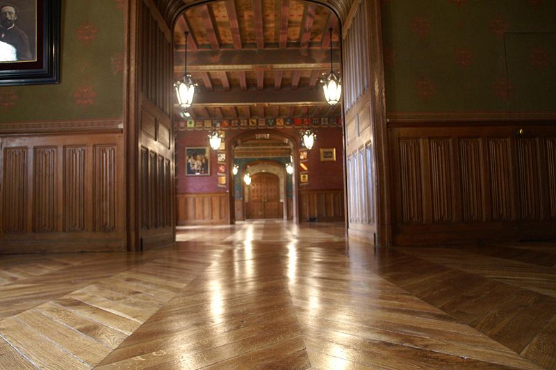 Le parc, d’environ 68 hectares, offre des chemins de randonnée pédestre et cycliste à travers bois, un plan d’eau, des aires de jeux et de pique‑nique ; le parc à l’anglaise fait face au grand château tandis que la cour intérieure abrite un jardin à la française, et l’ensemble est accessible gratuitement toute l’année. Le château est ouvert aux visites d’avril à septembre ; en été, les communs accueillent un festival d’arts plastiques et le site propose diverses manifestations et spectacles saisonniers. Des photographies montrent l’allée d’accès, des vues extérieures et intérieures (salle des gardes, grand hall, cuisines), le jardin intérieur, des perspectives depuis le ruisseau et des scènes saisonnières.