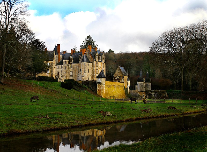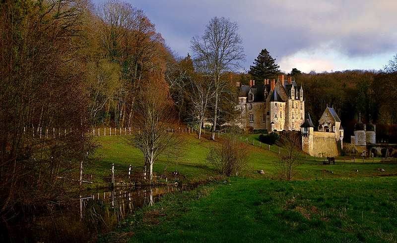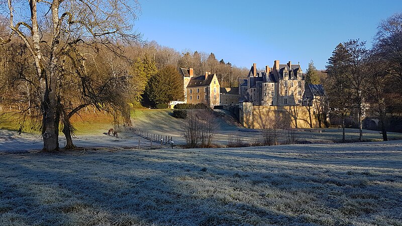 Sur le plan des protections, le portail d’entrée et ses deux tours ont été classés le 5 janvier 1948, l’ensemble du site a été classé le 25 juillet 1975, et d’autres parties ont été inscrites au titre des monuments historiques le 11 juin 1980. Le grand château, édifié à la fin du XVe siècle, illustre la fin du gothique et conserve des vestiges du manoir médiéval, tels que des ouvertures pour le pont-levis, des douves sèches, des échauguettes et des mâchicoulis. La façade présente des fenêtres à meneaux et des décors néogothiques issus des restaurations du XIXe siècle. L’accès se fait par une porte Renaissance de 1582, flanquée de deux tourelles rondes sculptées et surmontées de dômes à lanternons ; la poterne est considérée comme un bel exemple régional. La chapelle castrale, dédiée à Notre‑Dame‑de‑Lorette et fondée en 1454, comporte un portail néogothique ; le domaine comprend aussi un colombier du XVe siècle, une orangerie et des écuries du XIXe siècle, ainsi qu’un parc à l’anglaise. Le portail dit des Lions (1874), en calcaire et fer forgé, se situe à un kilomètre du château. L’intérieur, restauré au XIXe siècle, conserve des éléments comme des portes à galandage et des croisées d’ogives en Y.