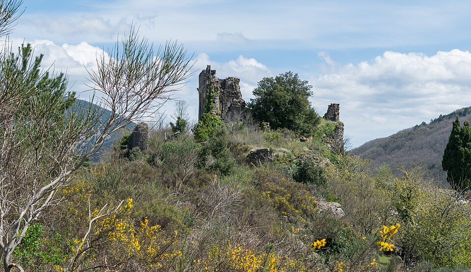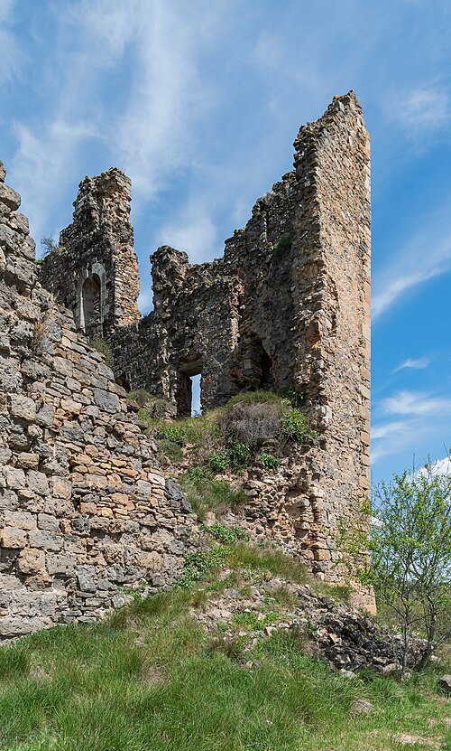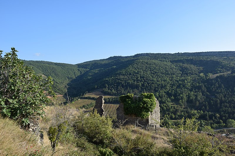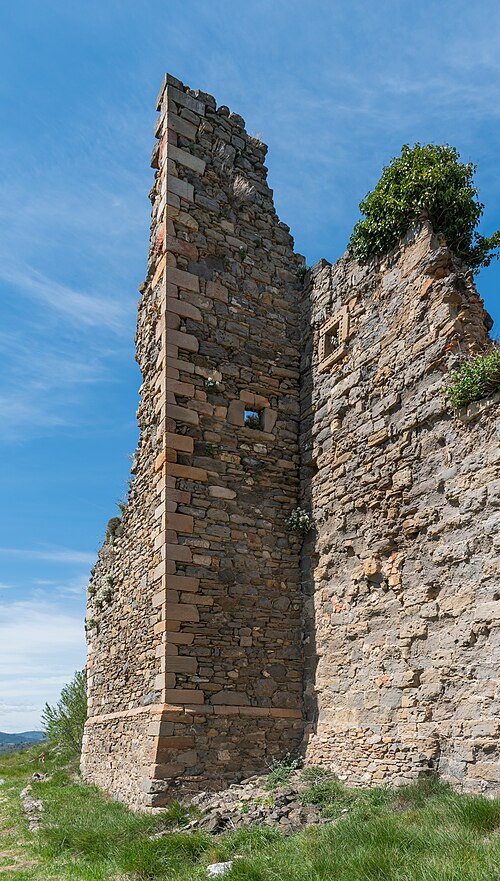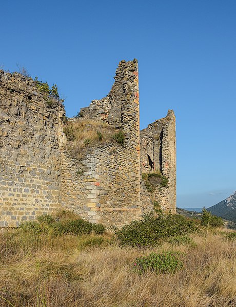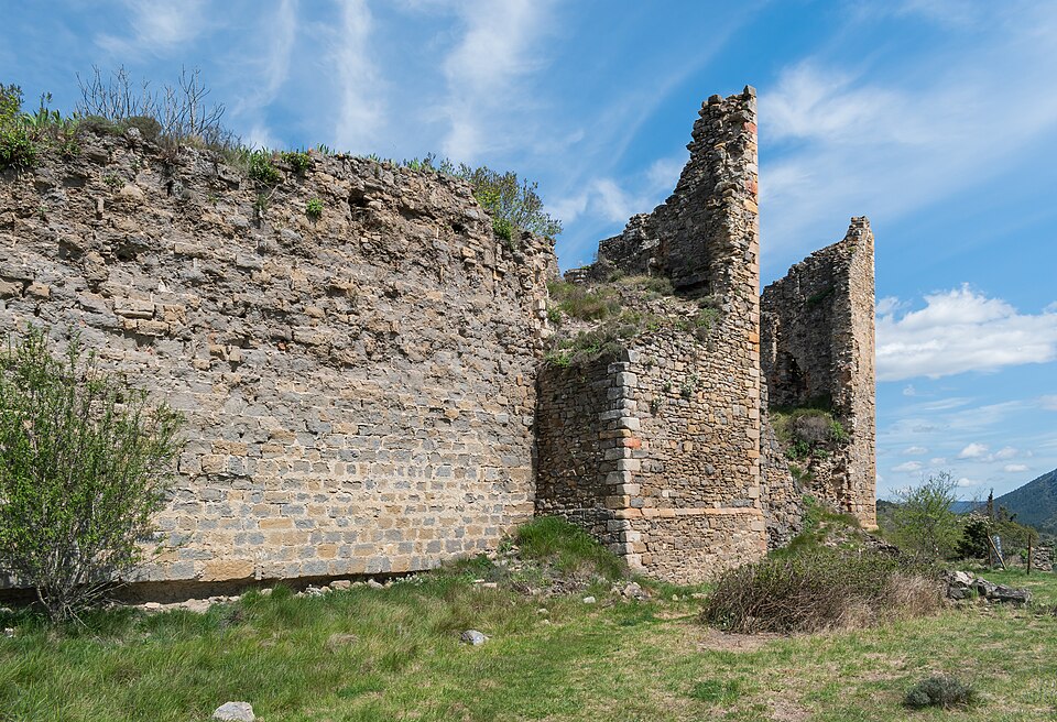 Le château, aujourd'hui en ruines, se dresse sur la commune de Coustaussa (Aude, Occitanie). Le site est occupé depuis 730, originellement par des Wisigoths. Dès le XIe siècle, un village médiéval nommé Villam quae vocatur Constantium est cité. En 1157, Raymond Ier Trencavel y fait établir un castrum pour défendre la vallée de la Sals, placé sous le commandement de Pierre de Villar. En 1170, Alphonse II d'Aragon s'empare de Coustaussa. En 1210, pendant la croisade des Albigeois, les croisés de Simon de Montfort prennent le château, rallié à la cause cathare, et la majorité des habitants quitte le village. Les occupants auraient quitté le château par un souterrain menant à proximité du château de Blanchefort. Un an plus tard, alors que Simon de Montfort est assiégé à Castelnaudary, le seigneur de Coustaussa se soulève ; après la victoire du chef croisé, Montfort revient, massacre les habitants, endommage fortement le château et incendie le village castral. Le seigneur est alors spolié et le domaine est offert à la famille de Montesquieu de Sault, alliée des croisés. Par don du sénéchal de Carcassonne, le château passe ensuite à Pierre de Voisins. Au XVIe siècle, l'ensemble est remanié et transformé en une demeure de style Renaissance. Après la Révolution, il est acquis par un marchand de biens en 1803 ; ses charpentes sont retirées en 1819, puis le bâtiment subit une destruction progressive liée à la récupération des matériaux. Privé de ses charpentes, il manque la plupart des encadrements taillés proches du sol et tous les murs faciles à démolir ont été abattus. La double enceinte fortifiée possédait deux accès : au nord par une poterne, au sud par un passage voûté suivi d'une porte dont les montants appareillés subsistent partiellement. De vastes lices permettaient l'approche de l'enceinte ; l'accès au bâtiment central se faisait en parcourant ces lices et par une porte placée à plusieurs mètres du sol. Cette disposition primitive a été complétée par la construction d'une tour dont les deux étages voûtés subsistent encore. Deux autres tours carrées, élevées postérieurement vers le milieu de la longueur du réduit, participent au flanquement, complétées à l'ouest par une tour ruinée et à l'est par une échauguette circulaire contemporaine de la construction primitive. Le bâtiment central servait à la fois de donjon et de logis seigneurial. Le côté nord, dominant les lices, a été renforcé vers la fin du XIIIe siècle par une tour carrée dont le réduit voûté forme la base. Le château de Coustaussa a été inscrit au titre des monuments historiques par arrêté du 10 avril 1948. Un projet de sauvegarde est entrepris par l'actuel propriétaire en vue de sauver les ruines, et le site est visitable.