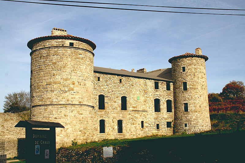Le château de Craux se situe sur la commune de Genestelle, dans la Cévenne ardéchoise (canton d'Antraigues‑sur‑Volane), dans le département de l'Ardèche, région Auvergne‑Rhône‑Alpes. Il s'élève à 650 mètres d'altitude sur l'ancien volcan de Craux, dominant les vallées de la Volane et du Sandron. Entouré de vastes prairies et d'une châtaigneraie, il offre un panorama sur la Cévenne ardéchoise et le pays des jeunes volcans. Construit au XIIe siècle comme relais de chasse pour la famille d'Ucel, co‑seigneurs d'Antraigues, il a été profondément remanié par ses propriétaires successifs. Au XVIIIe siècle, il passa aux Sauzet de Fabrias. Après le décès d'Anne Rosalie Ernestine Madeleine de Sauzet de Fabrias, dernière occupante en 1944, le château fut abandonné et se détériora rapidement. La commune de Genestelle l'acquit en 1994. Depuis 2002, d'importants travaux ont été engagés pour consolider le logis et sa charpente, protégée par un toit provisoire en acier ; les tours ont reçu une nouvelle toiture et, en 2011, les travaux se poursuivaient. Le château a servi de décor en 1974 pour le film Le secret de Robert Enrico, avec Jean‑Louis Trintignant, Philippe Noiret et Marlène Jobert. Des références et ressources sont accessibles, notamment la base Mérimée et des portails consacrés aux châteaux de France, à l'Ardèche et aux monuments historiques.