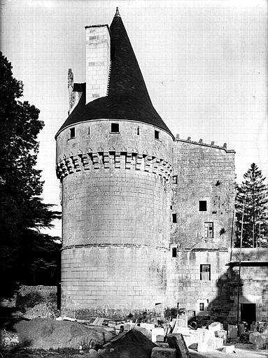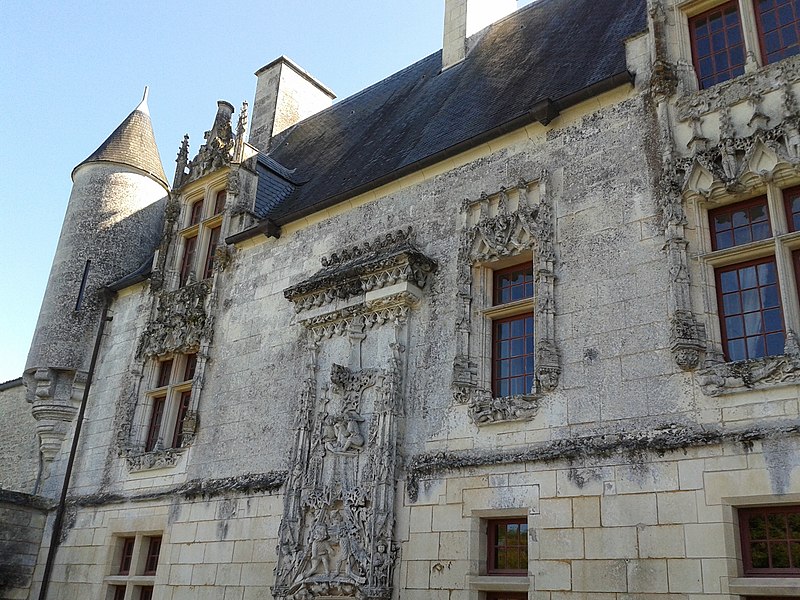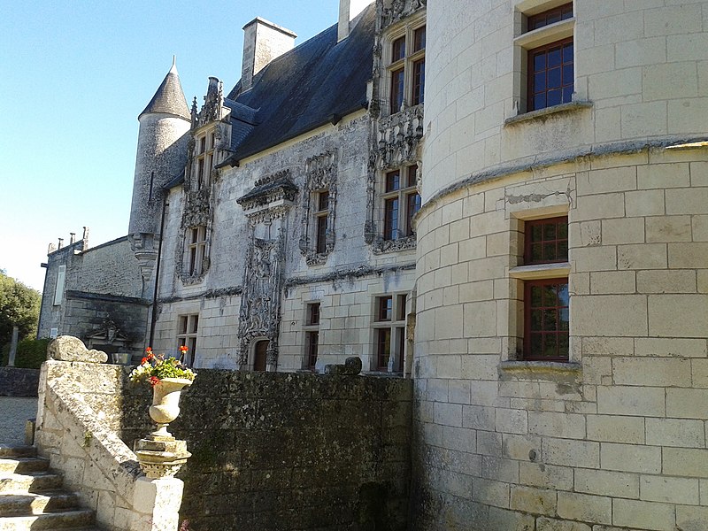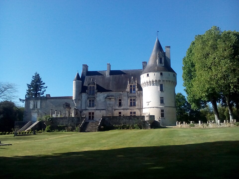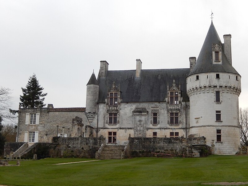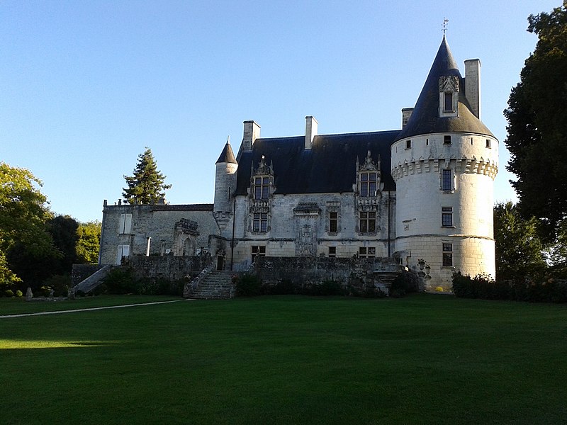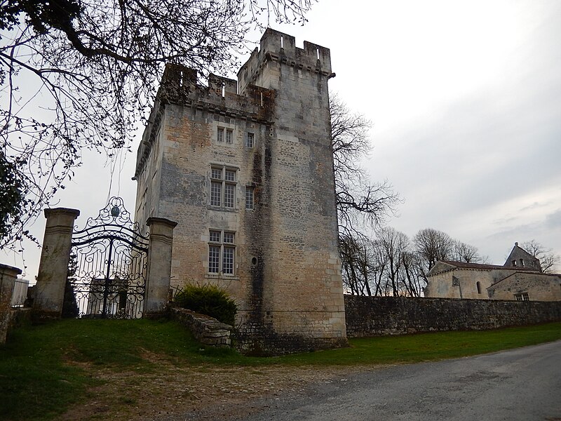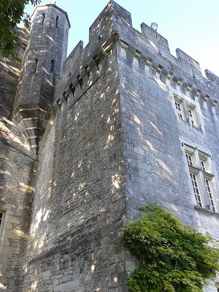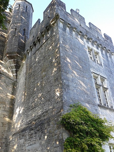 Le château de Crazannes, classé monument historique en 1913, occupe l’emplacement d’une ancienne forteresse médiévale et rassemble des éléments construits entre le XIe/XIIe et le XVIIe siècle. La construction du château proprement dit a débuté au XIVe siècle, avec des campagnes de transformation aux XVe et XVIe siècles, notamment l’ouverture de nouvelles baies dans la tour d’angle. Le donjon, antérieur au logis, est une grosse tour rectangulaire flanquée d’une petite tour carrée contenant un escalier qui se prolonge au dernier étage par une tourelle polygonale ; sa partie supérieure est modernisée. La façade nord, datée du début du XVIe siècle, présente des portes et fenêtres ornées de sculptures de pierre de style flamboyant, et une tour cylindrique dotée de mâchicoulis et coiffée d’une poivrière très pointue s’y appuie. Dans la cour se trouve l’ancienne église paroissiale, redevenue chapelle privée en 1874 ; l’édifice est d’origine romane (XIe–XIIe siècle selon les sources) et son chœur a été rebâti au XVe siècle. Le pigeonnier du parc, vraisemblablement édifié au début du XVIIe siècle, présente un plan circulaire, des lucarnes à fronton triangulaire et un nombre impressionnant de boulins répartis sur cinq niveaux ; l’échelle tournante a disparu, il n’en subsiste que la base de pierre. Propriété successivement des seigneurs de Tonnay-Charente, puis de familles telles que les Poussard, Daillon et Acarie, le site a connu de nombreuses transformations ; la famille Acarie y vécut plus de trois cents ans et y effectua des travaux d’agrandissement. Parmi les visiteurs célèbres mentionnés figurent le Prince Noir au XIVe siècle et François Ier, qui y passa une nuit en 1519, et le conte de Charles Perrault évoque le maître du château dans l’histoire du Chat Botté. Loué pendant la Révolution à Mgr Pierre‑Louis de La Rochefoucauld‑Bayers, évêque de Saintes, le château fut plus tard acquis par la famille Chaudruc, qui entreprit d’importants travaux de restauration au début du XXe siècle. Outre les éléments bâtis, le parc, planté d’arbres centenaires et longeant la Charente, a été inscrit au pré‑inventaire des jardins remarquables. Le monument bénéficie de protections complémentaires par des inscriptions en 1925, 1963 et 1988 et fait l’objet de notices d’autorité et de ressources spécialisées (Mérimée, Structurae), d’un site officiel et d’une bibliographie consultable. Le château de Crazannes est ouvert à la visite toute l’année, moyennant paiement.