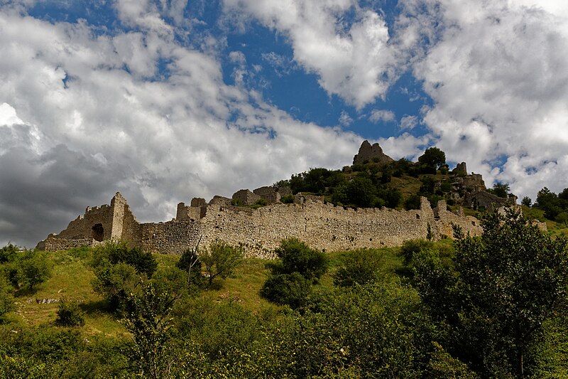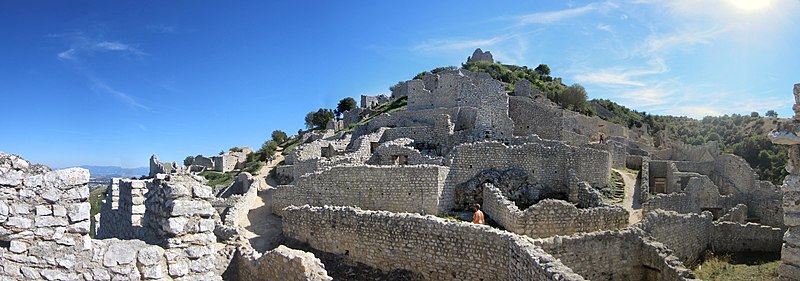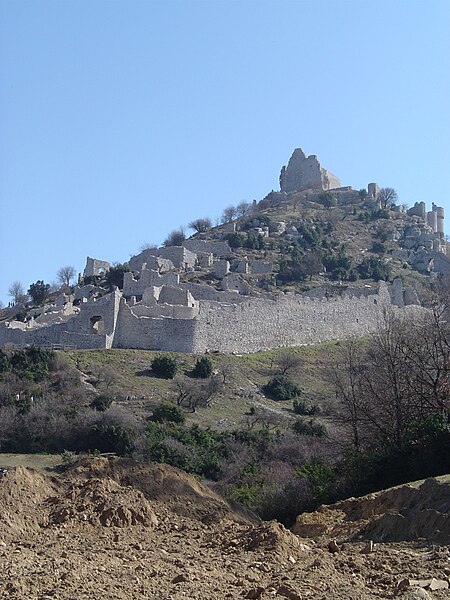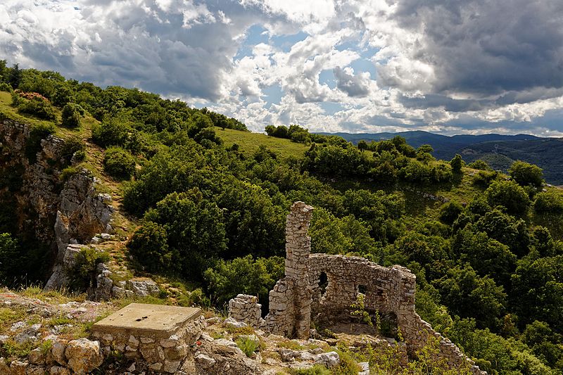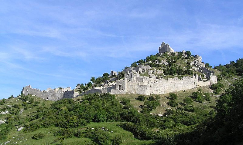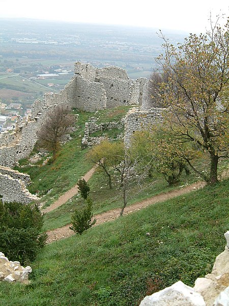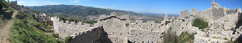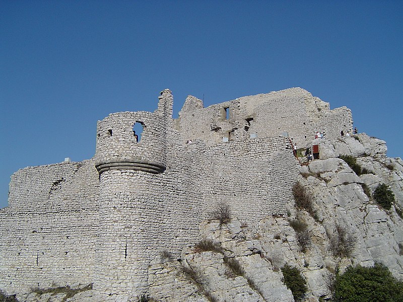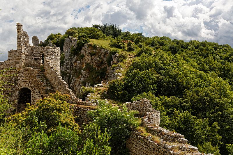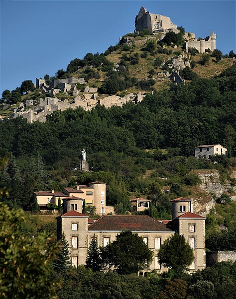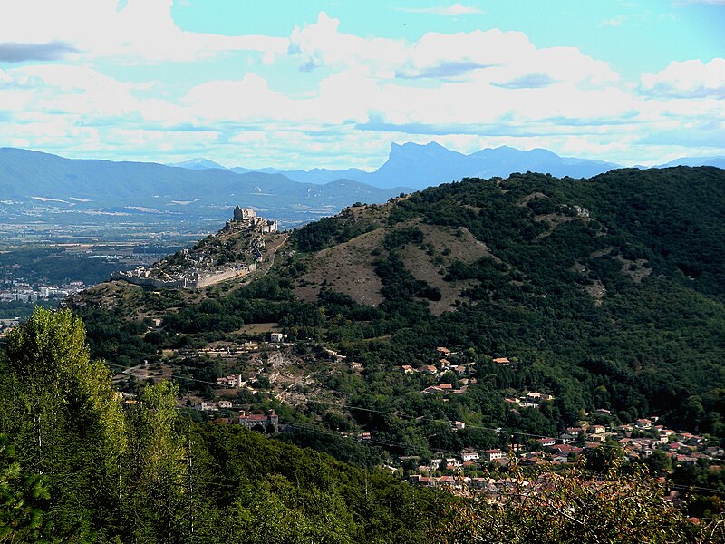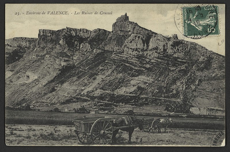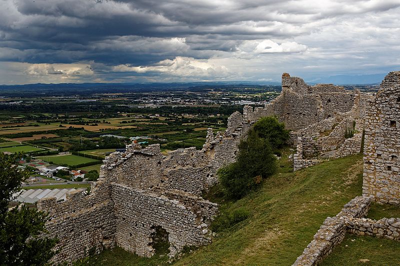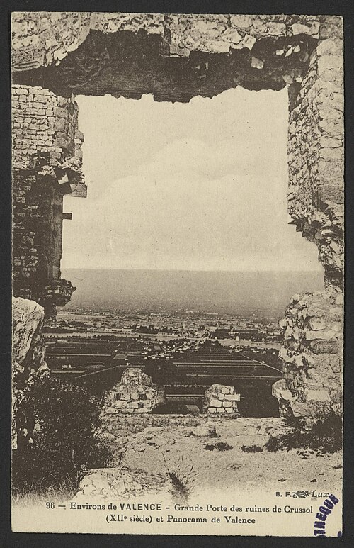 Le château de Crussol est une forteresse médiévale du début du XIIe siècle, aujourd'hui en ruines, située sur la commune de Saint-Péray en Ardèche. Perché sur la crête de la montagne de Crussol, à près de 200 mètres au‑dessus de la vallée du Rhône, il fait face à la ville de Valence et contrôlait un axe de communication fluvial ancien ainsi que le chemin de Saint‑Jacques‑de‑Compostelle. L’ensemble occupe trois hectares et comprend « la Villette », un quartier d’environ 140 maisons, ainsi que le château proprement dit au sommet, ceinturés par des remparts encore bien visibles et ponctués d’une tour sur l’arrière. Le site, érigé sur un éperon rocheux dominant la plaine rhodanienne, commandait depuis l’Antiquité une voie de passage très fréquentée. La montagne présente une végétation variée — pelouses sèches, chênaie verte, landes sur marnes, éboulis calcaires et quelques chênaies pubescentes — et des habitats remarquables, notamment des pelouses à orchidées en grande partie protégées. La biodiversité est importante : près de quarante espèces d’orchidées (orchis bouc, ophrys bourdons, orchis pyramidal, entre autres), plusieurs espèces d’oiseaux méditerranéens, ainsi que papillons, lézards et sangliers y sont recensés ; sept espèces d’oiseaux et dix‑neuf autres animaux y bénéficient d’une protection. Le massif de Crussol est classé au réseau Natura 2000, ce qui vise à concilier la protection des habitats et les activités humaines.