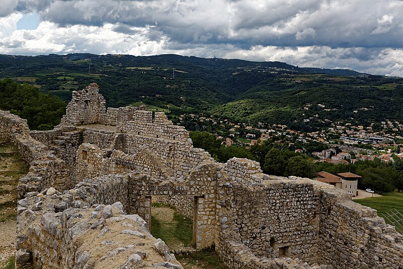 À l’origine le château comprenait un donjon et une palissade sur laquelle s’appuyait l’enceinte villageoise ; il fut reconstruit en pierre au XIIe siècle et le logis seigneurial date du XVe siècle. L’espace intra‑muros de trois hectares abritait artisans et commerçants, dont deux forgerons, répartis dans les quelque cent quarante habitations de la Villette. Depuis les remparts on domine la vallée de Saint‑Péray et l’architecture conservée permet d’observer la façade Est, la porte d’entrée et les vestiges du logis et de la tour Sud, éléments régulièrement mis en valeur pour l’accueil du public.