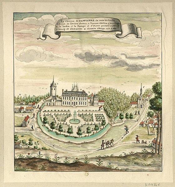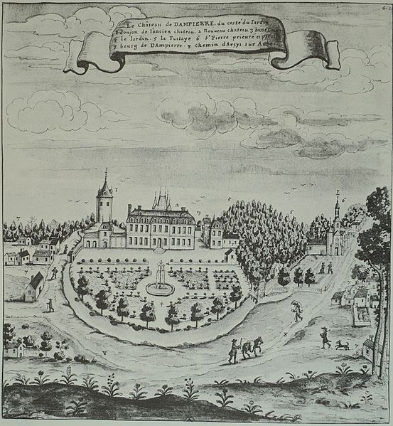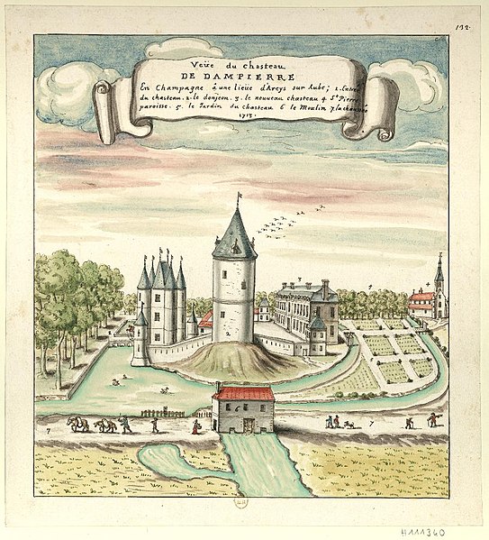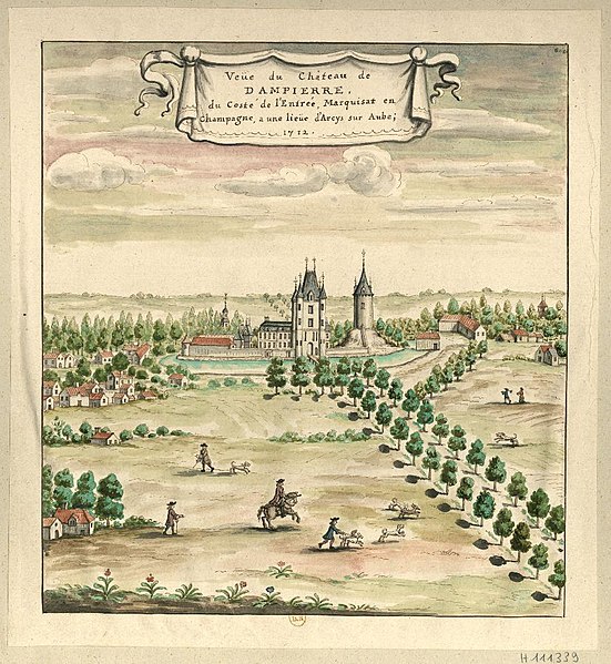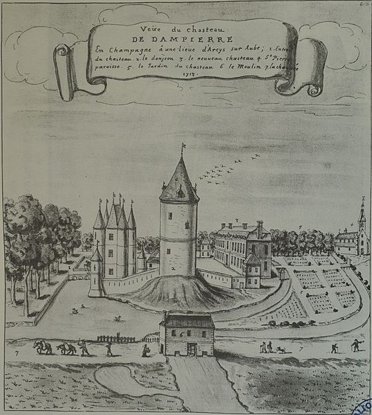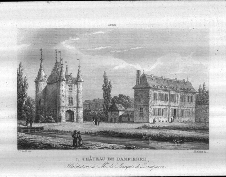 Le château de Dampierre se situe dans la commune de Dampierre, dans le département de l'Aube en région Grand Est. La seigneurie puis le domaine appartinrent successivement aux familles de Dampierre, de Châtillon-Dampierre et de Lannoy (par filiation). En 1526, la famille Picot de Dampierre acquiert le domaine ; elle reçoit le marquisat en 1645. Par mariage en 1802, Anne-Emilie Picot de Dampierre (1777-1852) unit sa lignée à Jean-Joseph Dessolles (1767-1828) ; leur fille Hélène-Charlotte-Pauline Dessolles (1803-1864) épouse en 1822 Alexandre-Jules, duc d'Estissac. En 1907, les filles héritières de Roger de la Rochefoucauld-Dampierre (1826-1889) vendent le château au vicomte Jean Beuret, qui mène d’importants travaux de restauration, d’ameublement, de décoration et d’aménagement des jardins ; ses collections sont dispersées lors d’une vente en novembre 1924. Dans les années 1930, la propriété est acquise par les Picot de Moras d’Aligny, qui la conservent jusqu’en 2021 ; le dernier transfert de propriété date de 2022. Le Puits coule derrière le château, puis se jette dans l'Aube.