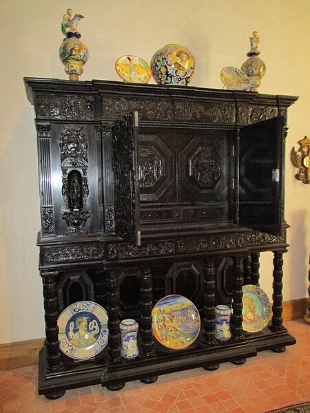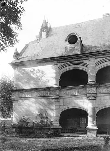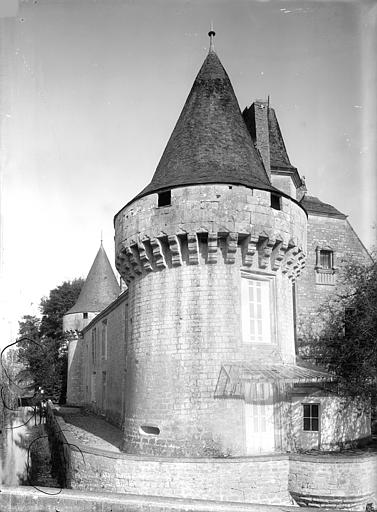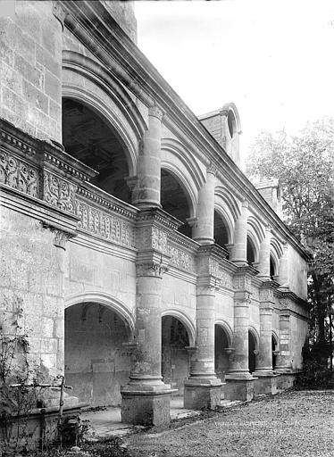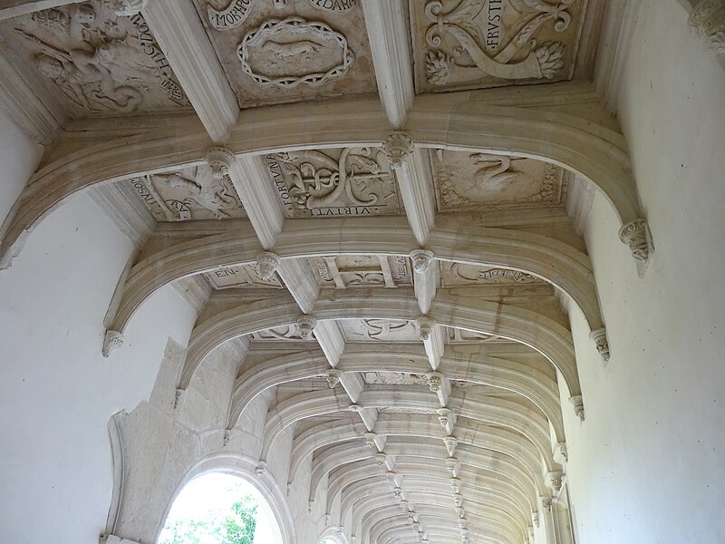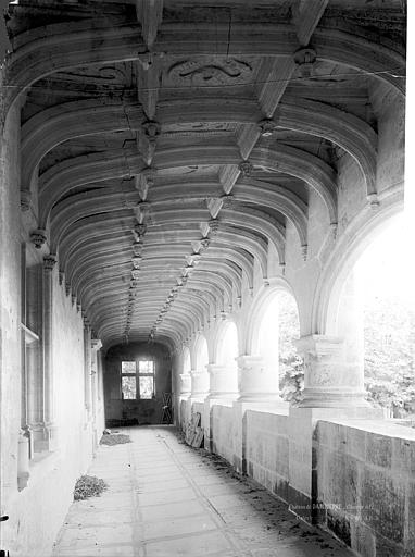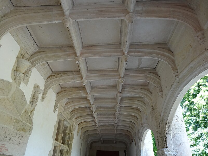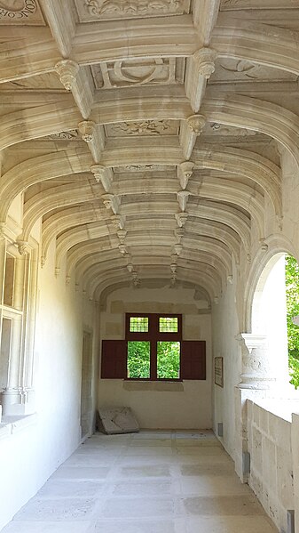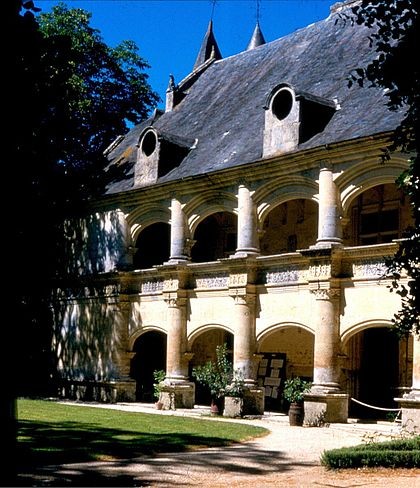 Le château de Dampierre-sur-Boutonne, implanté sur deux îlots de la Boutonne, comprend le logis principal, deux tours rondes et des communs inscrits et classés au titre des monuments historiques. L'édifice conserve une tour sud du XVe siècle ; la construction de la demeure renaissante, avec un corps de logis central et deux ailes en retour d'équerre, remonte aux travaux entrepris par la famille Clermont. Une galerie à caissons sculptés et sa partie haute ont été élevées autour de 1558 sous l'impulsion de Jeanne de Vivonne, qui orna le château d'un décor riche en emblèmes. Le plan actuel, composé d'un corps de logis rectangulaire flanqué de deux grosses tours, résulte des transformations et des démolitions intervenues aux XVIIIe et XIXe siècles ; les ailes du château ont été détruites en 1840 et 1892. Les communs, attestés dès le début du XVIIe siècle et situés dans l'angle nord de la première île, présentent un corps de logis central à pignons et lucarnes encadré de deux ailes, l'une terminée par un pavillon à toiture en croupe, l'autre rappelant un hangar ; des éléments de réemploi ont servi à leur restauration. L'histoire du site est ancienne : un castellum primitif était déjà mentionné en 995, la seigneurie passa par alliances à la maison Maingot puis, au XIVe siècle, à la maison de Clermont qui conserva Dampierre jusqu'à la fin du XVIe siècle. La forteresse fut prise aux Anglais par Du Guesclin en 1373 ; plus tard, François de Clermont fit transformer le château dans le goût italien après ses campagnes en Italie. Plusieurs événements militaires et politiques marquent son histoire : hébergement de François Ier en 1539, sièges et pillages à la fin du XVIe siècle, ventes et remaniements successifs jusqu'au rachat par David Fourré en 1599, puis par la famille Gallifet au XVIIIe siècle. À la Révolution les jardins et bassins furent bouleversés, les portes forcées et des archives brûlées ; le château fut vendu comme bien national en 1795. Des travaux importants ont encore été réalisés au XIXe siècle ; la famille Rabault-Texier-Hédelin mena au milieu du siècle des campagnes de restauration et chercha à reconstituer l'esprit des jardins insulaires à la manière de la Renaissance italienne. Classé Monument historique en 1926, le site a été restauré, décoré et ouvert au public ; il a été saccagé et partiellement incendié en 1944 puis remis en état, la galerie et ses fondations ayant fait l'objet d'une consolidation entre 1982 et 1992. Les deux îles, susceptibles de receler des vestiges archéologiques, ont été inscrites en 1990. Un incendie violent en 2002 détruisit la charpente et la couverture ; une grande partie du mobilier fut sauvée et des initiatives artistiques accompagnèrent la restauration, dont la création in situ de Ghislaine Escande en 2004. La galerie de l'étage, singulière, compte 93 caissons et 128 clefs pendantes ; elle s'ouvre sur la cour par cinq arcades et présente un répertoire iconographique riche — scènes mythologiques et bibliques, figures allégoriques, instruments et symboles alchimiques — souvent accompagnés de devises latines et du chiffre d'Henri II. Cet ensemble, qualifié de recueil d'emblèmes en trois dimensions, a valu au château une renommée particulière, amplifiée par l'étude que lui a consacrée l'auteur anonyme Fulcanelli. Les jardins contemporains, nommés Diktynna en référence au pseudonyme de la duchesse de Retz et à la mythologie, ont été recréés dans l'esprit de la Renaissance en reprenant et réinterprétant une partie du décor sculpté : ils regroupent parcours mythologiques et alchimiques, labyrinthes, charmilles et sculptures, ainsi qu'un second espace plus sauvage ponctué d'œuvres inspirées du cycle arthurien. Aujourd'hui, le château est ouvert à la visite ; ses intérieurs meublés, la grande charpente, des espaces d'exposition et des installations d'art contemporain y sont accessibles, et de nombreuses manifestations culturelles y sont organisées par l'association des Amis du château.
