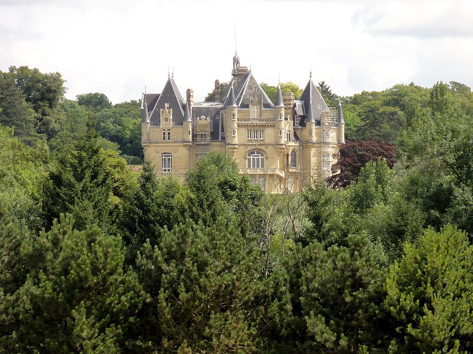 Le château de Dampont, dit aussi château du Héron, est situé à Us (Val-d'Oise) au cœur du Parc naturel régional du Vexin français. Cet édifice en pierre de taille, de style éclectique principalement néo-Renaissance avec des accents néo-gothiques, date de la fin du XIXe siècle. Il bénéficie d'une protection au titre des monuments historiques par inscription par arrêté du 24 octobre 2002. Le château se trouve route de Marines, à l'emplacement de l'ancien manoir de Dampont, et son étang est alimenté par la Viosne qui traverse le parc. La réalisation du château a été impulsée par Charles Guy de Kersaint au milieu du XIXe siècle ; il hérite des terres de Dampont par sa femme, Laure du Tremblay de Saint-Yon. La construction a été engagée au milieu du XIXe siècle : selon les sources, elle s'étend de 1852 à 1872, d'autres indiquent un début à partir de 1869. En 1908, Jacques Potin acquiert le château de Raoul de Kersaint, puis, en 1911, confie la création du parc à l'architecte paysagiste Édouard Redont. Redont transforme le parc dans un esprit paysager mixte dominant le cours de la Viosne et y installe plusieurs fabriques : une fausse ruine de chapelle, un temple de l'Amour circulaire entouré de six colonnes corinthiennes, ainsi qu'un étang, un embarcadère, des ponts, une roseraie et de nombreuses essences rares. L'édifice, attribué à l'architecte Eugène Viollet-le-Duc, s'organise autour d'une grande tour rectangulaire de quatre niveaux, accompagnée à distance de deux tours carrées plus petites de trois niveaux. Ces tours, disposées selon un léger décalage angulaire, communiquent par des parties d'un seul étage en retrait ; leurs angles sont ornés d'échauguettes en encorbellement. Les lucarnes des hauts combles à la française portent des frontons triangulaires aigus et une ornementation sculptée riche. La tour centrale présente des échauguettes sur deux niveaux et un balcon parcourant l'étage supérieur, tandis que la façade côté jardin est dotée d'un double escalier desservant un étroit balcon face à la grande baie du premier étage. Le château a servi de lieu de tournage, notamment pour Les Week-ends maléfiques du Comte Zaroff de Michel Lemoine (1976), L'Autre Dumas de Safy Nebbou (2010), une séquence du Comte de Monte-Cristo (2023) et la série télévisée Cat's Eyes (saison 1, épisodes 3 à 8, 2023-2024) où il apparaît comme la demeure du collectionneur Christian Dalembert. L'ouvrage de Claude Danis, Châteaux et manoirs en Val-d'Oise, évoque également ce château.