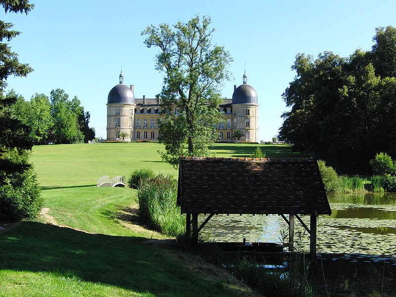 Le château de Digoine se dresse sur un léger mamelon dominant la rive gauche de la Bourbince, sur le territoire de la commune de Palinges (Saône‑et‑Loire). Il fait partie des sites ouverts au public réunis au sein de « La Route des châteaux en Bourgogne du Sud ». Après le mariage de Robert Damas et Marie de Digoine en 1390, une fortification fut édifiée dont subsistent les deux tours de la façade nord. L'ensemble actuel, largement remanié au XVIIIe siècle, doit en partie sa conception à l'architecte Edme Verniquet. Le corps principal, de plan rectangulaire allongé, est flanqué de deux grosses tours circulaires au nord et de courtes ailes en retour d'équerre au sud ; l'avant‑corps central côté parc, précédé de six marches, est souligné par un étage‑attique et des toitures en bulbes surmontées de lanternons. Les ornements de façades associent colonnes et pilastres aux chapiteaux ioniques, composites et corinthiens modifiés, entablements et balcons en fer forgé, ainsi qu'un fronton triangulaire frappé d'armoiries côté sud. À l'intérieur, le grand vestibule en marbre noir et blanc présente des bas‑reliefs de sujets aquatiques, tandis que plusieurs salons conservent des boiseries de style Louis XIV. Des bas‑reliefs de Clodion ornent certains décors et des lambris datent du début du XIXe siècle ; une bibliothèque circulaire d'inspiration néogothique, aménagée vers 1825 avec boiseries en loupe d'orme et cheminée en marbre, est particulièrement remarquable. Le château possède un petit théâtre privé « à l'italienne », décoré par Pierre Luc Charles Ciceri ; aménagé au milieu du XIXe siècle par le comte de Chabrillan, il porte les armes et la devise des Chabrillan peintes sur le manteau d'arlequin et a accueilli Jacques Offenbach en 1851. Ce théâtre, décrit comme intact sans modification ultérieure, présente un plafond circulaire peint et un balcon blanc et or. L'ensemble est complété par une serre du XIXe siècle, un jardin à la française, un parc à l'anglaise de 35 hectares et un étang de cinq hectares ; ces jardins bénéficient du label « Jardin remarquable » depuis 2005. Le domaine est ouvert au public. Après un premier arrêté en 1971, la protection patrimoniale a été renforcée par une inscription au titre des monuments historiques le 1er décembre 1986, concernant notamment le pavillon d'angle nord‑ouest, les façades et toitures des dépendances et le décor de la chapelle, puis par un classement le 5 juillet 1993 portant sur le château lui‑même, le théâtre de la maison du régisseur, la terrasse sud, les deux tours d'angle, le fossé, le pont, la grille d'honneur et son avenue principale, la grille de l'avenue menant au canal, le jardin potager et aux fleurs en contrebas de la terrasse, la serre du XIXe siècle, le parc et l'étang nord. Le château a successivement appartenu aux familles de Digoine, de Damas, de Reclesne, de La Coste‑Messelière et de Moreton de Chabrillan. Selon la tradition et les sources conservées, une maison forte fut d'abord établie sur la motte par la famille de Digoine dès le Xe siècle, le fief échappa à la vassalité du comte de Clermont à la fin du XIIIe siècle, et en 1481 Chrétien de Digoine fut exécuté, sa fille Anne apportant la seigneurie à Jean de Damas. Au début du XVIIIe siècle le domaine passa aux Reclesne, Claude‑Éléonore de Reclesne fit raser l'ancienne forteresse en 1709 pour entreprendre la reconstruction, puis Edme Verniquet remania l'édifice entre 1750 et 1770 ; la construction fut achevée en 1770 par Jacqueline‑Éléonore de Reclesne. À l'époque révolutionnaire, le patrimoine transmit par alliance à Jacques‑Henri‑César de Moreton‑Chabrillan, qui apporta une part des décors intérieurs et des aménagements extérieurs. Philibert le Borgne, baron d'Ideville, disparut sans héritier direct en 1908, et le domaine fut vendu à Pierre de Croix en 1909, qui mena d'importantes restaurations au XXe siècle avec sa femme Denyse du Chastel de La Howarderie. Le château fut ensuite vendu « vide » à Jean‑Louis Remilleux début 2012 ; le nouveau propriétaire a acquis des éléments originaux lors d'une vente aux enchères et a remeublé certaines pièces avec des collections anciennes. En 2022 a eu lieu la première édition du spectacle immersif « 1900 », reconduit en 2023, qui a attiré quelque 14 500 visiteurs.