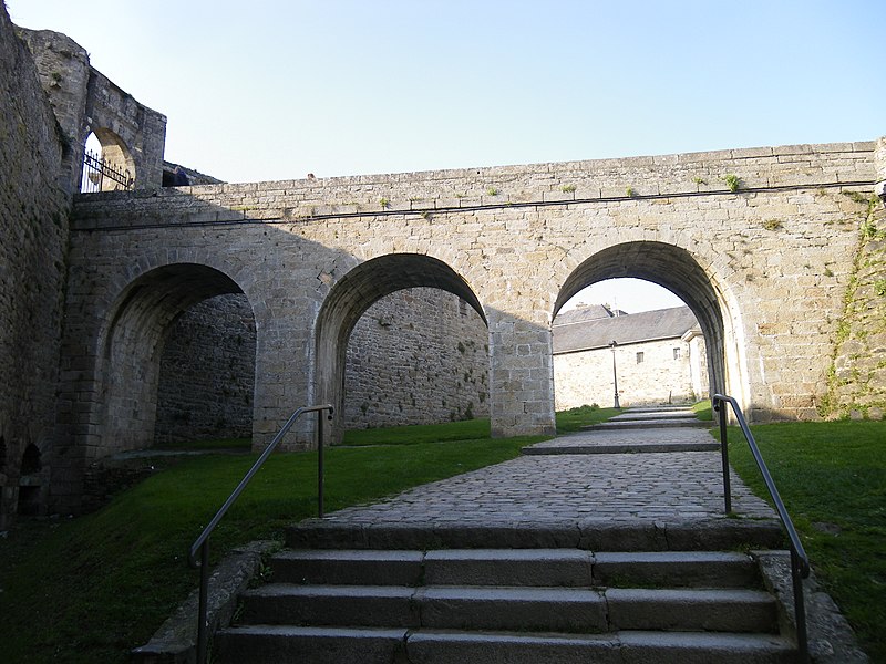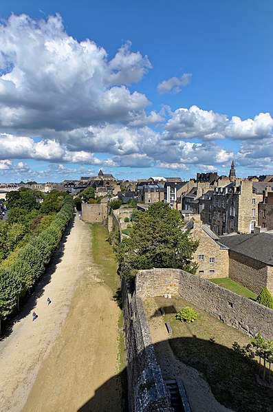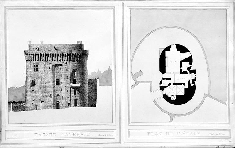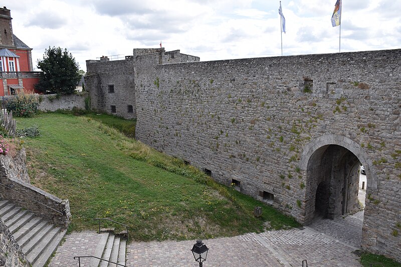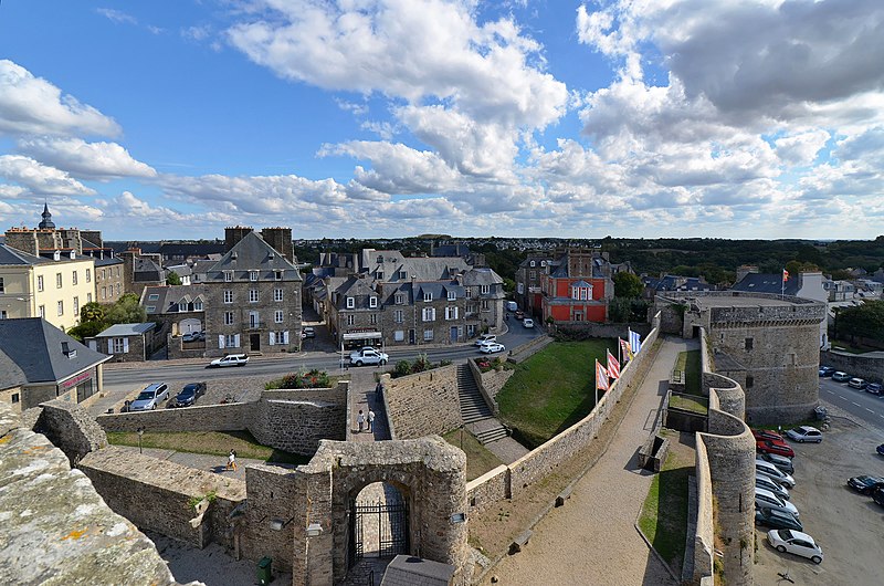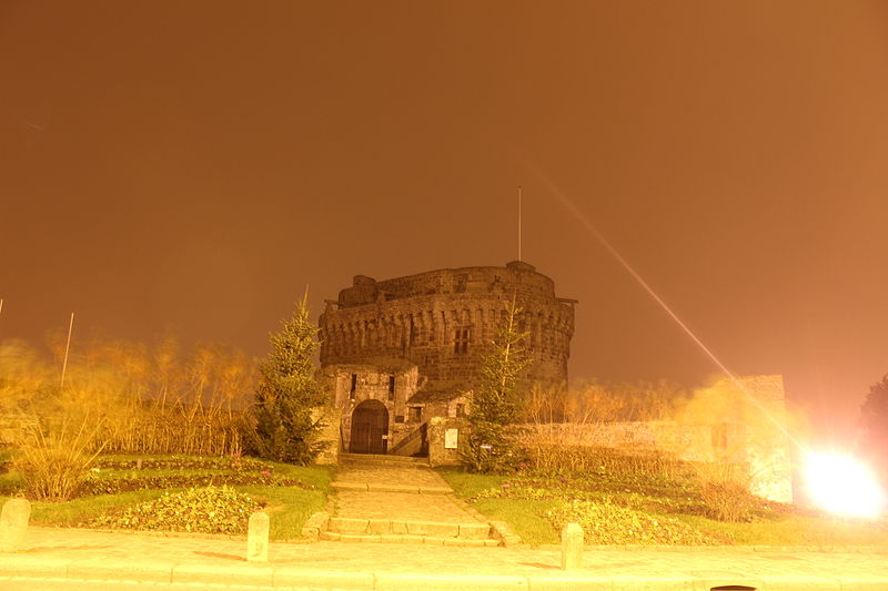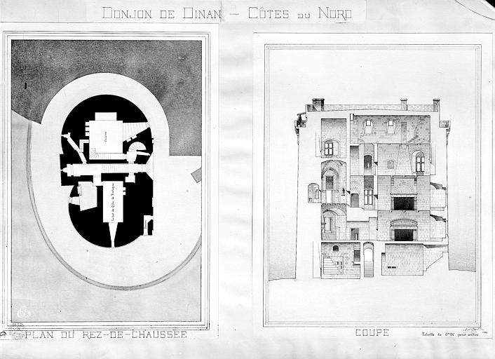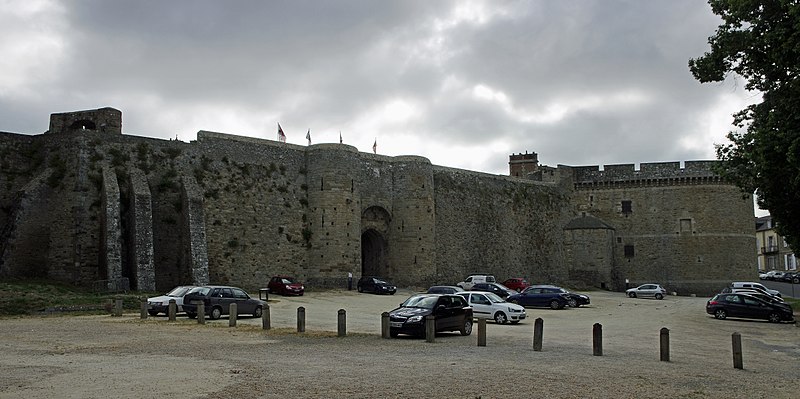 Le château de Dinan est un ancien château fort situé au sud de la ville de Dinan, dans les Côtes‑d'Armor, en Bretagne. Classé au titre des monuments historiques par arrêté du 12 juillet 1886, il a été construit au XIVe siècle sur l'emplacement d'une motte castrale plus ancienne. Cette motte, dite « vieil chastel » ou « Châteauganne », remontait au XIe siècle et se trouvait sur un promontoire au nord‑est de la ville ; elle fut détruite vers 1170 et n'en subsiste aujourd'hui que le toponyme. La tapisserie de Bayeux illustre l'expédition de 1064 et les prises successives de forteresses, dont Dinan, montrant notamment la reddition et des tentatives d'incendie de la palissade sommitale. Après la guerre de succession de Bretagne, Jean IV fit édifier à Dinan une tour maîtresse vers 1380, chantier conduit par le maître d'œuvre Étienne le Tur et achevé à la fin du siècle. La tour, formée de deux tours rondes accolées et d'un avant‑corps carré à l'ouest, culmine à plus de trente mètres et se distingue par un couronnement à mâchicoulis à quatre ressauts ; elle était à l'origine couverte d'ardoises. À la fin du XVe siècle fut élevée la tour Coëtquen, tour d'artillerie liée aux travaux de modernisation de l'enceinte, puis l'ensemble fut transformé au XVIe siècle par le duc de Mercœur. Sous son impulsion, la tour maîtresse fut reliée à la tour Coëtquen par une gaine dite « souterrain Mercœur », la porte du Guichet fut murée et une cour‑haute protégée par des structures en éperon fut aménagée, les embrasures étant alors orientées vers la ville. Délaissé au XVIIe siècle, le monument fit l'objet de rapports en 1693 et 1701 de l'ingénieur Siméon Garangeau, qui préconisa sa transformation en résidence puis en prison militaire. Pendant le XVIIIe siècle, des marins anglais y furent détenus en grand nombre ; la toiture fut remplacée par une terrasse et le chevet de la chapelle percé pour ouvrir une nouvelle entrée. Devenu prison de droit commun au XIXe siècle, il fut racheté par la ville au début du XXe siècle et accueillit un musée municipal à partir de 1908 ; les collections ont été retirées progressivement en 2015 pour être conservées en réserves. En 2014, la municipalité a lancé un vaste programme de restauration et de mise en valeur fondé sur d'importantes recherches historiques. L'ensemble est composite : la tour ducale du XIVe siècle, la porte du Guichet — ancien accès méridional de la ville — et la tour Coëtquen s'inscrivent dans l'enceinte urbaine du XIIIe siècle édifiée par les ducs de Bretagne. La tour‑palais de Dinan, par la complexité de son plan et la qualité de ses décors, figure parmi les grandes demeures princières de la fin du XIVe siècle et, à l'échelle de la Bretagne, témoigne du raffinement de la cour des Montfort aux côtés de monuments comme Nantes ou Suscinio. À l'origine elle comportait un sixième niveau et une toiture à double sommet d'ardoises, mentionnée en 1636. La distribution intérieure, sur cinq niveaux, reflète sa vocation résidentielle : cuisine, salle de banquet, chambre de parement avec chapelle, chambre de retrait et appartements privés. Ouvert au public tous les jours d'avril au 30 septembre, puis du mardi au dimanche d'octobre à décembre, le site a connu une fréquentation en hausse depuis 2013. Avec plus de 55 000 visiteurs en 2019, il est le monument le plus visité de la ville et le second château des Côtes‑d'Armor en nombre de visiteurs après le Fort‑la‑Latte. Les aménagements inaugurés le 9 juin 2019 ont rouvert au public le souterrain Mercœur, restitué l'emprise de la cour d'honneur et introduit une nouvelle scénographie axée sur l'art de la guerre au XVe siècle et la vie quotidienne dans les résidences princières, faisant largement appel à l'archéologie expérimentale. De juin à septembre, plusieurs visites thématiques sont proposées quotidiennement. Parmi les éléments exposés figurent notamment un vaisselier domestique des XIVe‑XVe siècles et des latrines ; le château a également servi de décor au film Du Guesclin (1948).