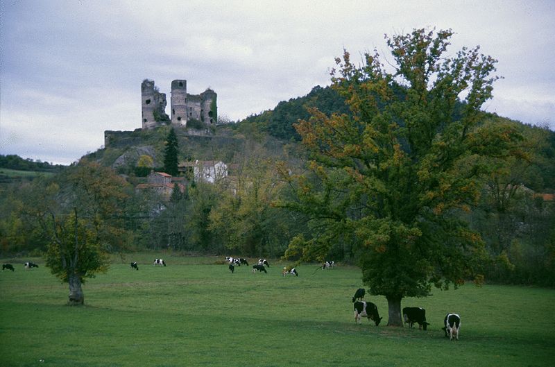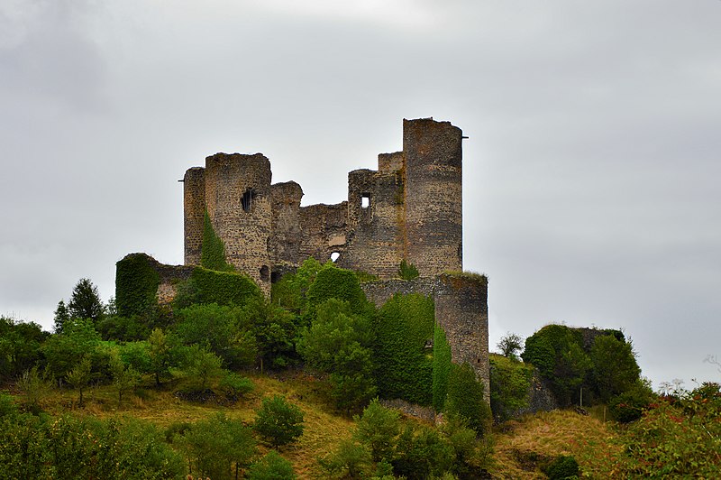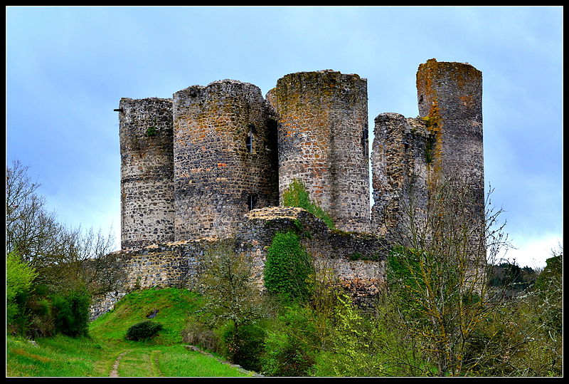 Les fondateurs appartiennent à la famille des Papabeuf : la première mention connue, celle d'Étienne de Papabeuf, figure en 1114 dans un manuscrit de Sauxillanges au sujet d'un don de terres, et l'existence du château apparaît dans le recensement des vassaux d'Alphonse de Poitiers dressé entre 1250 et 1260, lorsque Astorgius et son fils Bertrand de Papabeuf rendent hommage pour le château d'Almayrac (Domeyrat). La famille resta propriétaire jusqu'en 1348, date à laquelle elle semble s'éteindre, peut‑être sous l'effet de la peste noire. Une période de succession voit alors se succéder divers seigneurs et habitants : Pierre de Montaigut est cité en 1368, puis Catherine de Châteauneuf en 1375 qui cède alors une moitié de ses terres à Adhémar Jory, une vente qui ne mentionne que des terres et suggère la possible dégradation ou l'abandon du château pendant les troubles de la guerre de Cent Ans. Domeyrat revient ensuite à la famille de Langheac ; Pons de Langheac est reconnu seigneur en 1387, son fils Jean lui succède comme sénéchal d'Auvergne et hérite de la seigneurie au début du XVe siècle. Jean épouse Marguerite Gouges, nièce de Martin Gouges, évêque de Clermont, et sous l'influence de celui‑ci l'édifice bénéficie d'un remaniement important entre 1431 et 1435, fait qui lui vaut d'être parfois qualifié de « second bâtisseur » du château.